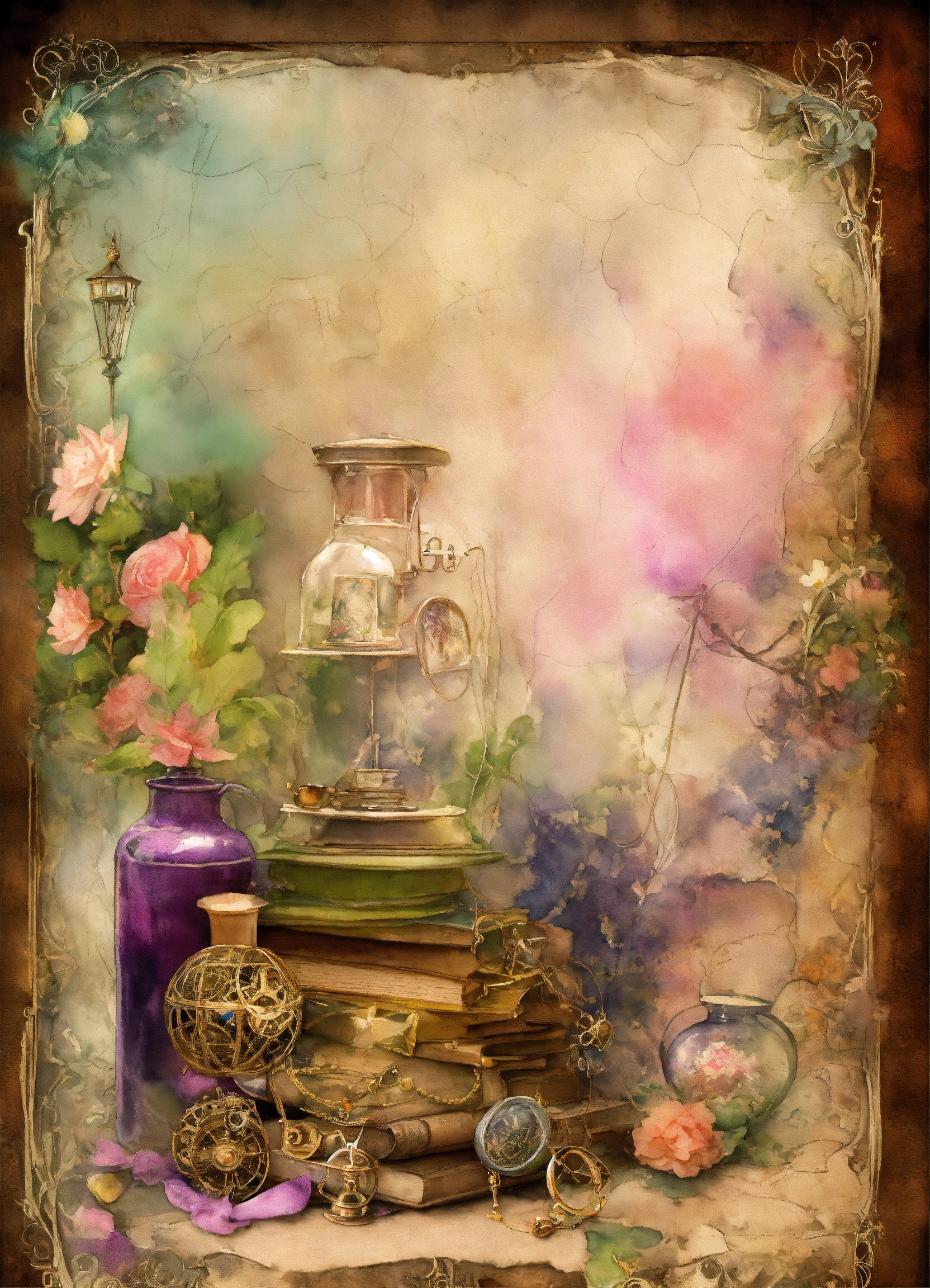 Shabby chic dreamy mist pastel junk journals create detailed watercolor illustrations of goth steampunk alchemy the mystical and pseudoscientific study of transformation, often referenced in gothic themes., each as separate png images suitable for cutting out and using in various paper crafts such as card making, scrapbooking, junk journaling, and more. the digital clipart should capture the essence of gothic fantasy and steampunk aesthetics, offering a versatile resource for creative projects. each alchemy the mystical and pseudoscientific study of transformation, often referenced in gothic themes. should be uniquely designed and easily adaptable to a range of crafting styles. swirling magical fairytale abstract art style