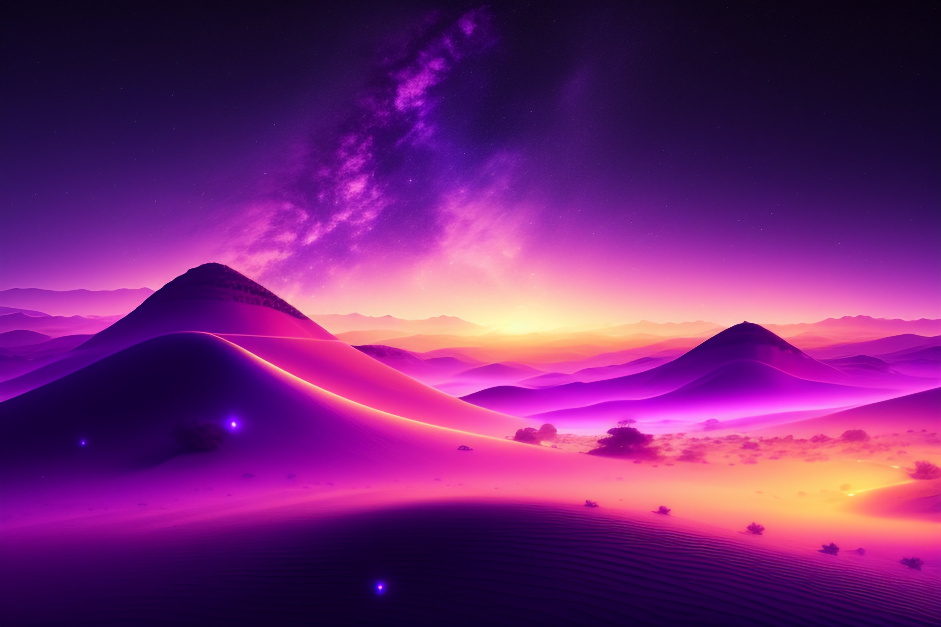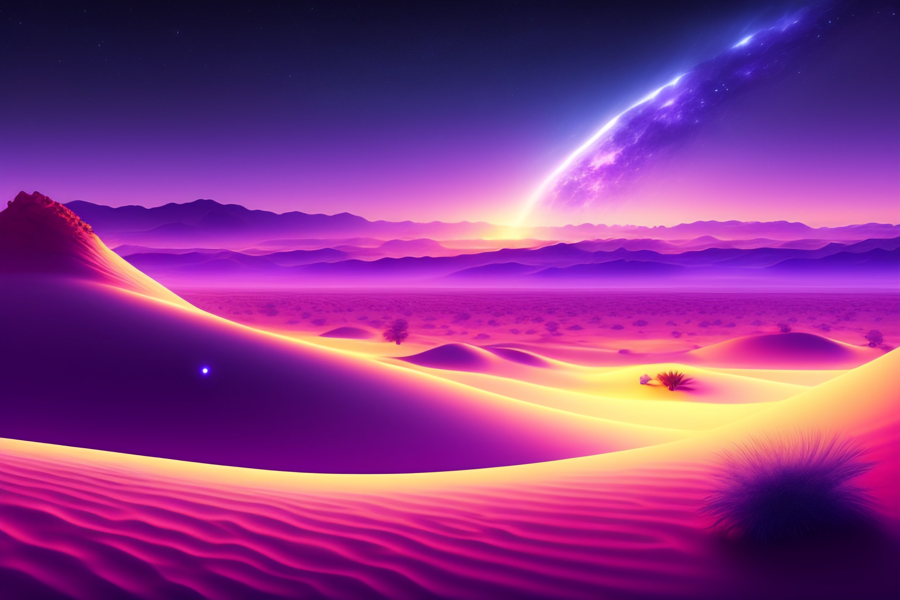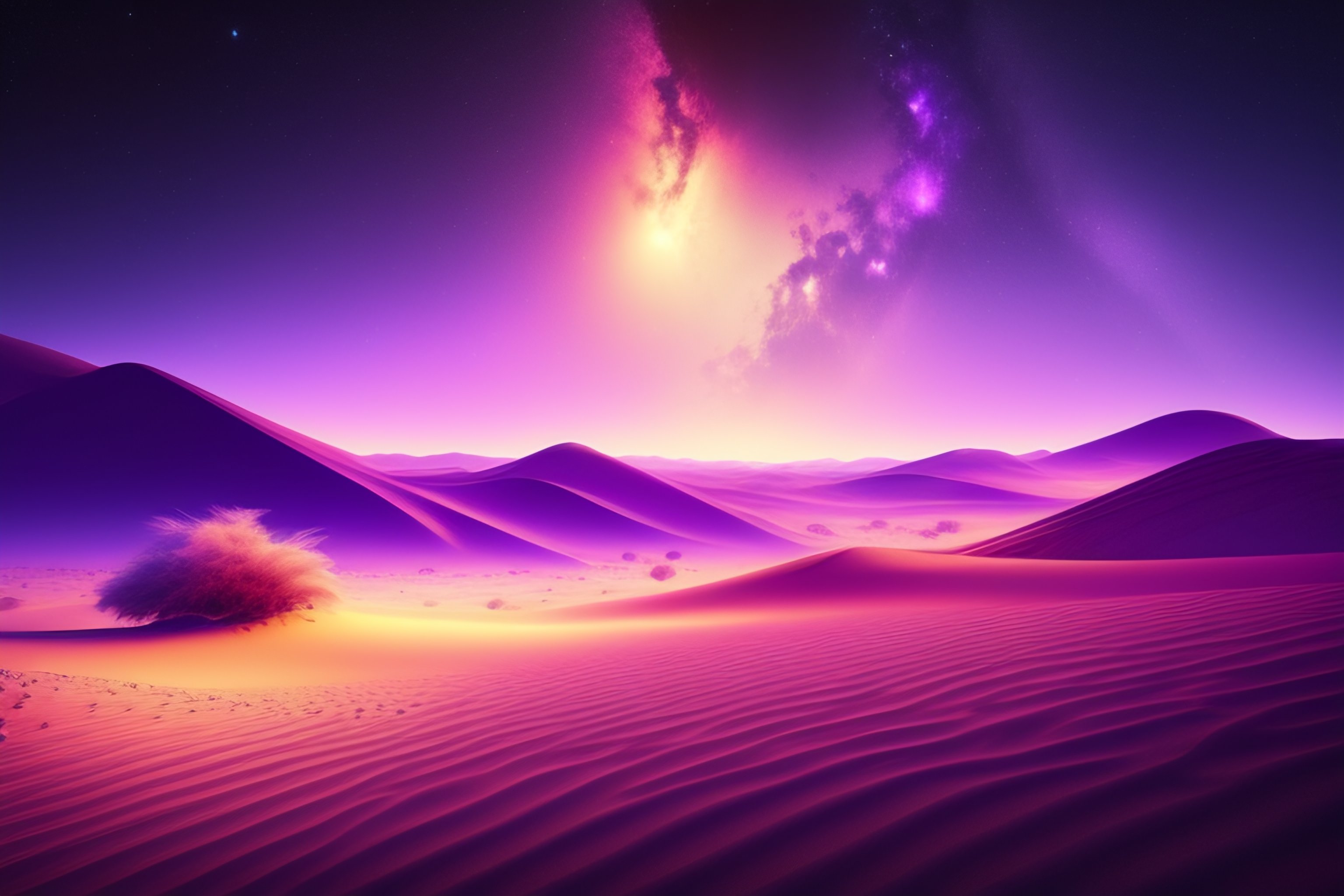 Beutiful purple stary night, concept art, 4 k, light dust, desert, sand, illustration, with clear sky