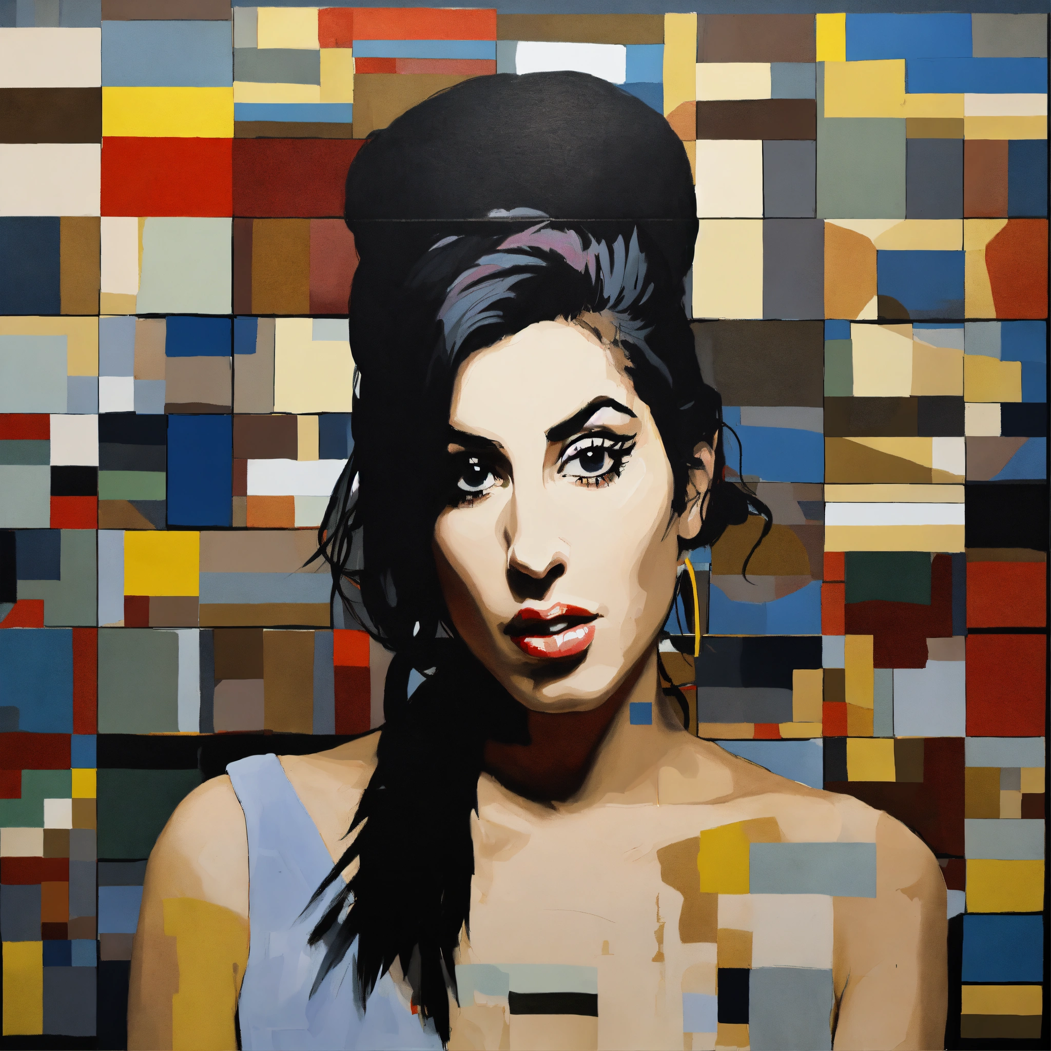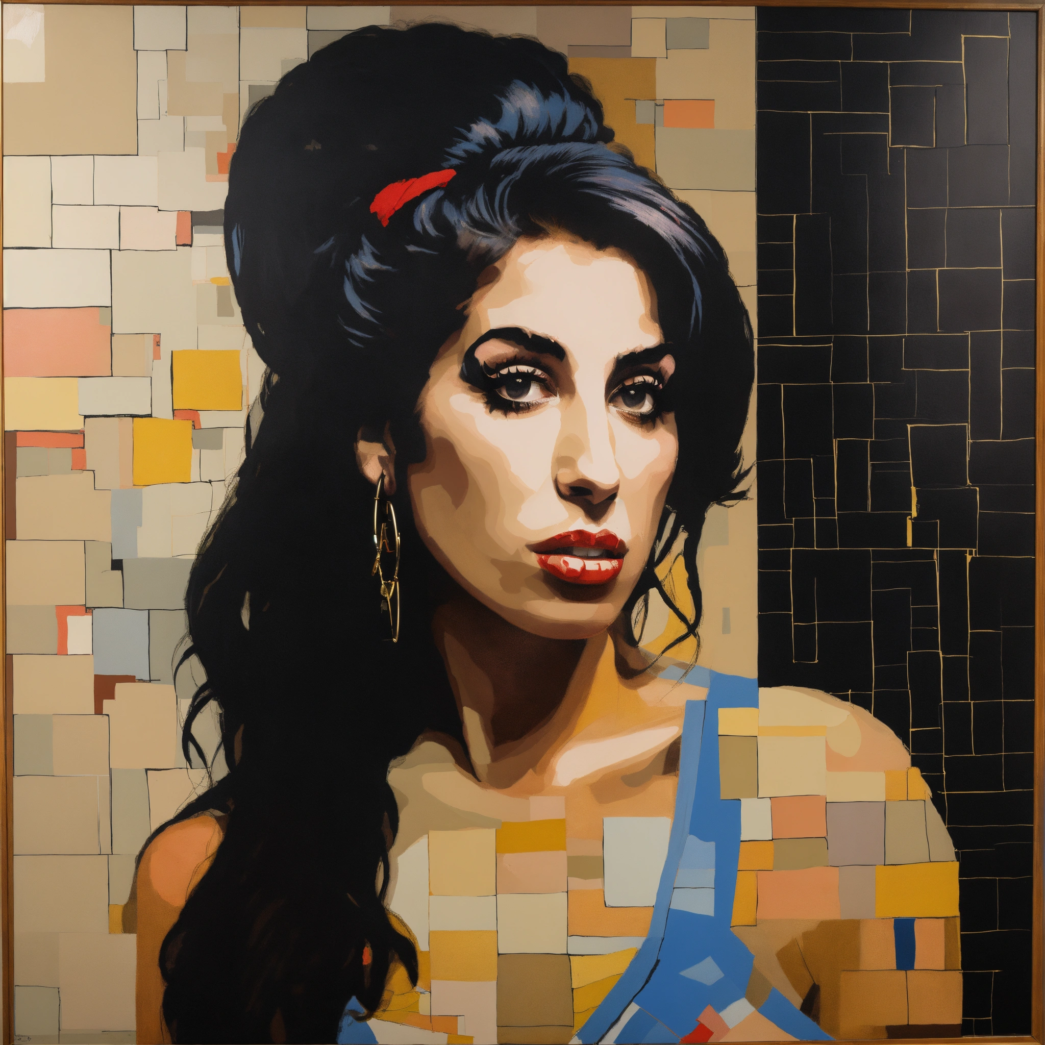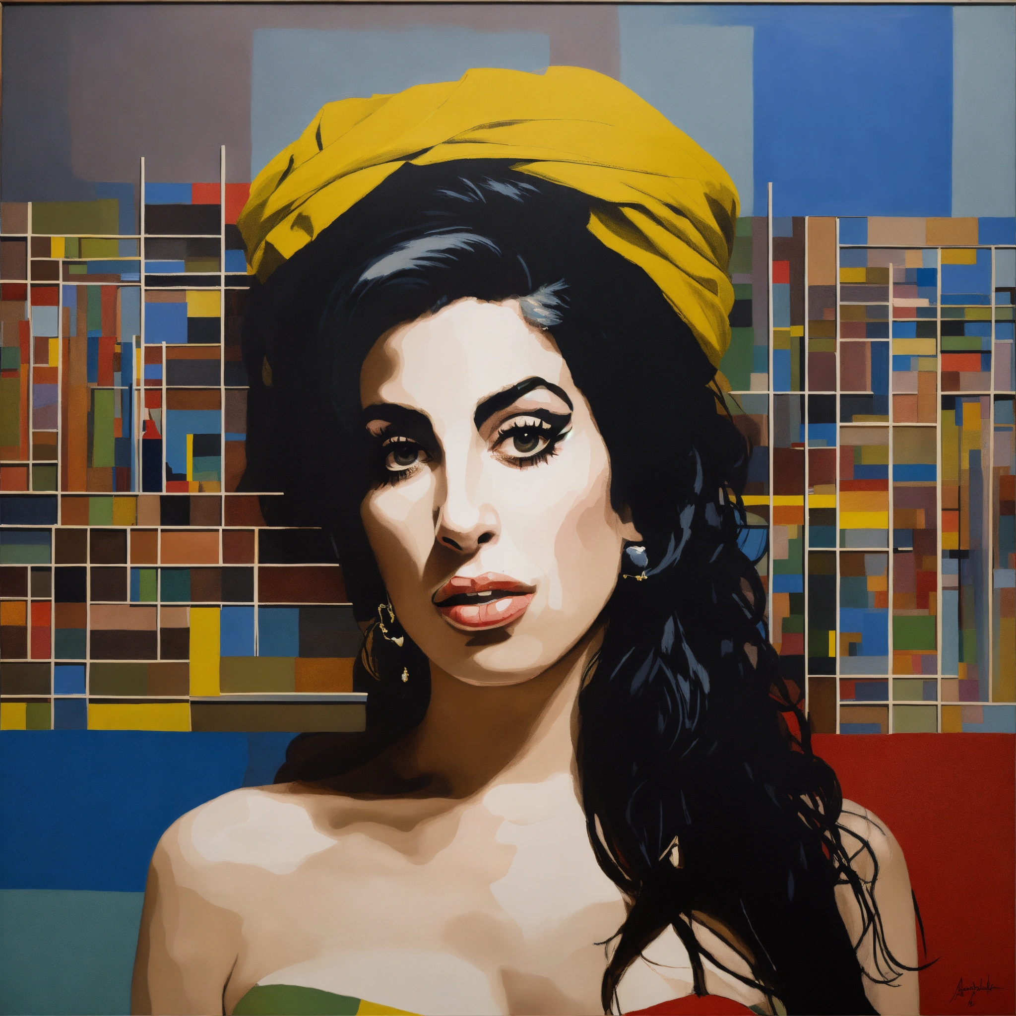 Conceptual painting of amy winehouse in the style of joseph kosuth