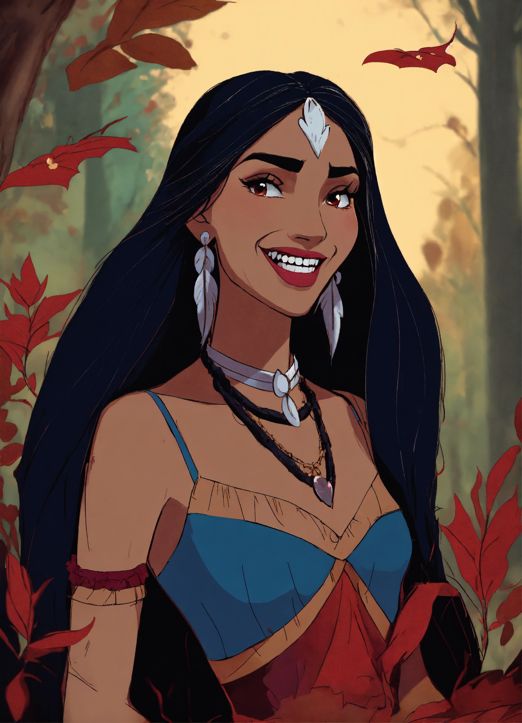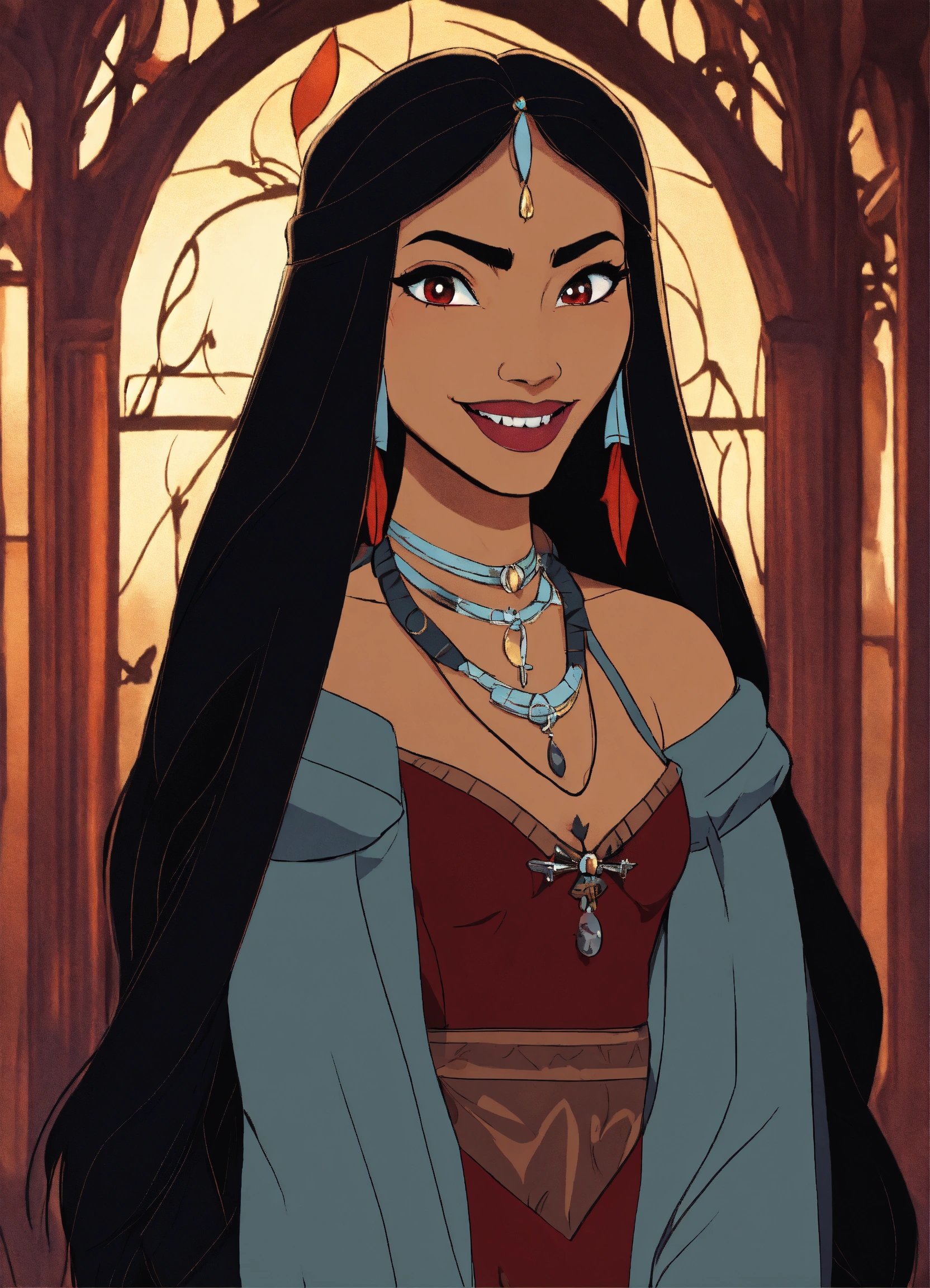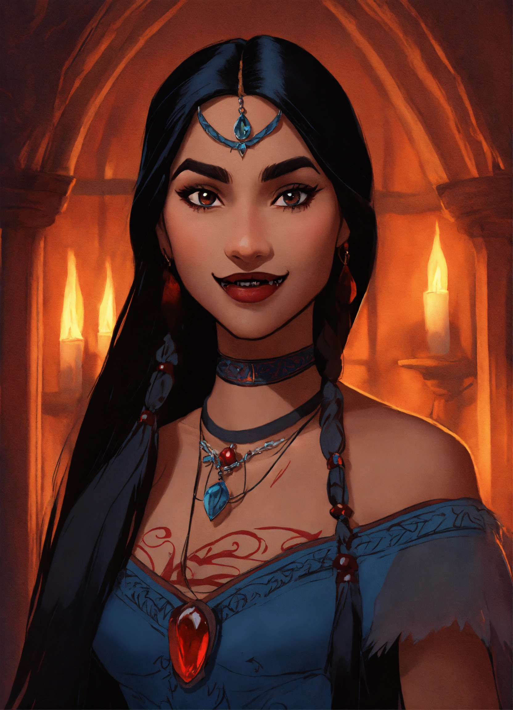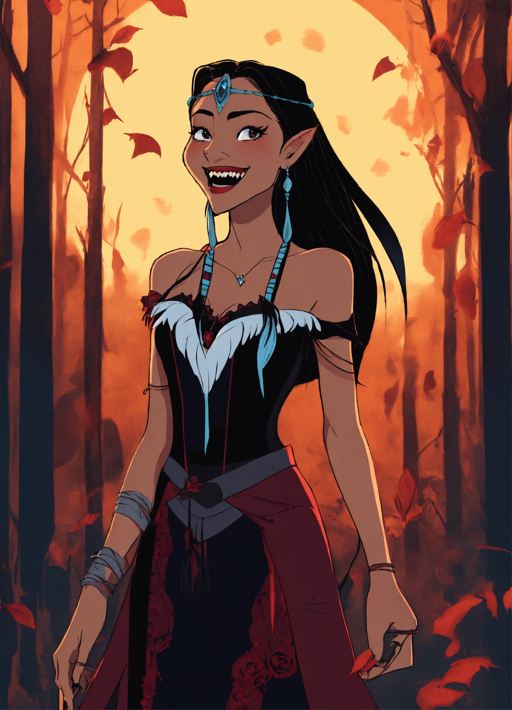 Disney pocahontas as a gothic vampire with teeth fangs showing