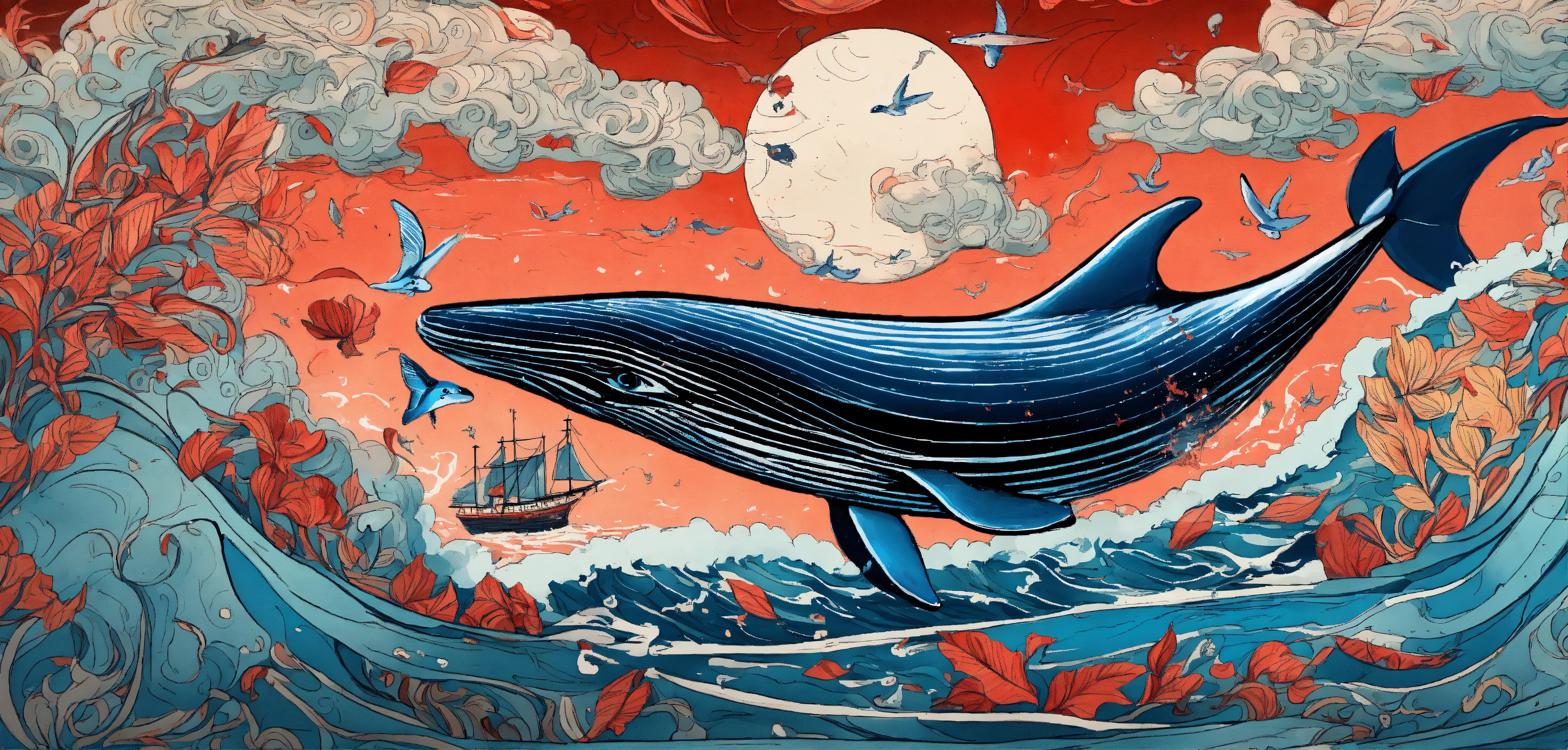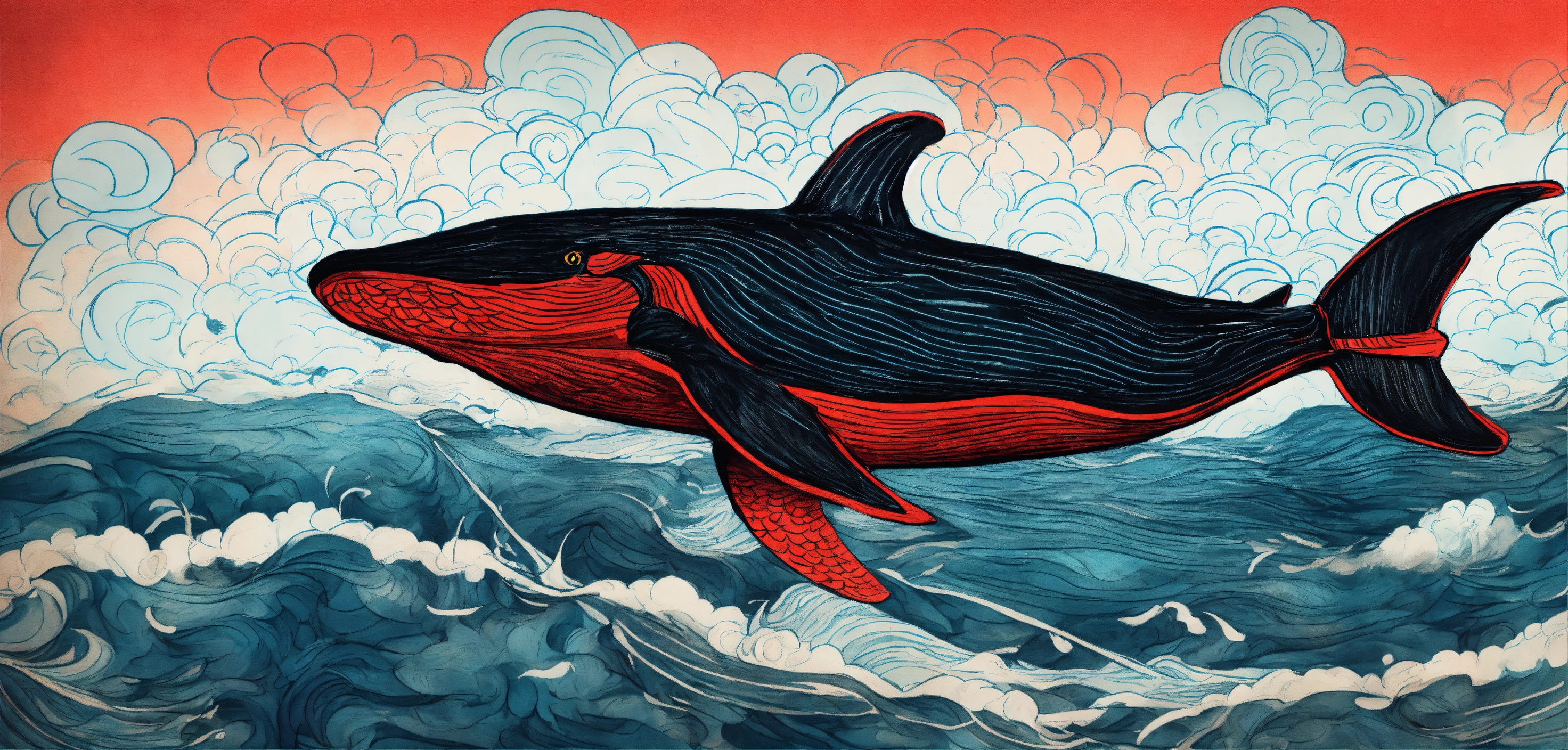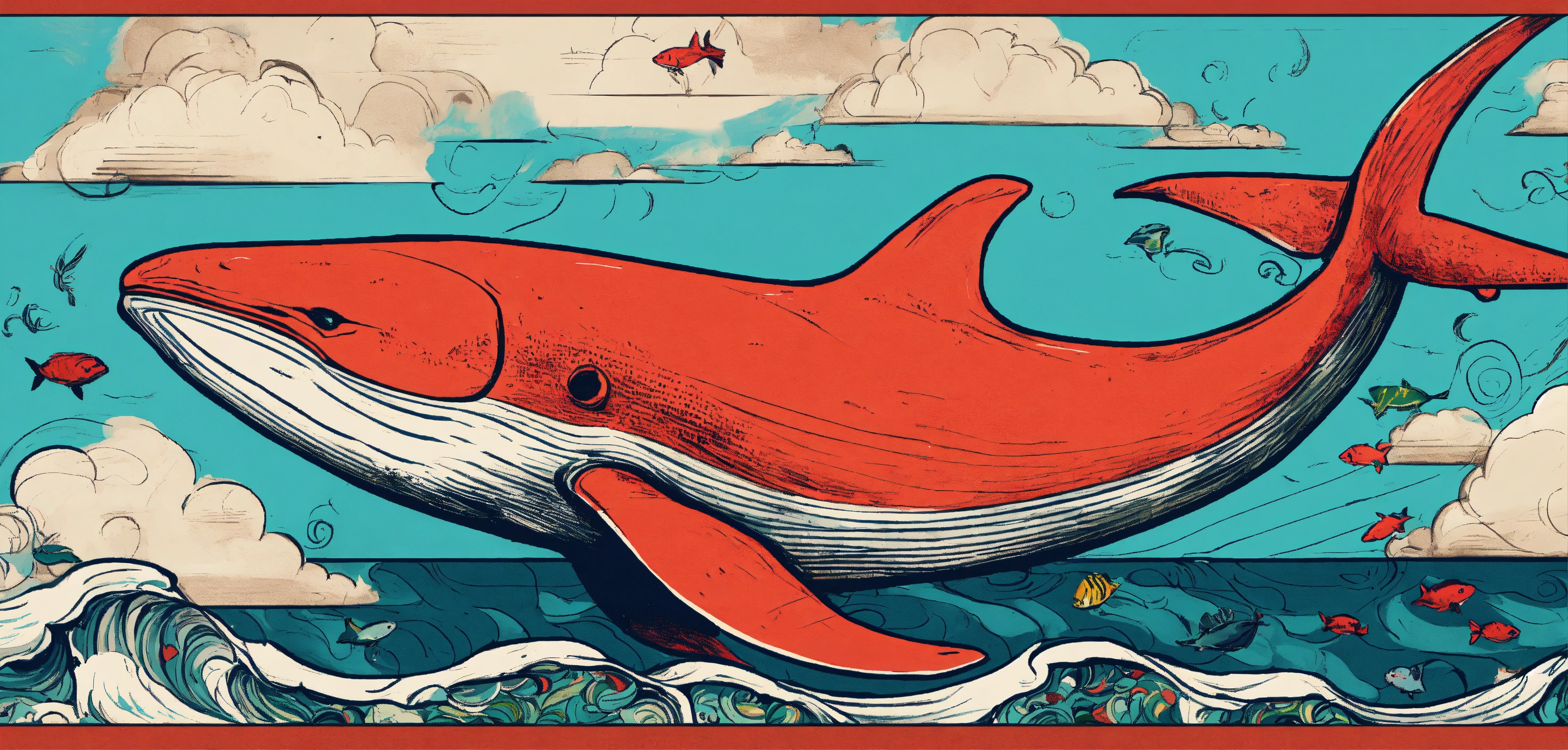 High details, bits of color, bet casino chips, hand drawn, red, gritty, realistic sketch, rough sketch, mix of bold dark lines and loose lines, bold lines, on paper, waves and clouds, whale, flying fishes with bird wings, leafs