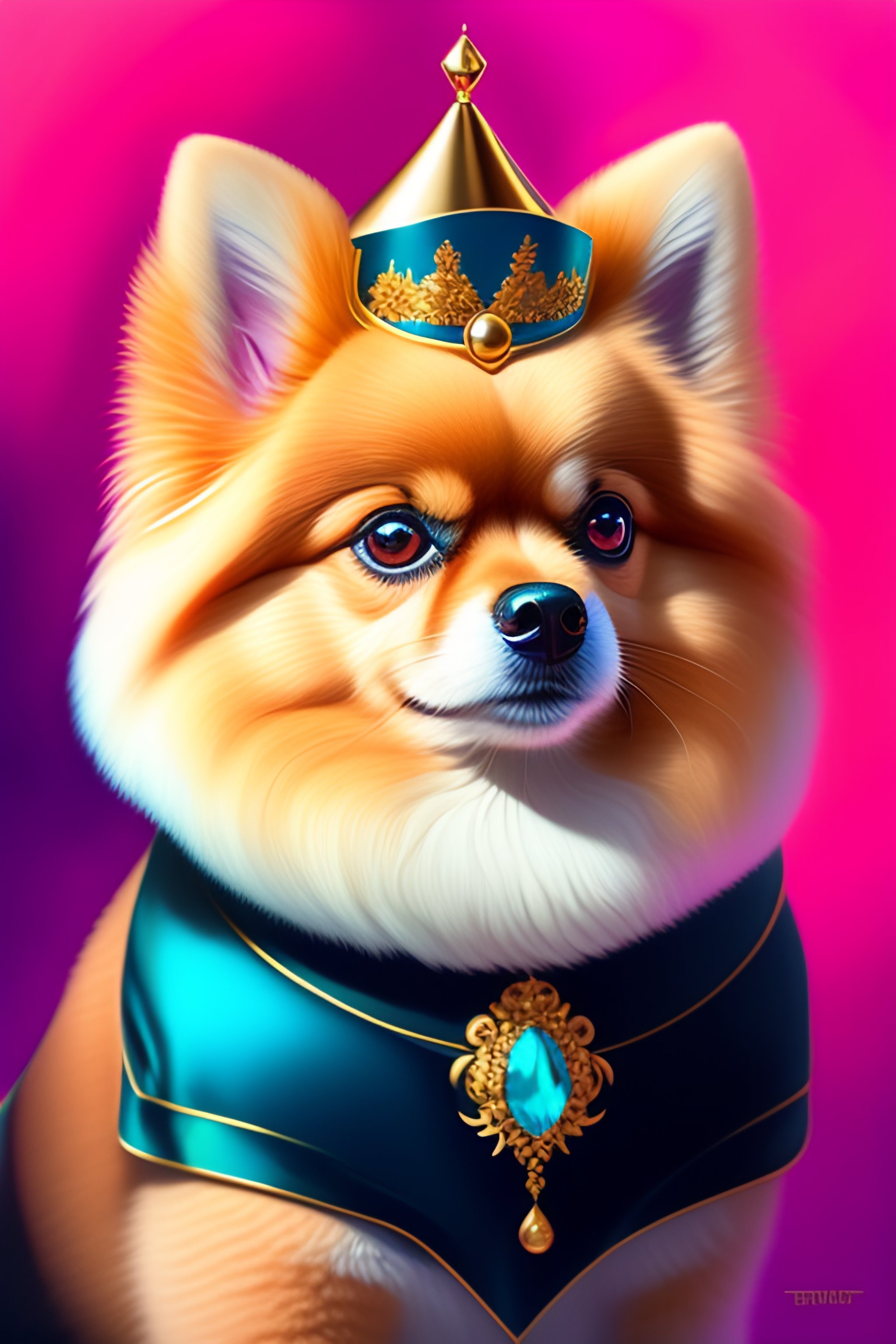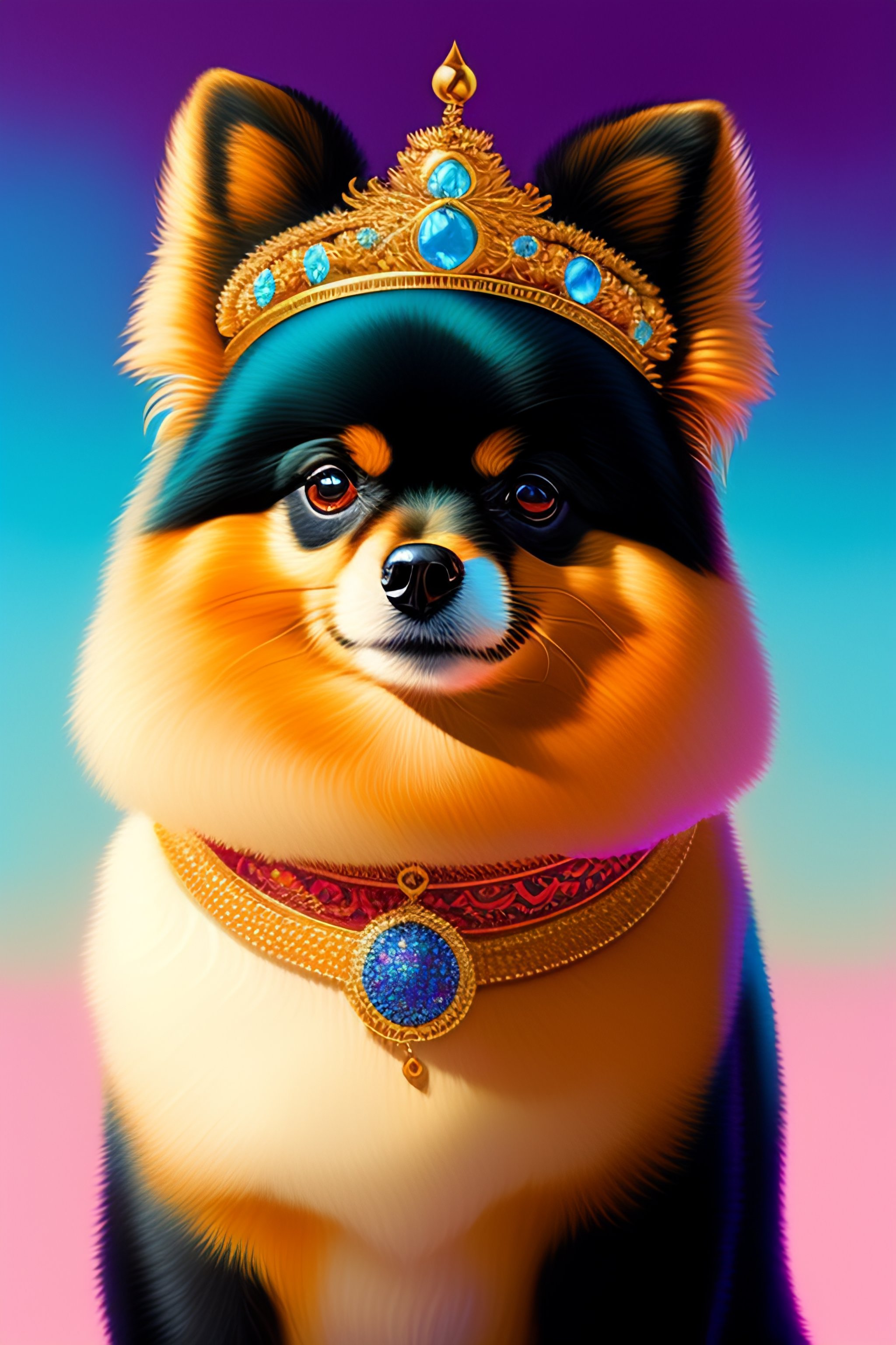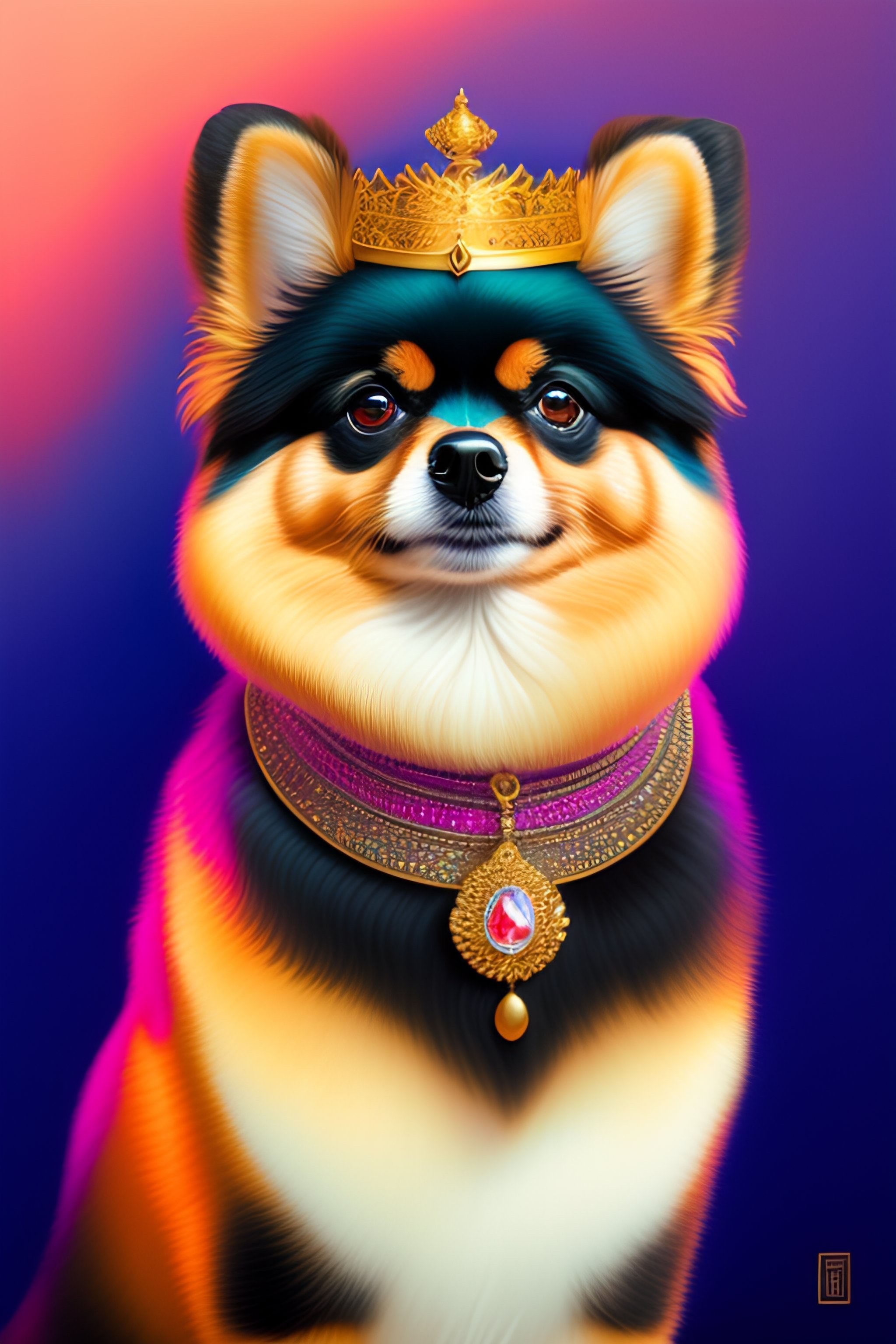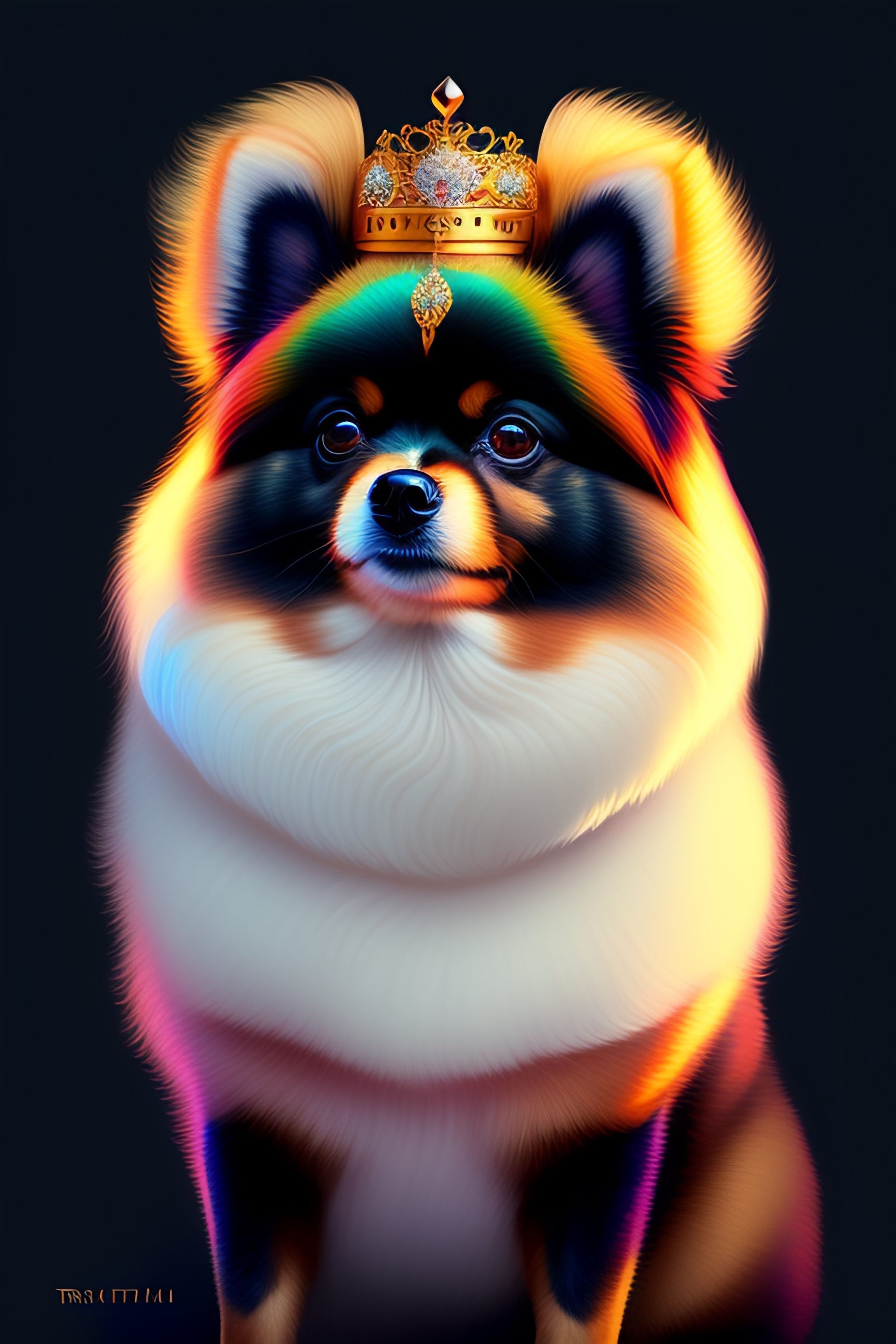A beautiful regal pomeranian wearing a crown by tristan eaton