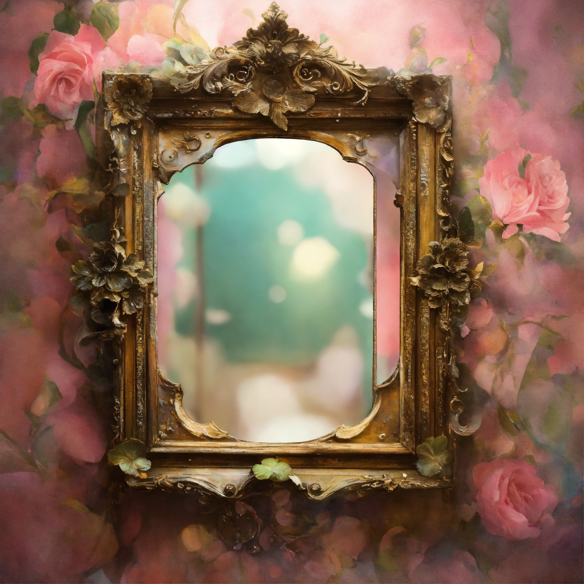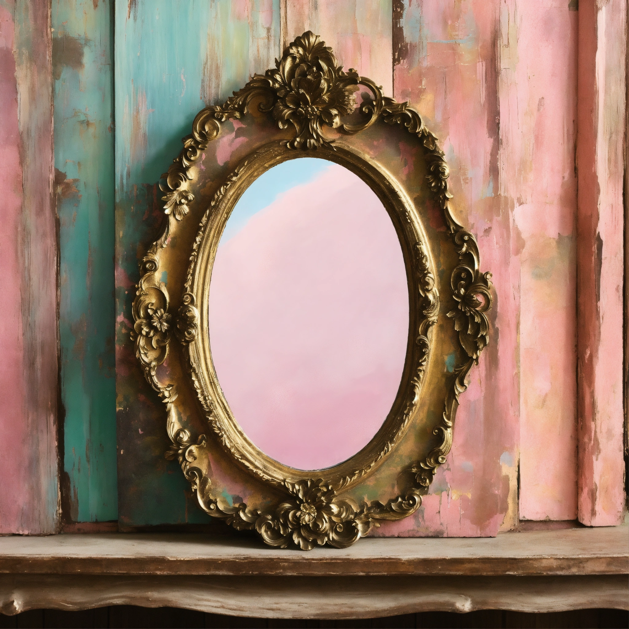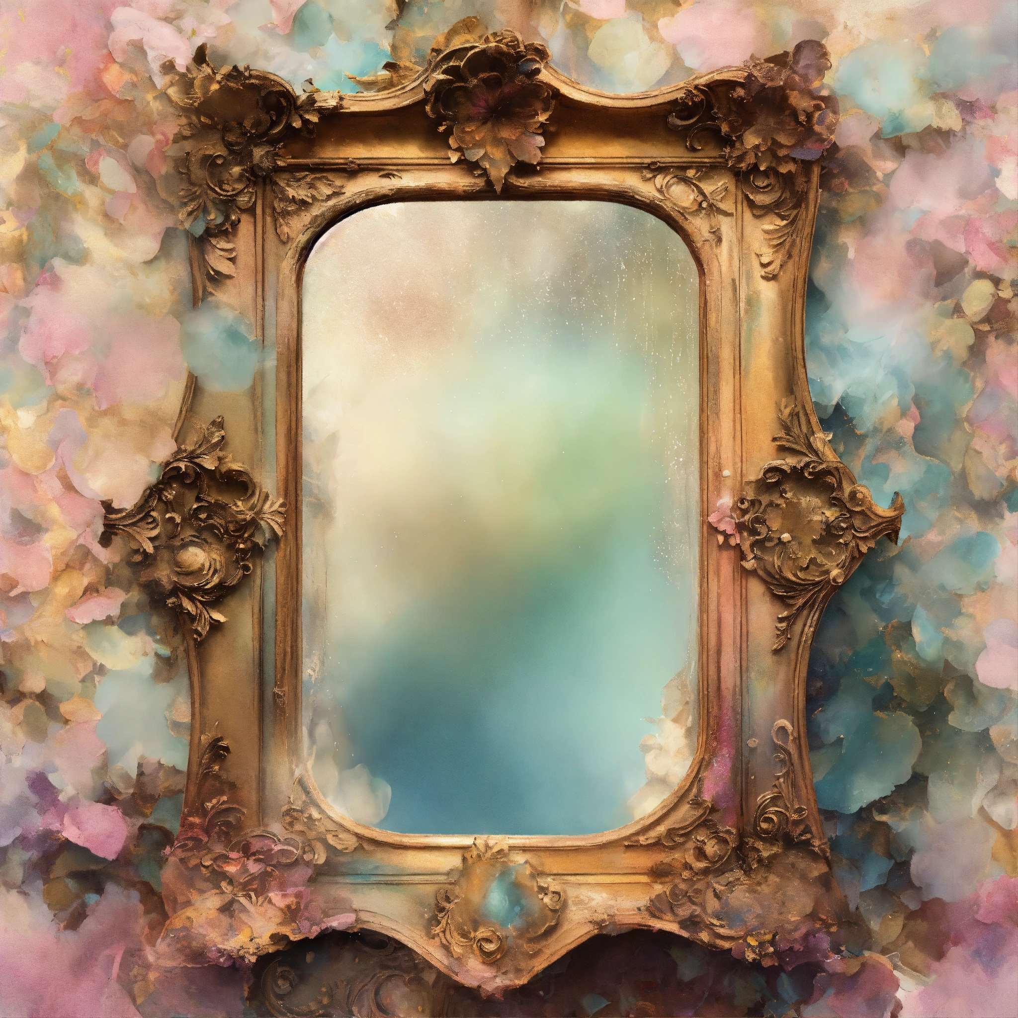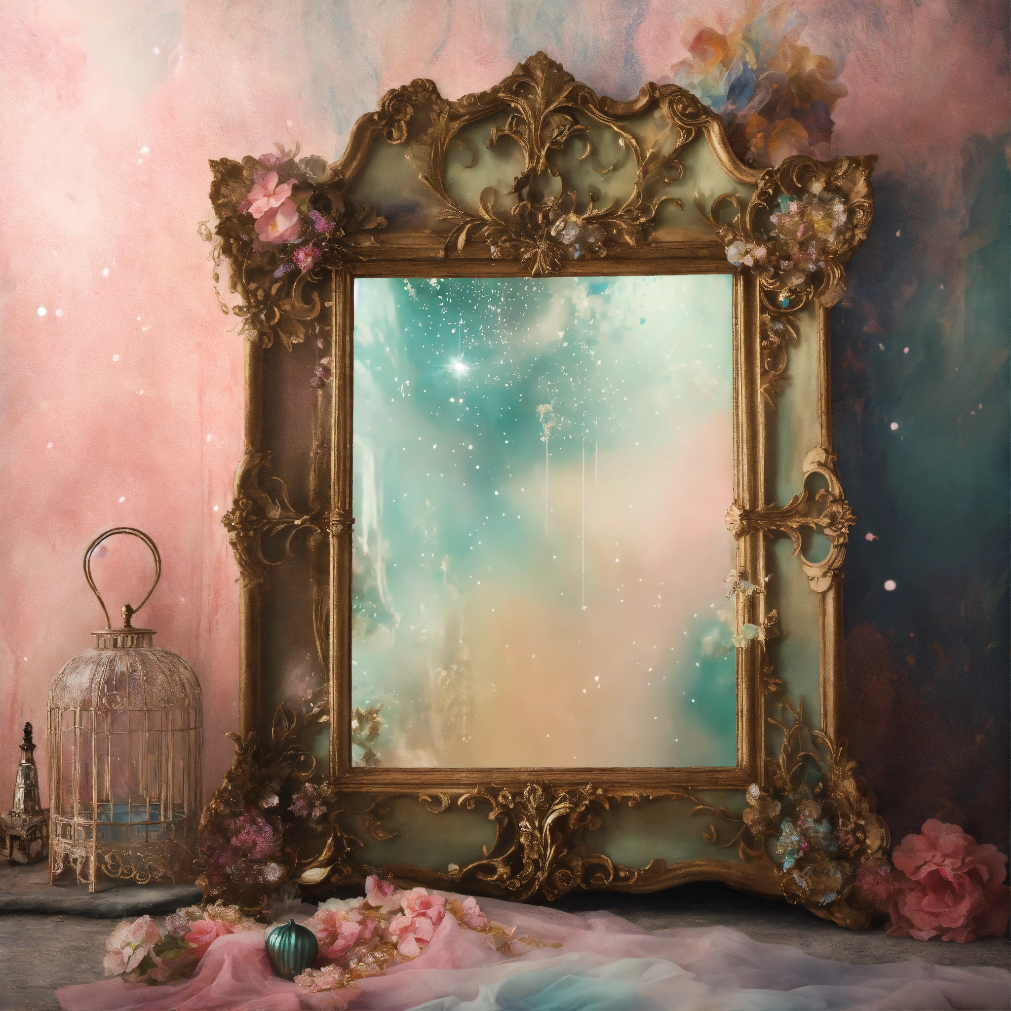 Shabby chic dreamy mist pastel junk journals mirror mirror on the wall show me your magic world in there swirling magical fairytale abstract art style