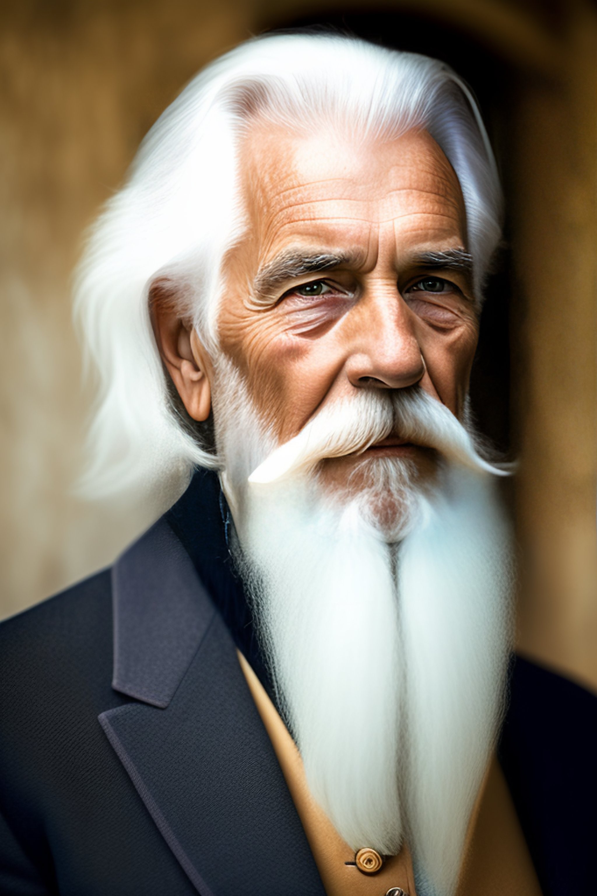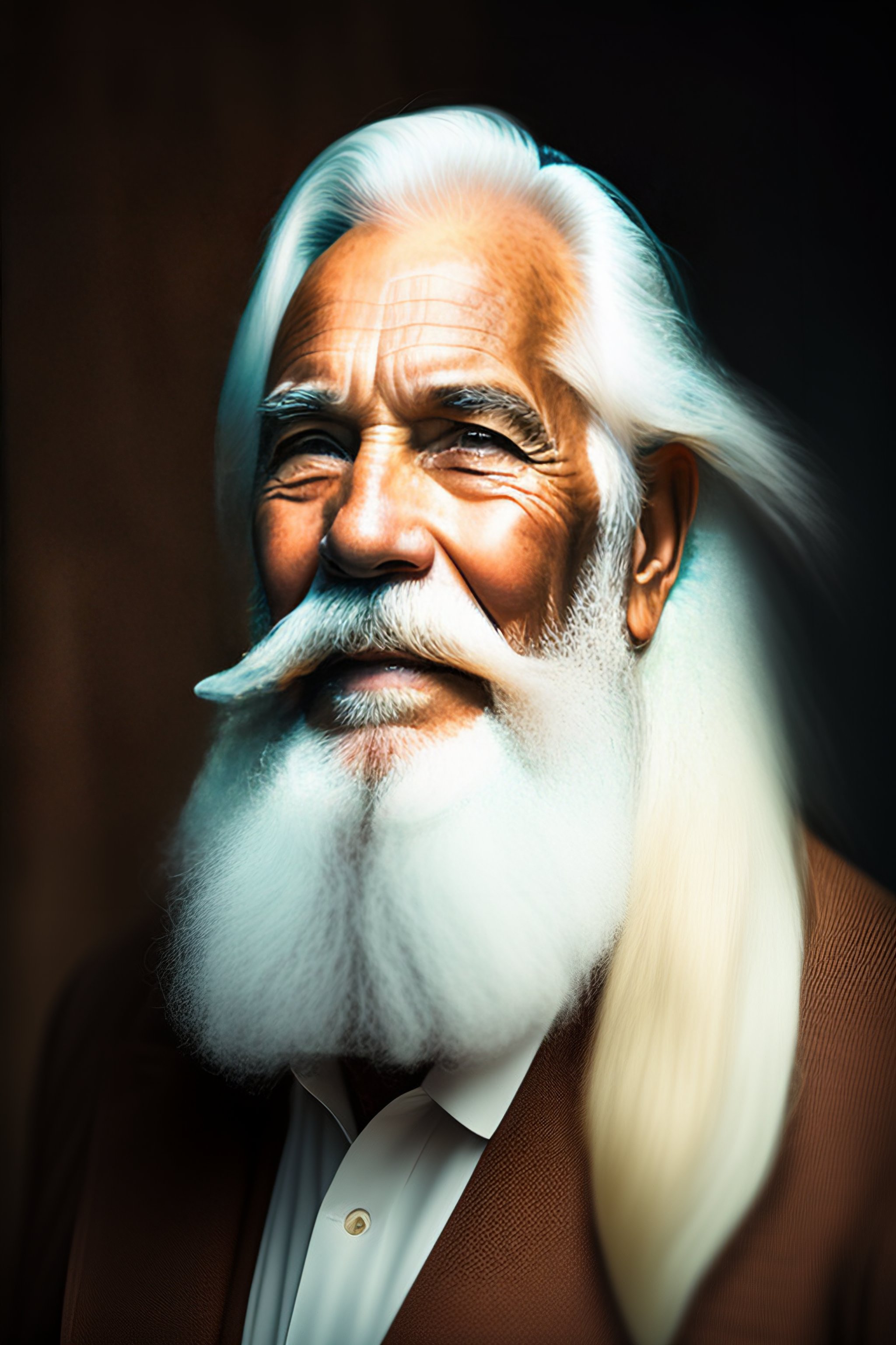 An old man with a long white beard and long white hair