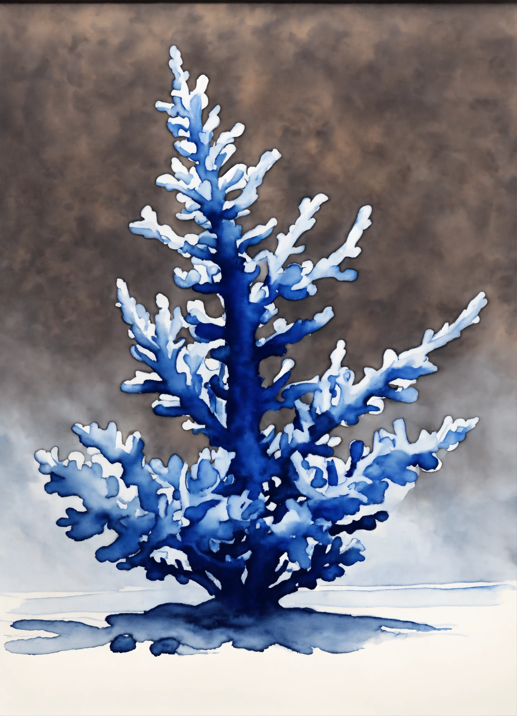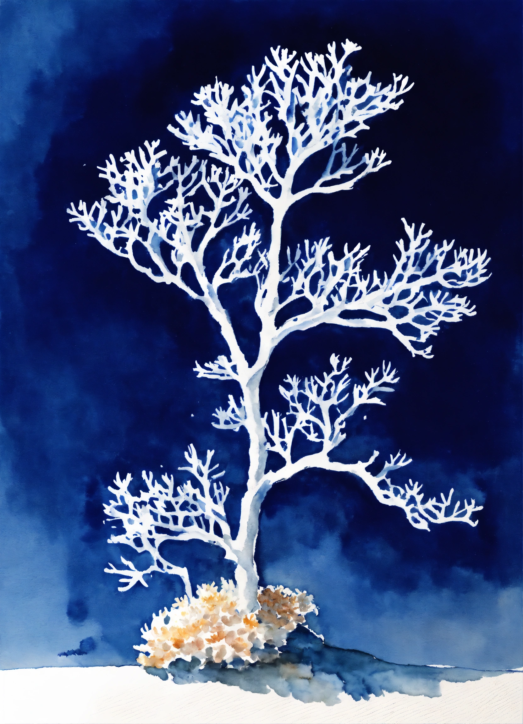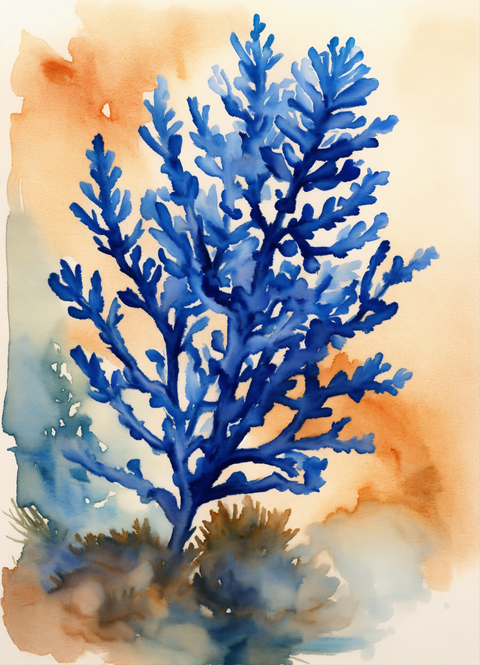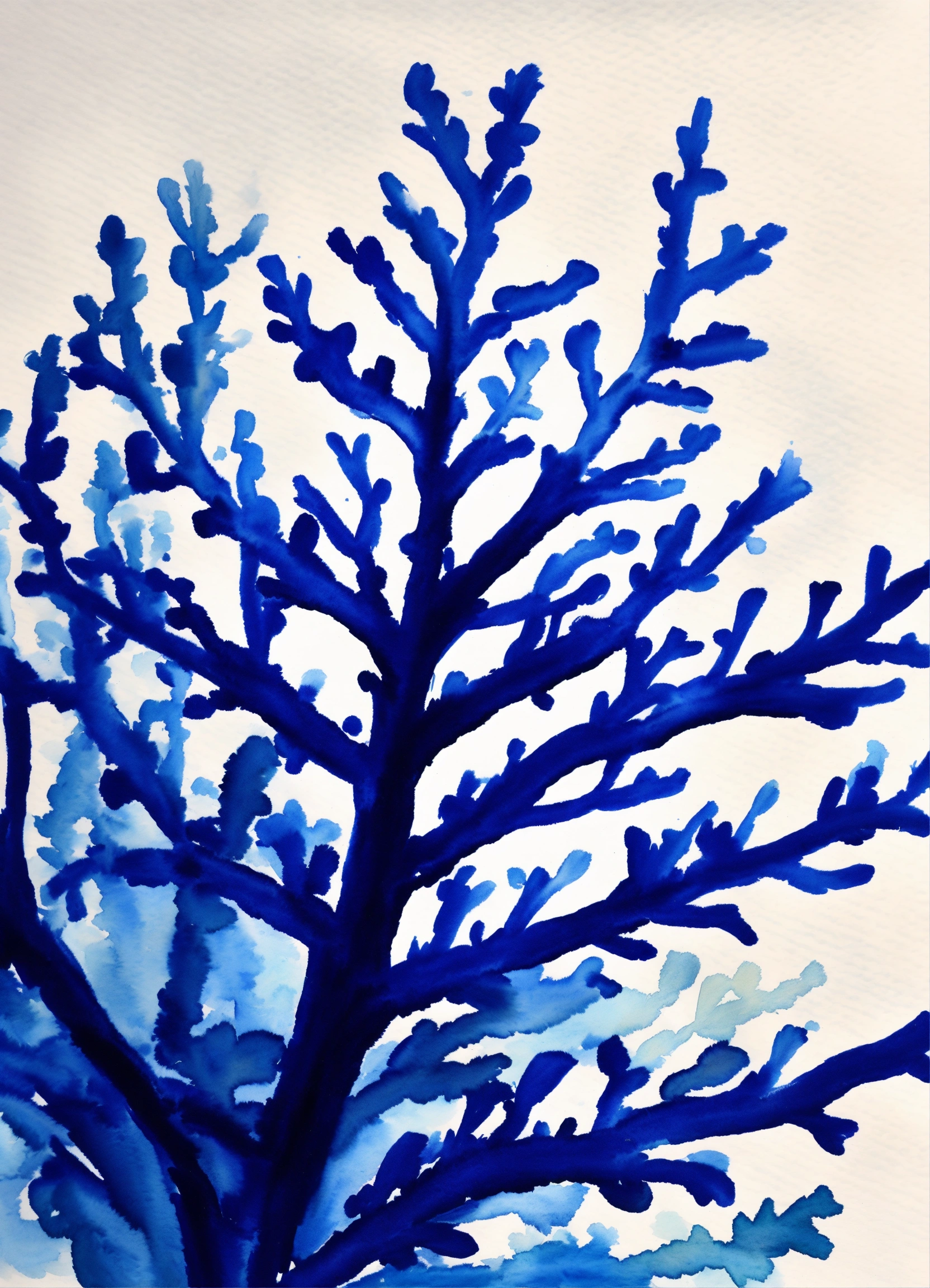 Simple sketch aquarelle of a lonely beautiful acropora bleu foncé