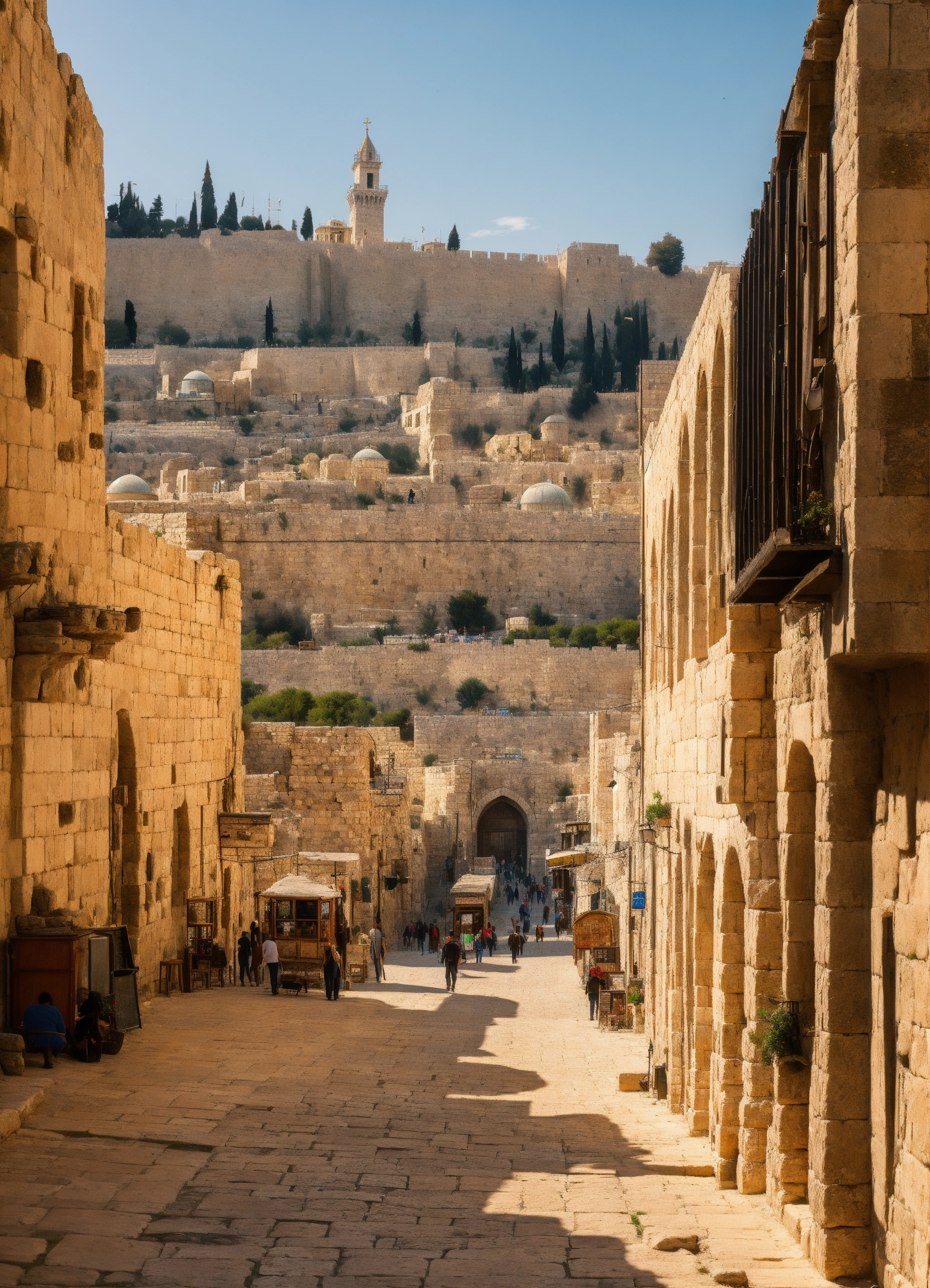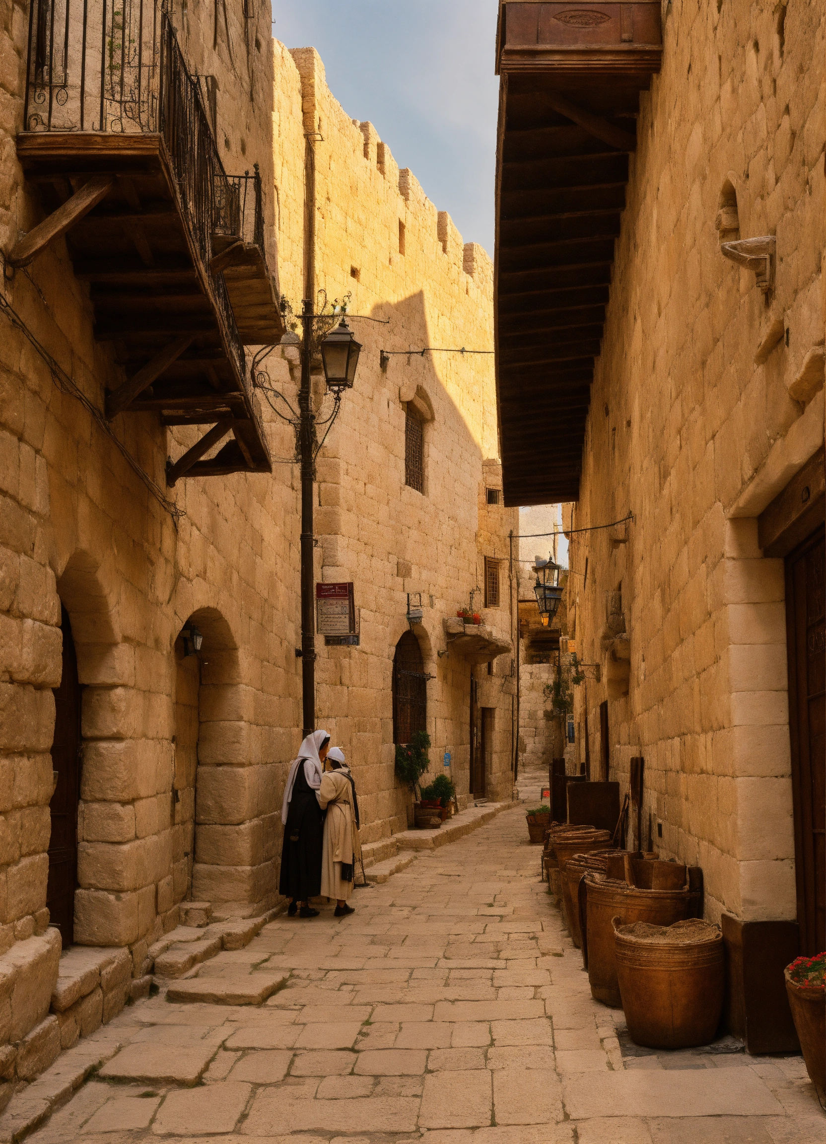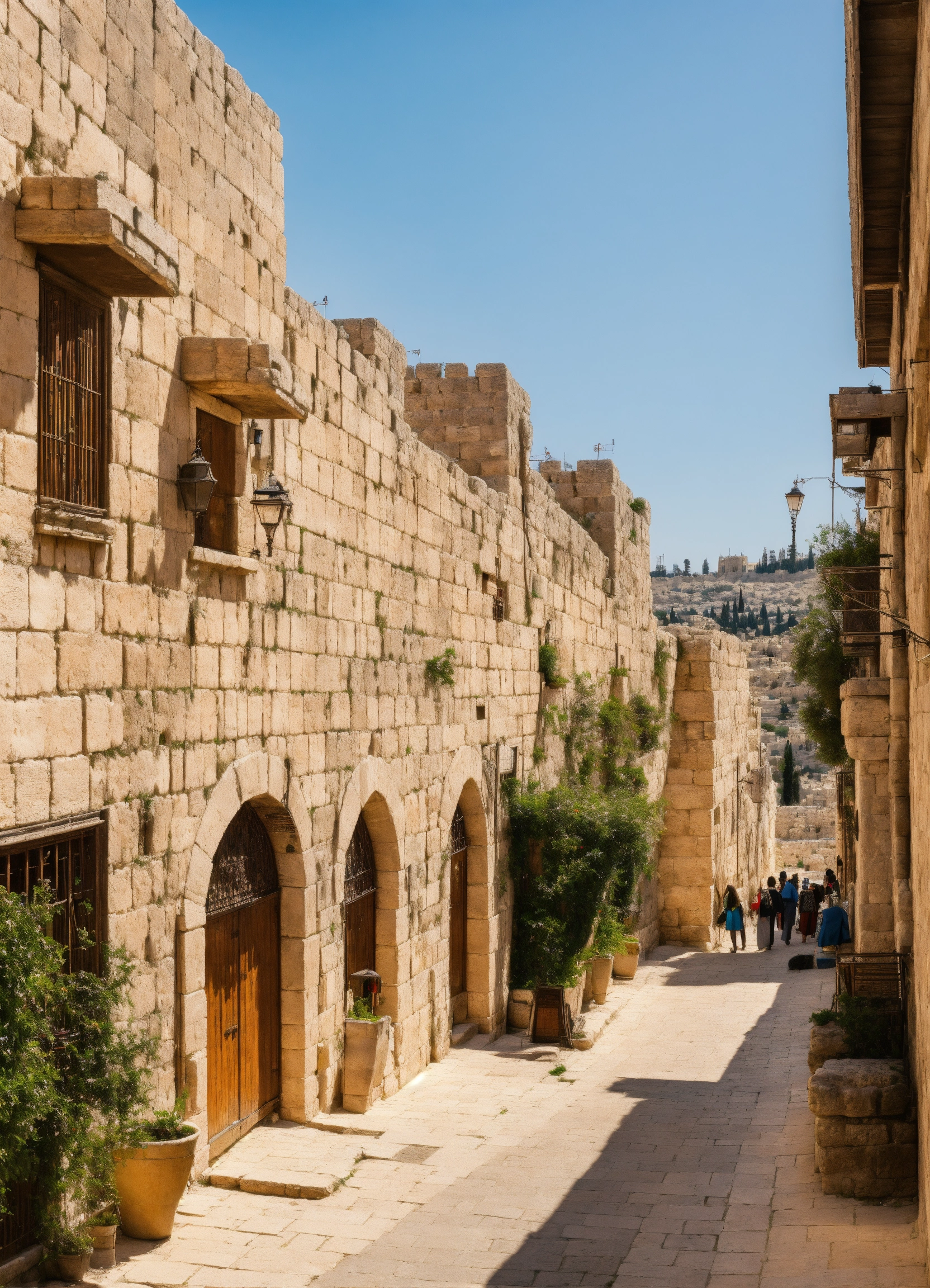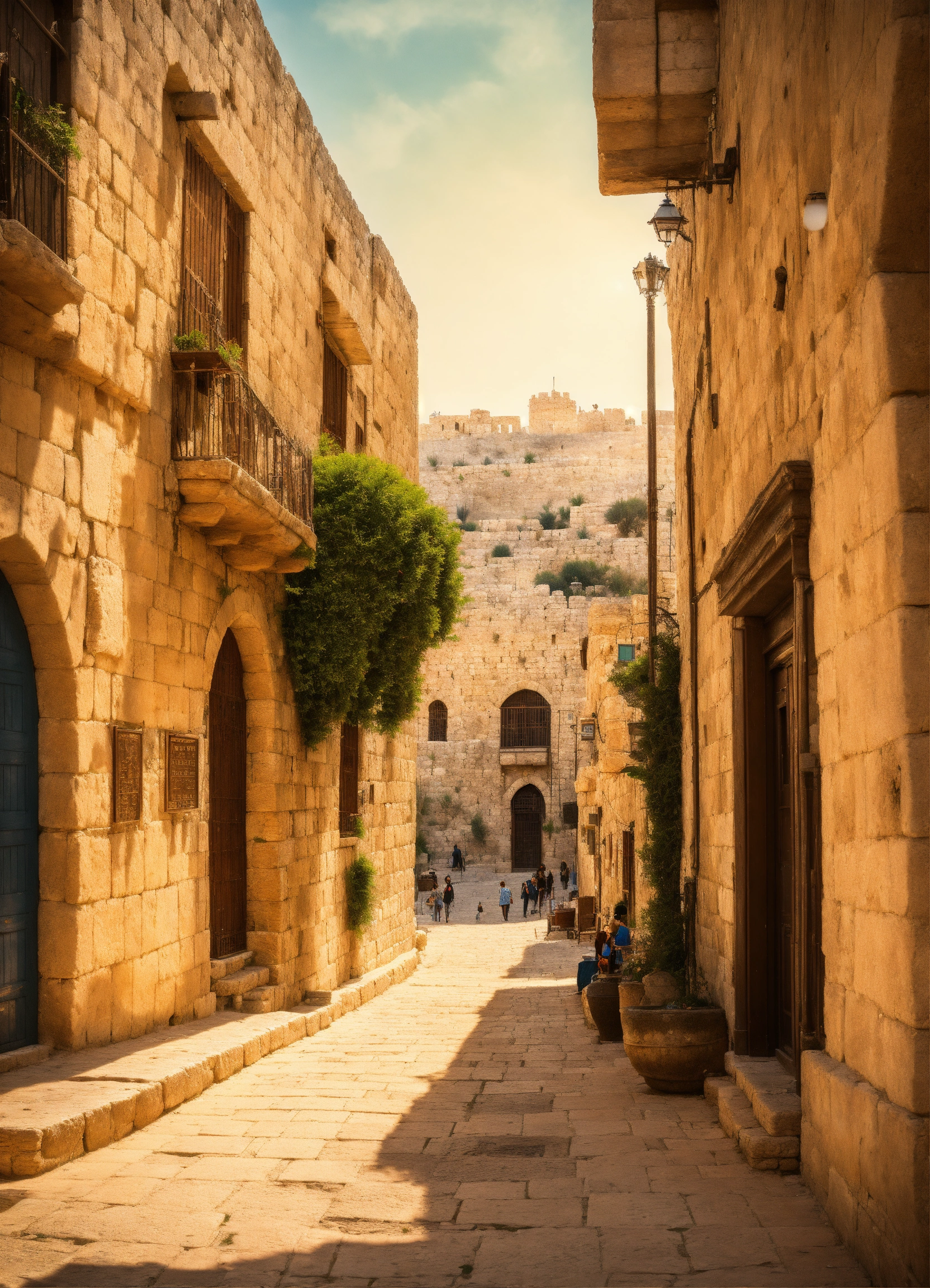 Street view of ancient jerusalem during king solomon rich neighborhood