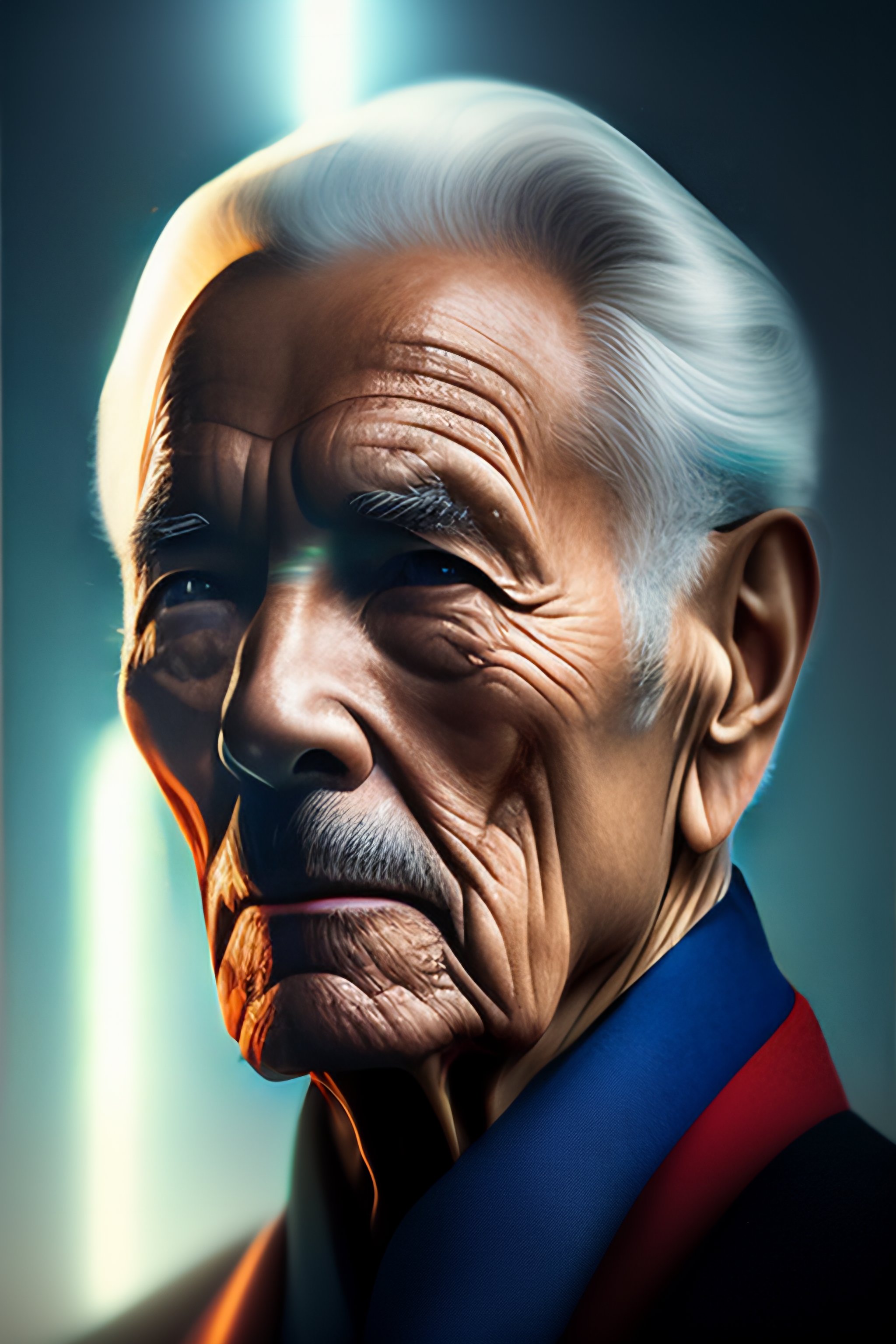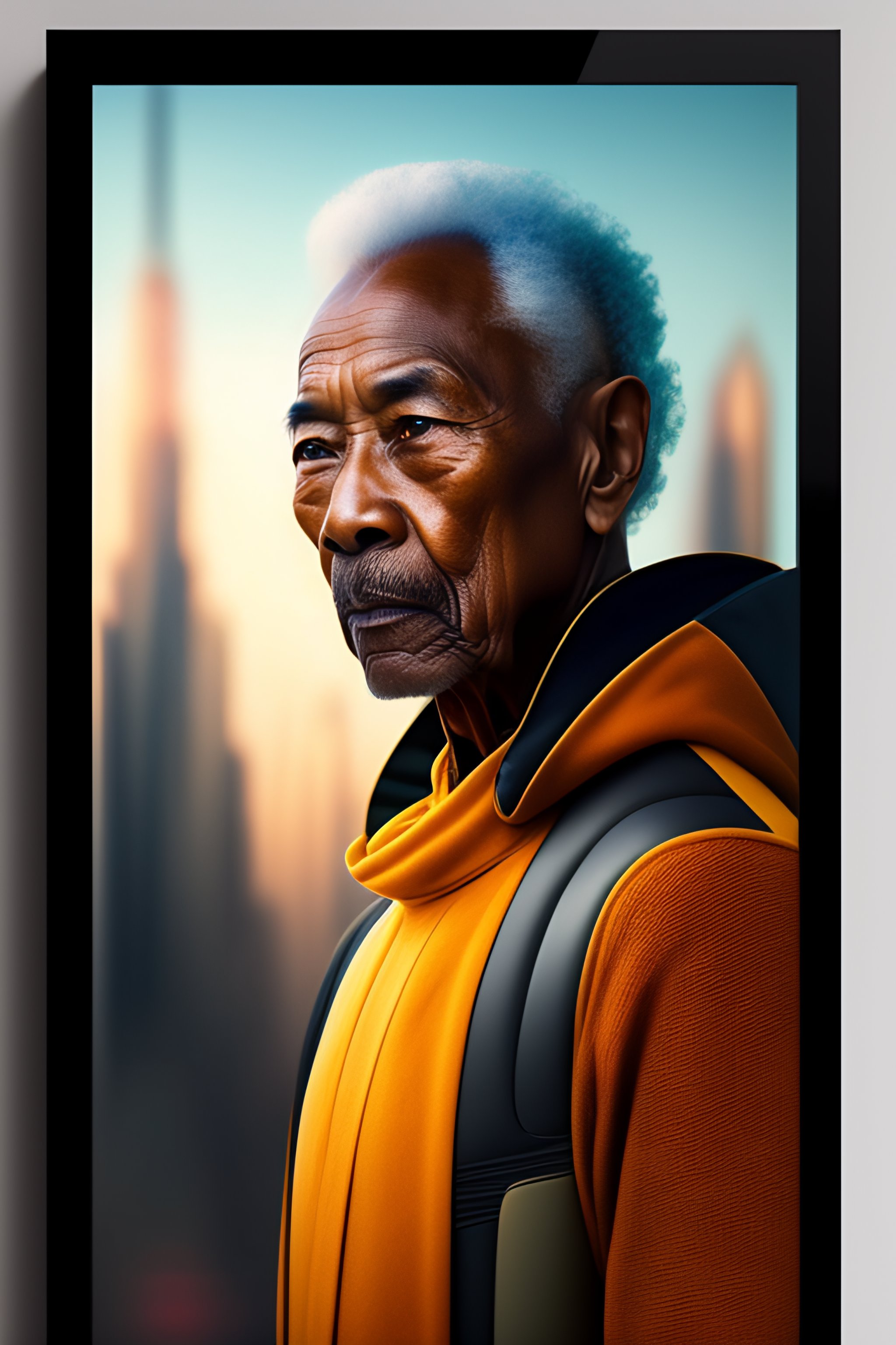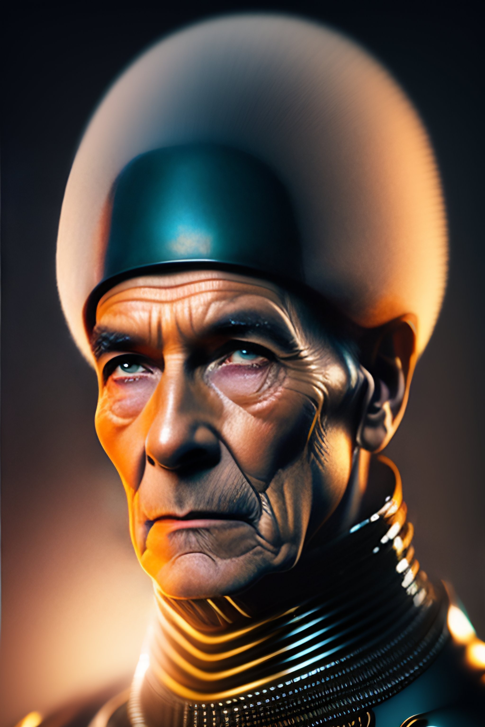 A vertical portrait of alien man from 50 years in the future