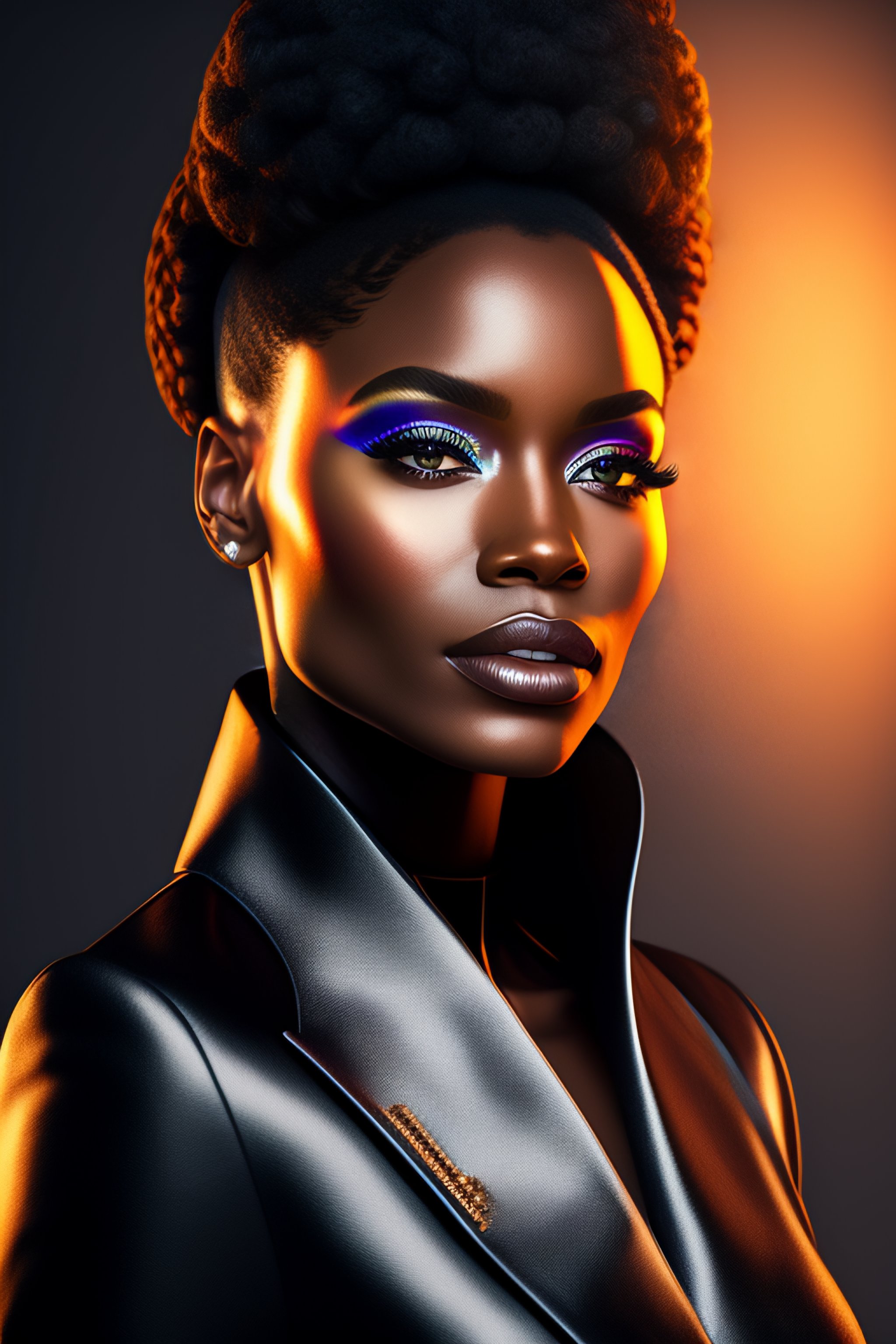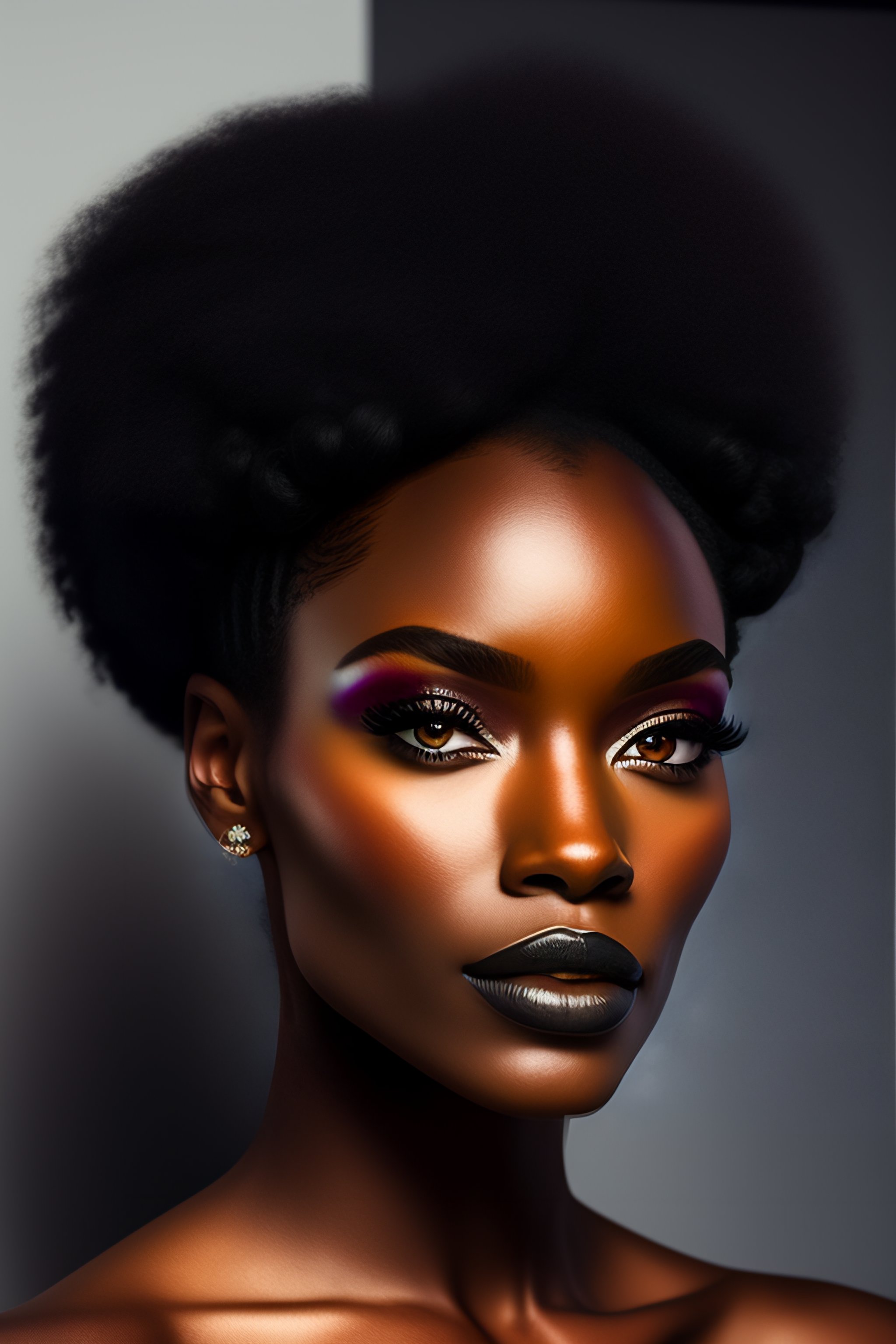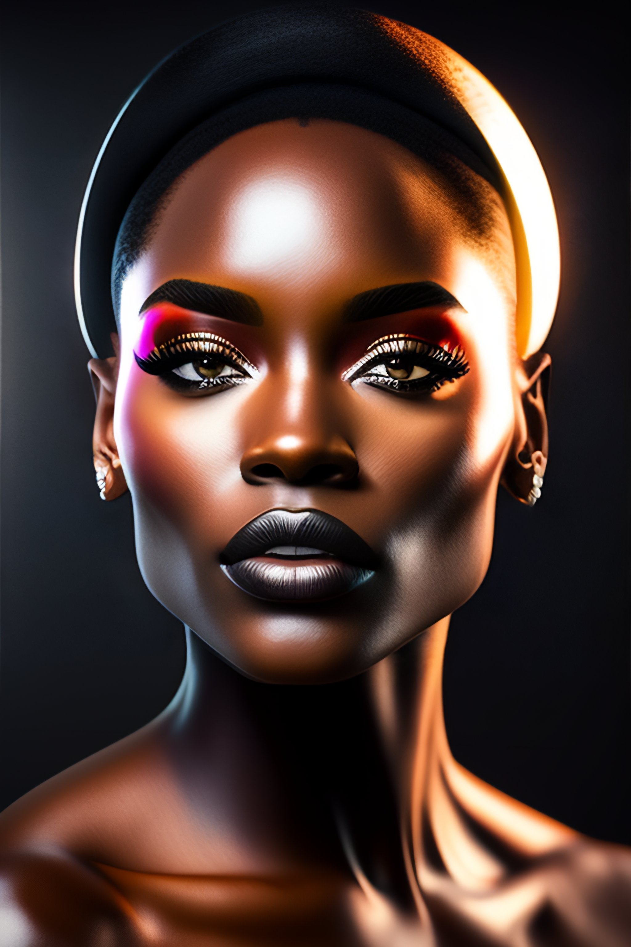 Realistic black model with innovative oculus headset - deco fashion, highly detailed, photorealistic portrait, bright studio setting, studio lighting, crisp quality and light reflections, metaverse quality render