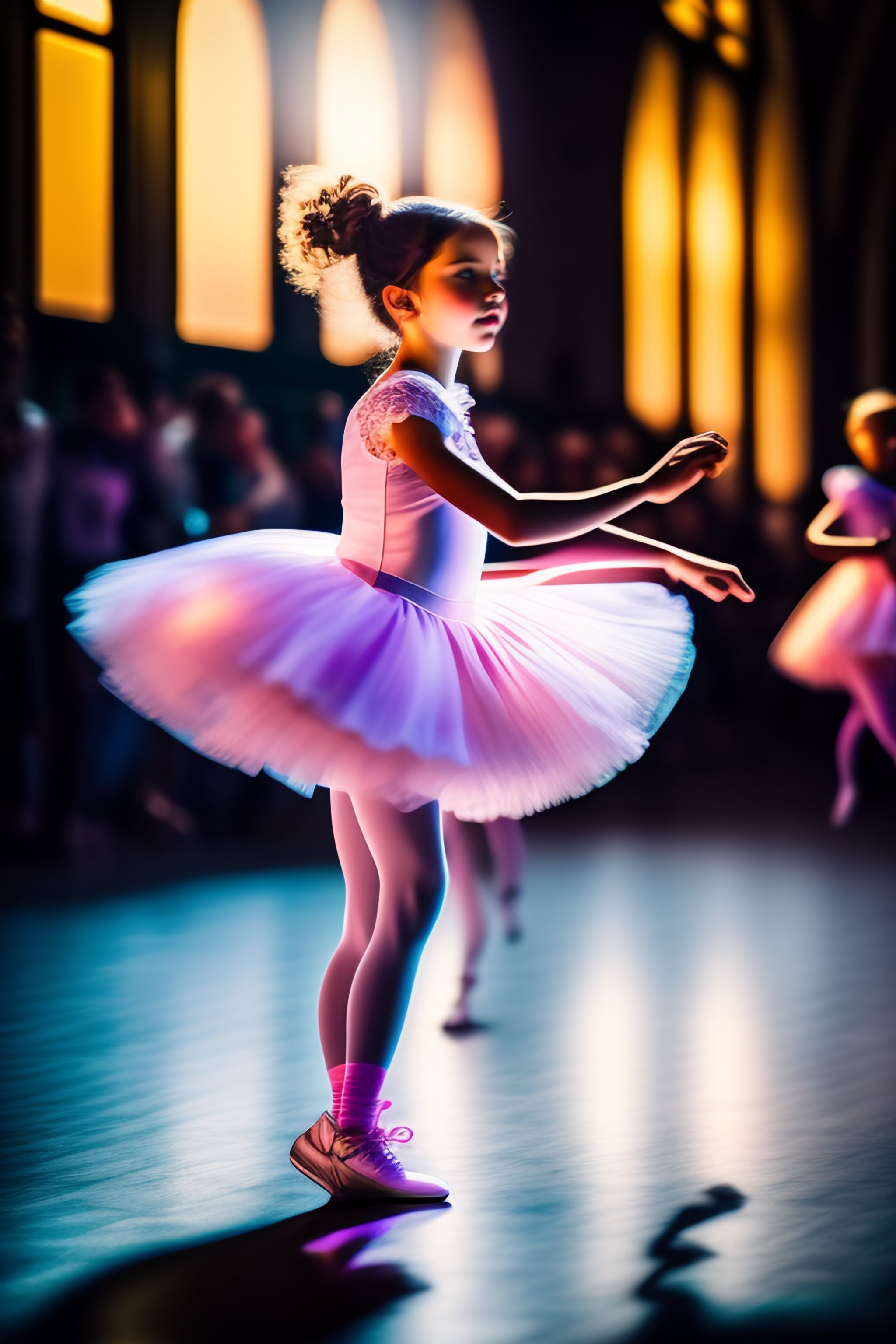 Young balerina dancing, detailed, 35mm, f/2.8, 4k, photojournalism, busy background, volumetric lighting, neo-expressionism, art photography