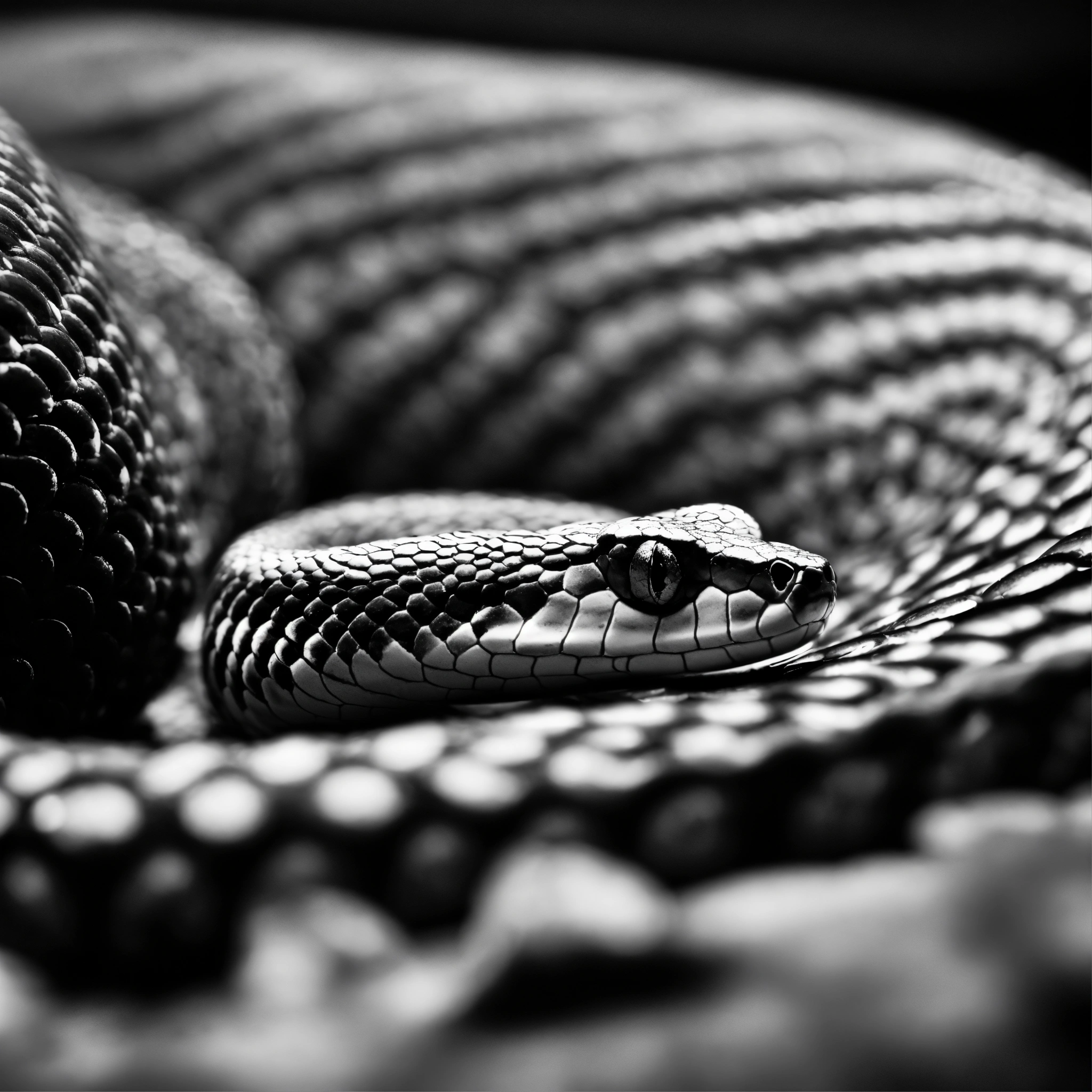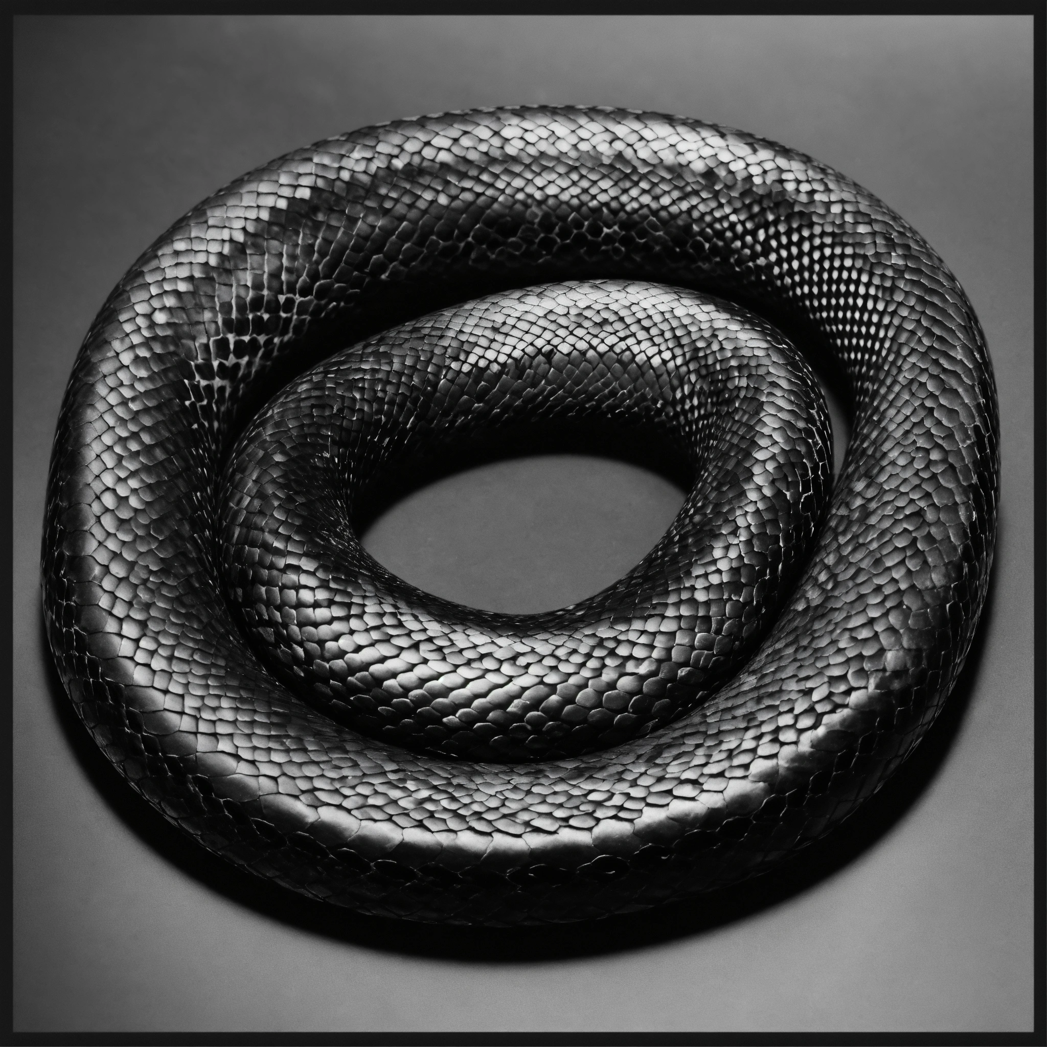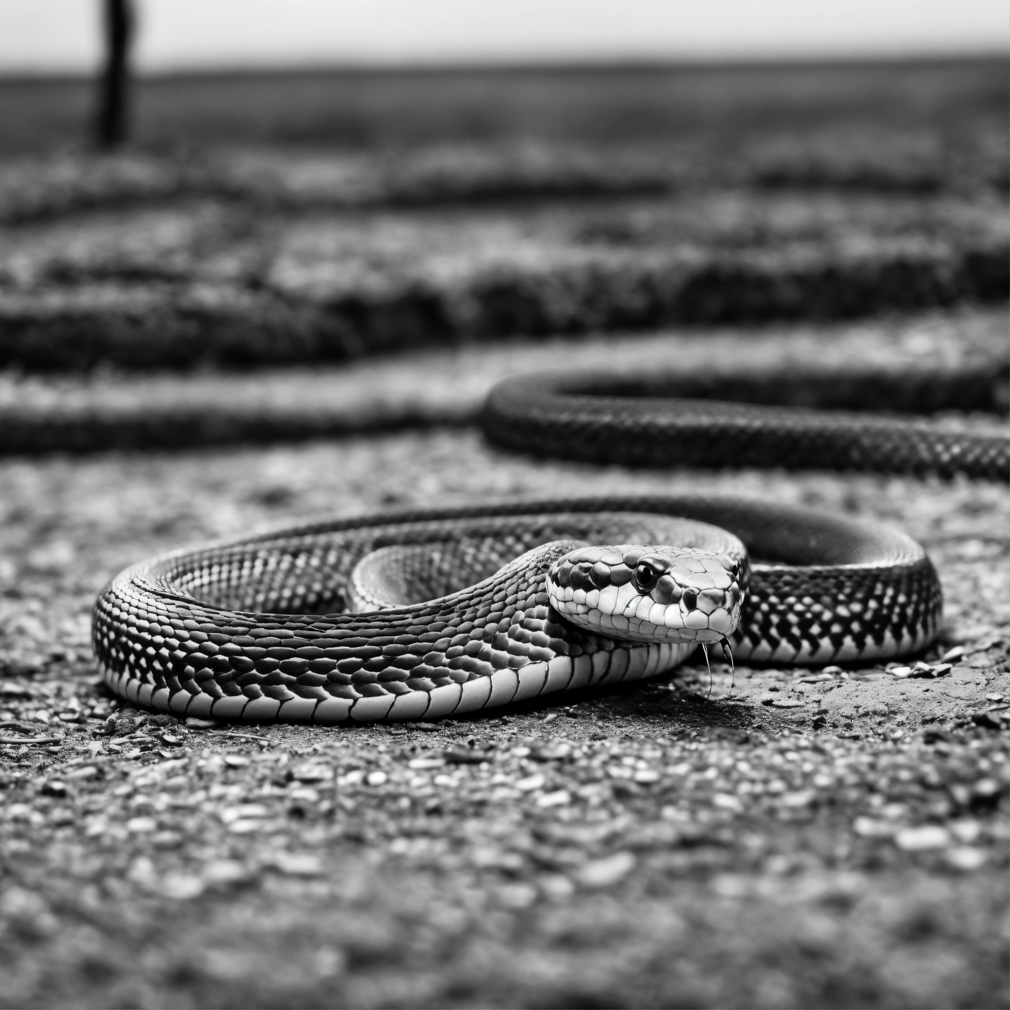 Monochrome snake lying in a straight line