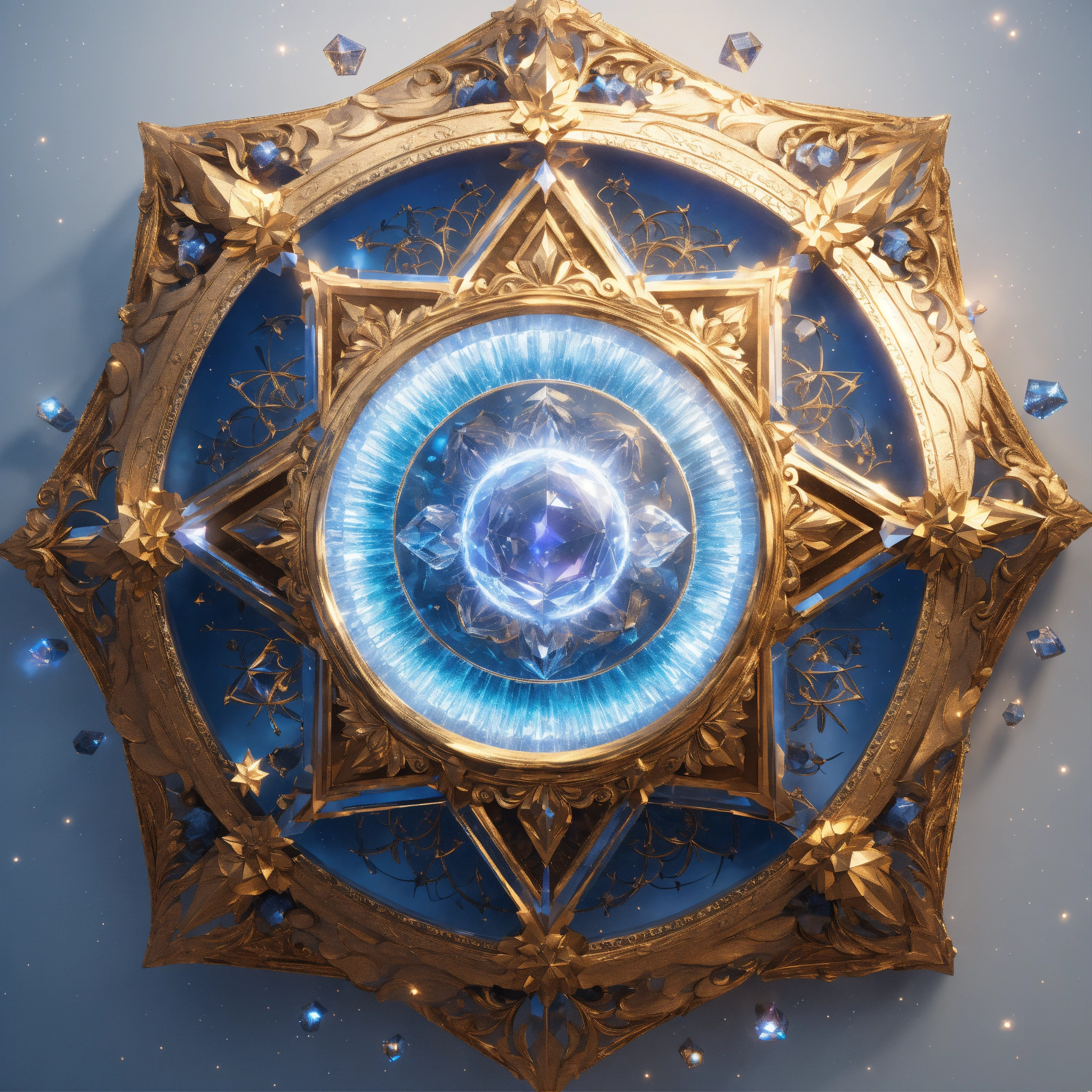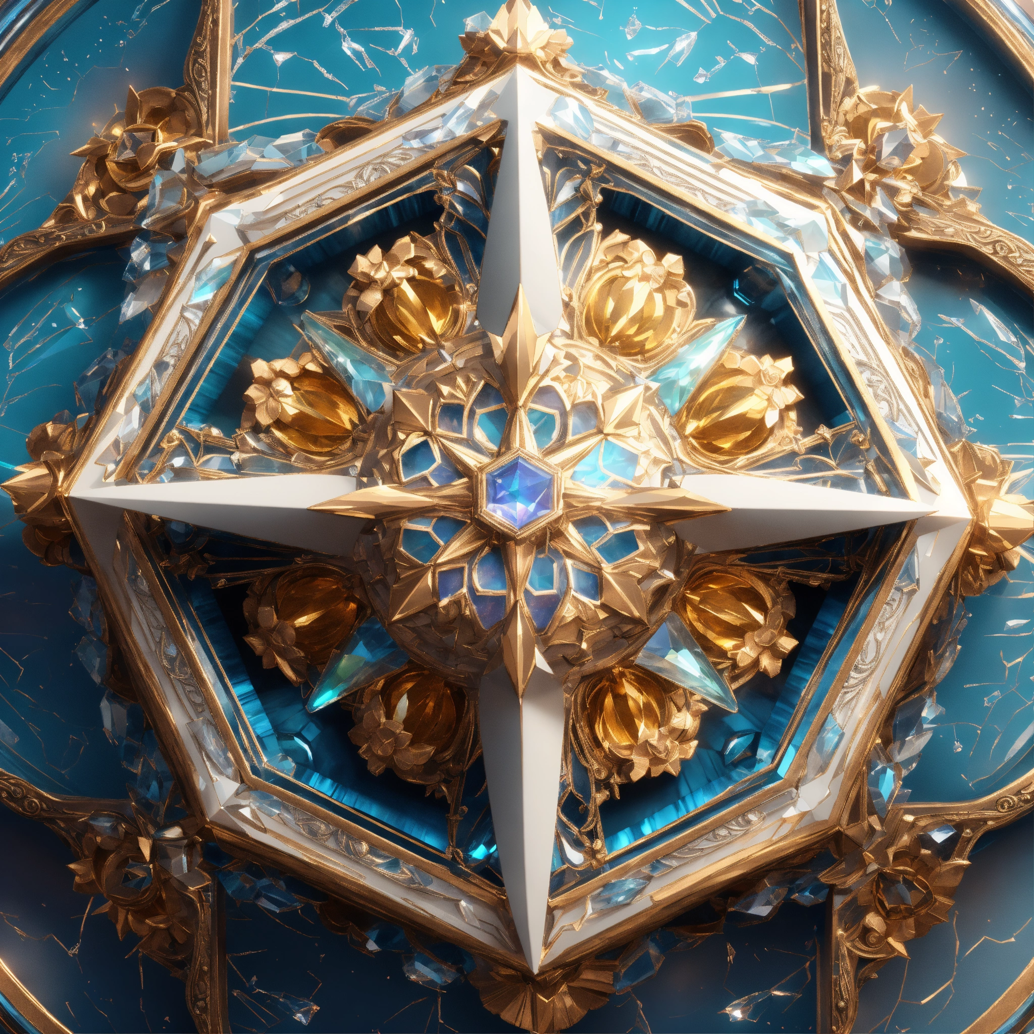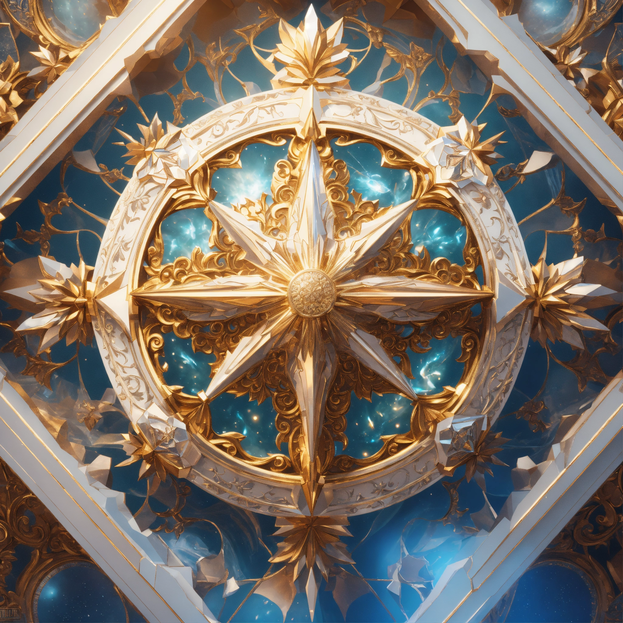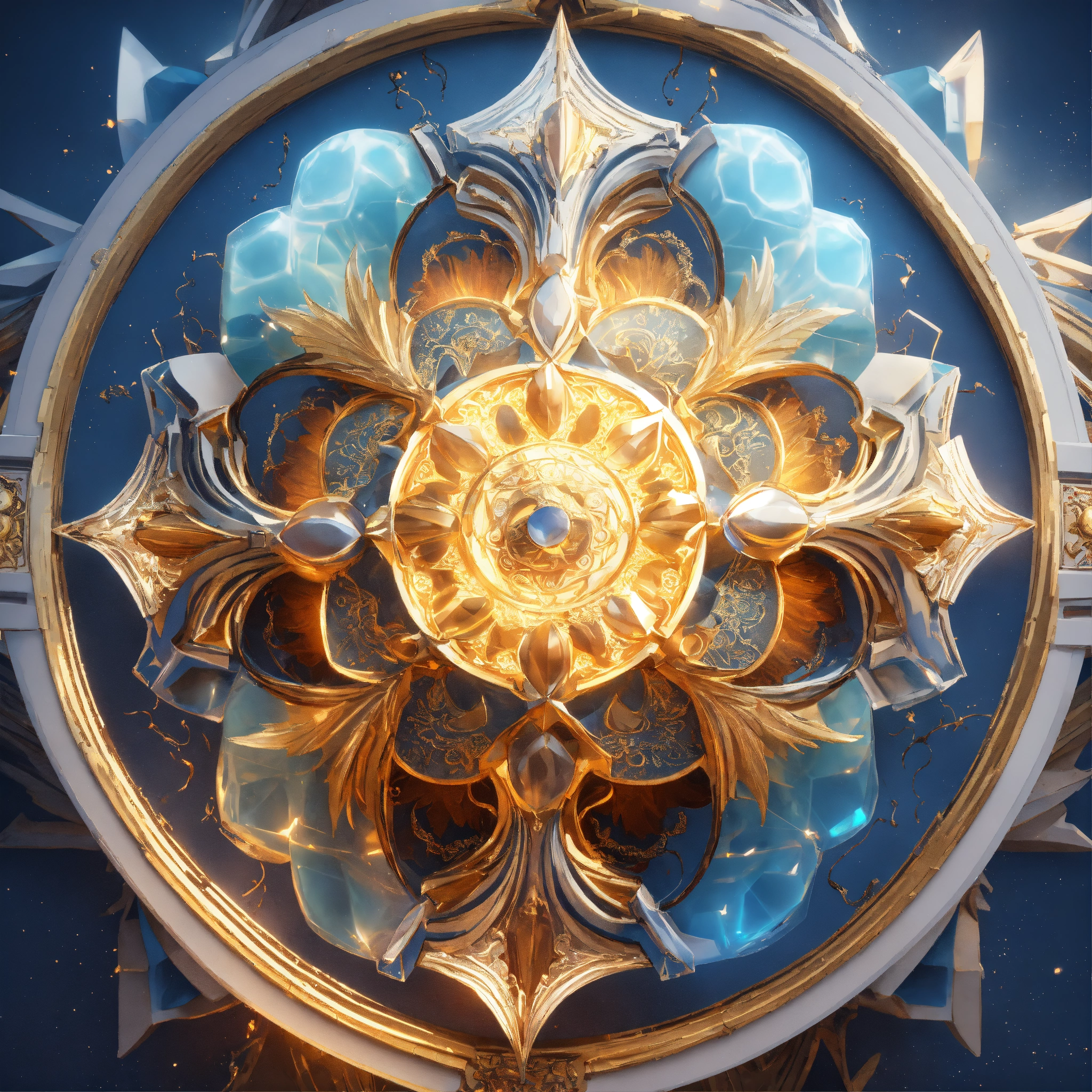 A white crystal divine crest of the sky god with ornate geometric designs, ornate, elegant, highly detailed, ray tracing, unreal 5 render, digital painting, artstation, concept art, fantasy beautiful photorealistic illustration, smooth, sharp focus, illustration, 8k, v2, centered, symmetry, painted, intricate, volumetric lighting, beautiful, sharp focus, ultra-detailed, astrophotography, toy, soft smooth lighting, 3d blender render, modular constructivism, pop surrealism, physically based rendering, 32k, unreal engine