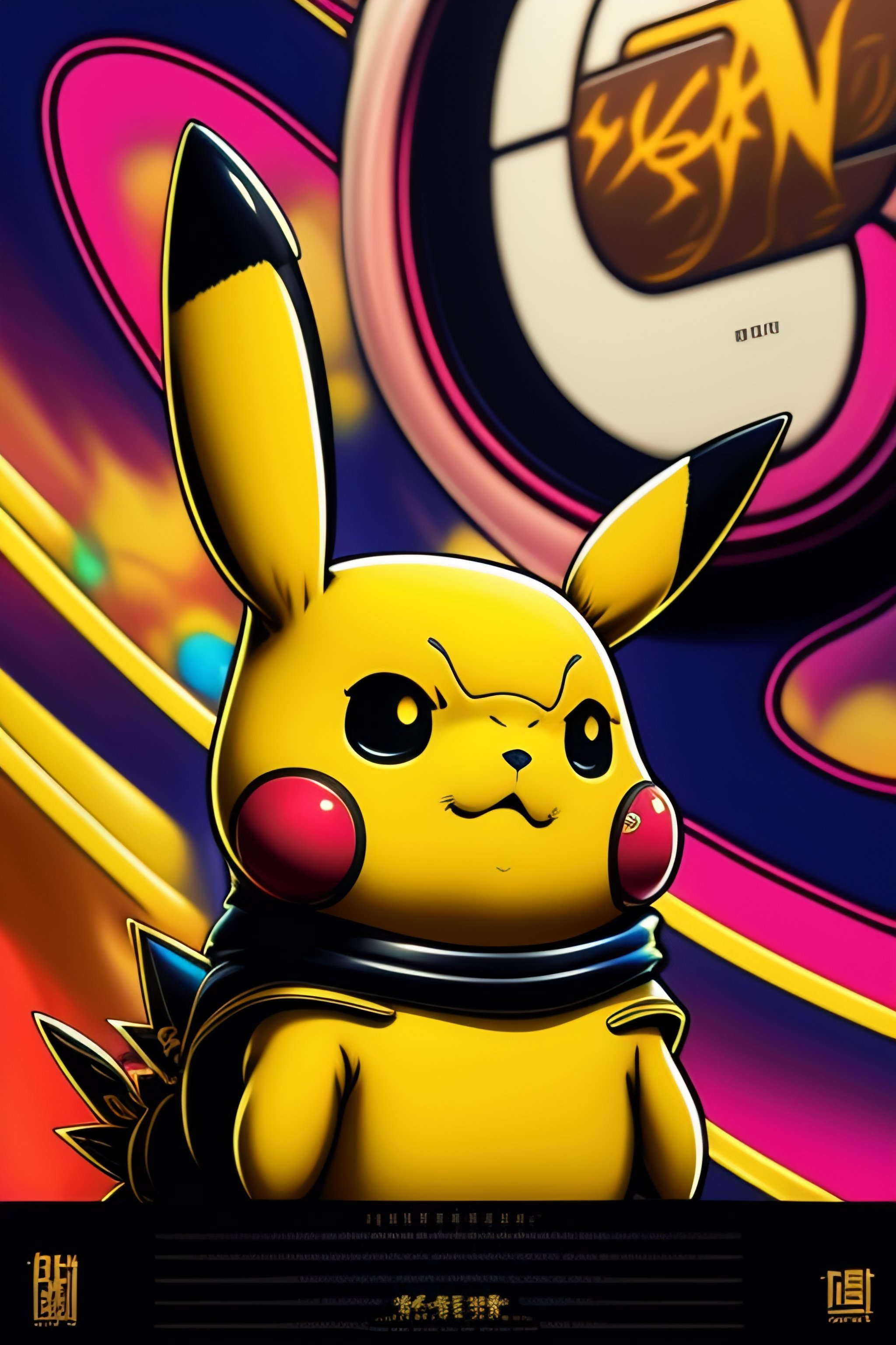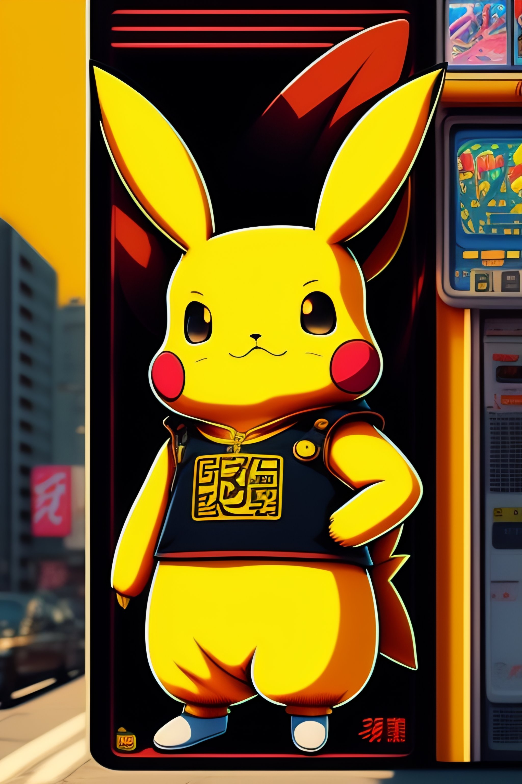 Stylish pikachu in the style of 90's vintage anime, surrealism, akira style. detailed line art. fine details. inside a 7/11 in tokyo
