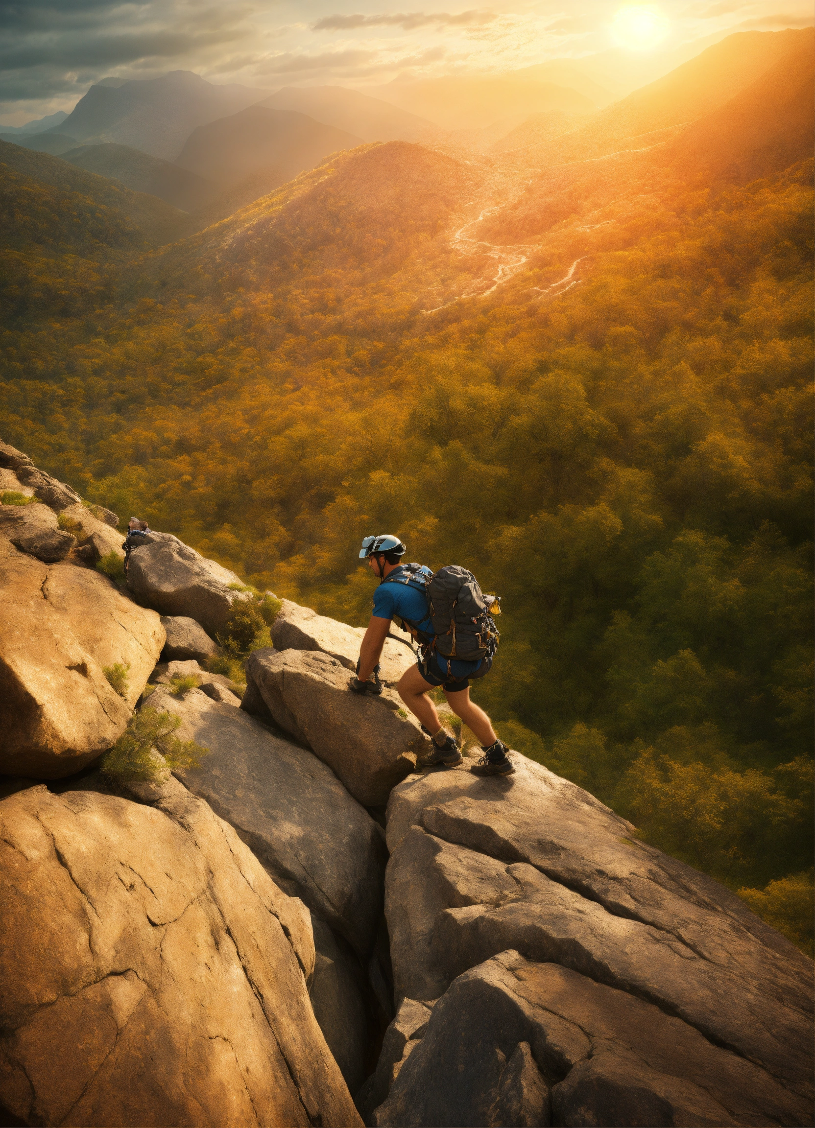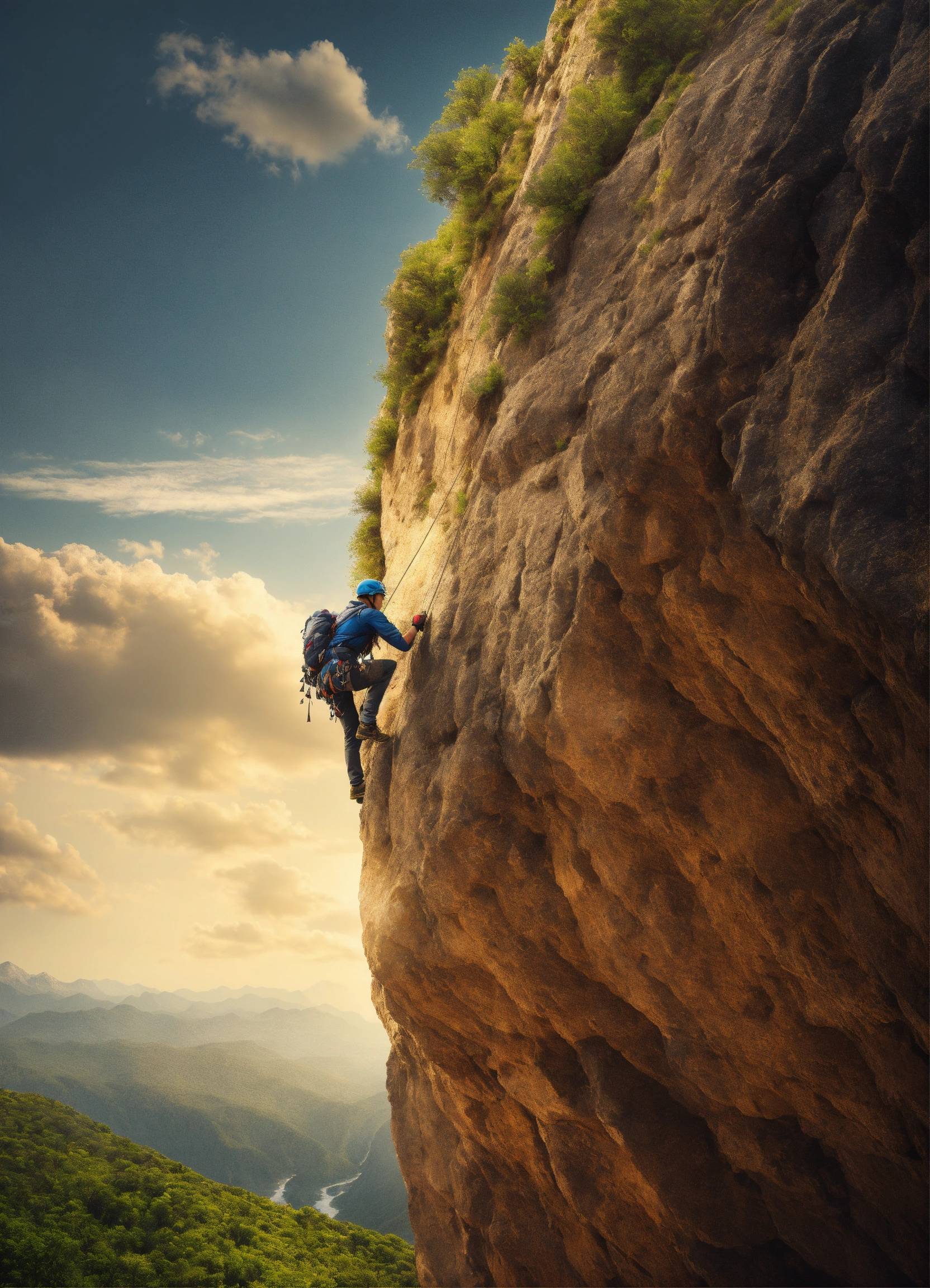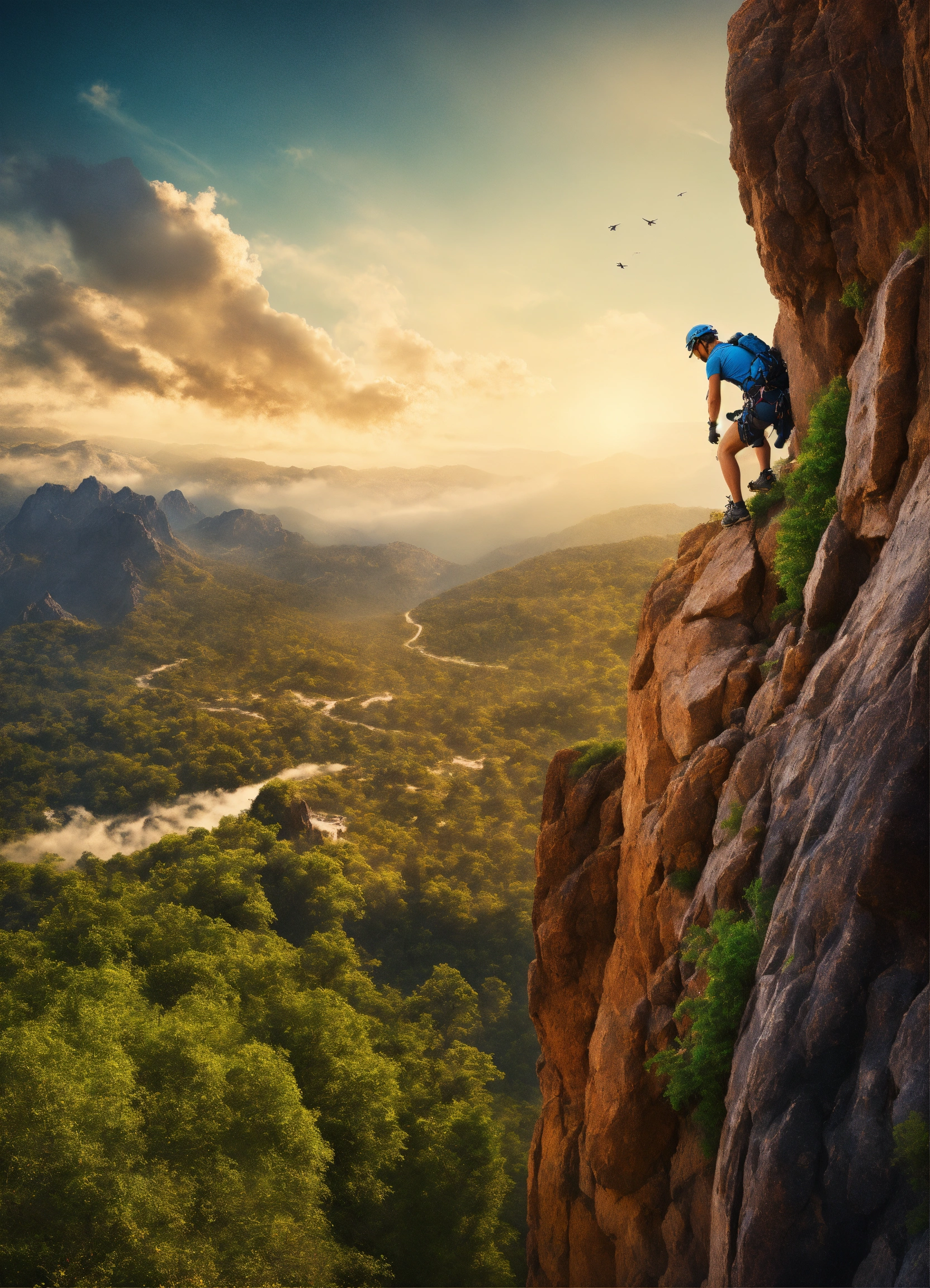 This concept visually conveys the idea of "photo manipulation" with a "men climbing on a rock" theme by digitally enhancing a photograph to emphasize the adventure, determination, and rugged nature of the climb. it showcases the power of photo manipulation in storytelling and creating visually captivating outdoor scenes. creating such an image would require the skills of a talented photo manipulator and graphic designer, realistic photo, 4k realistic photo.