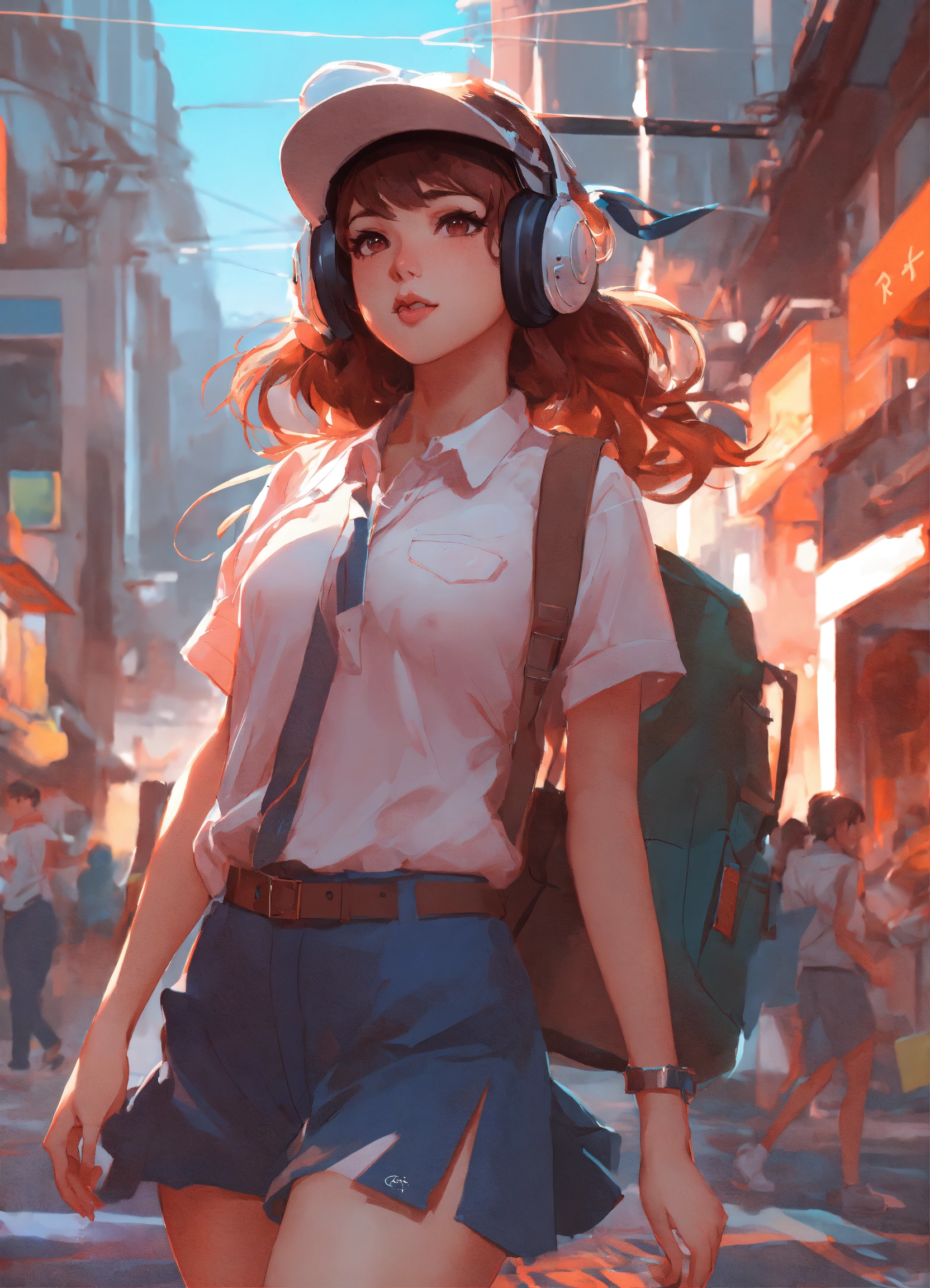 Cute anime woman, vr fbt user, dynamic pose, dynamic composition, by artgerm, atey ghailan, greg rutkowski