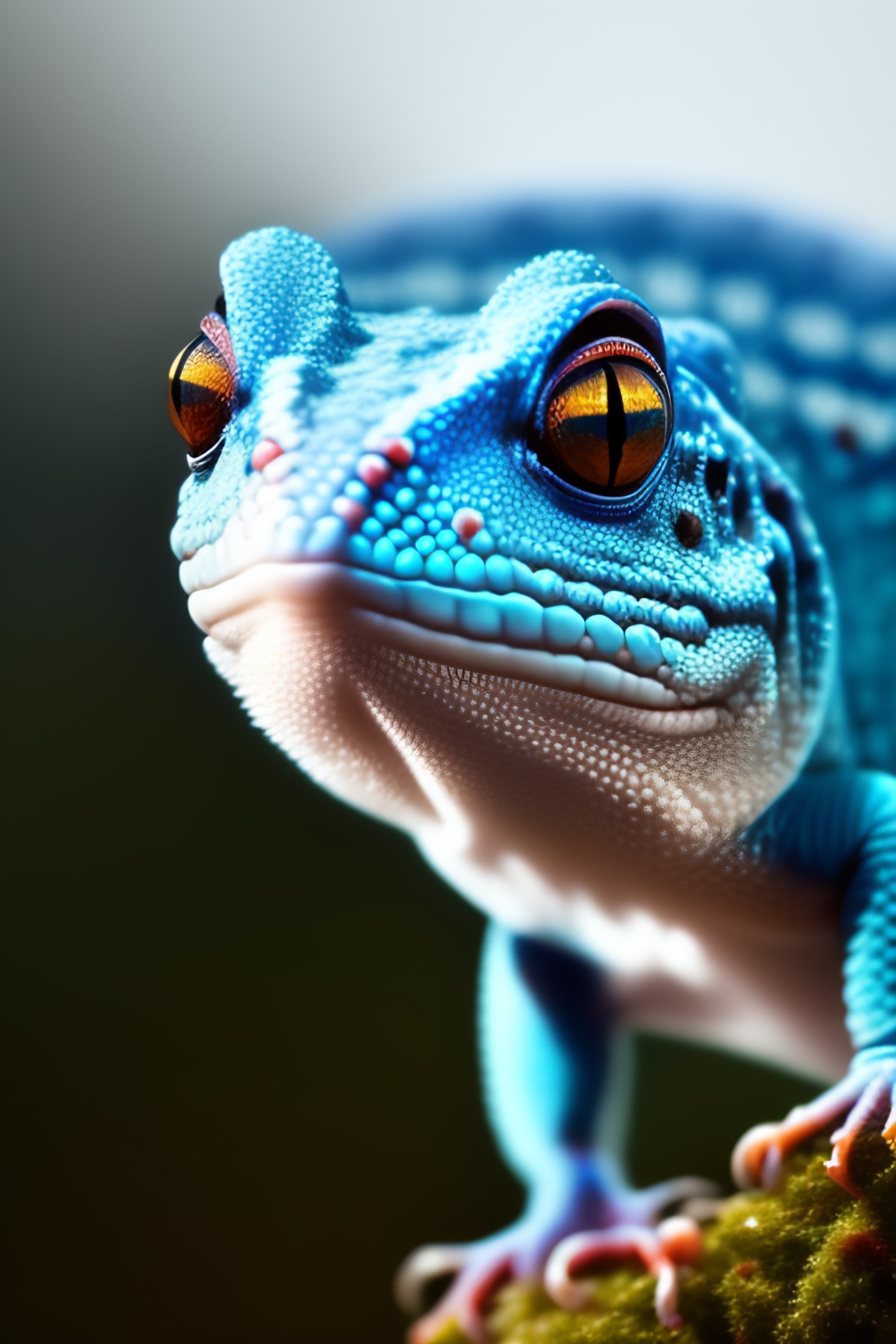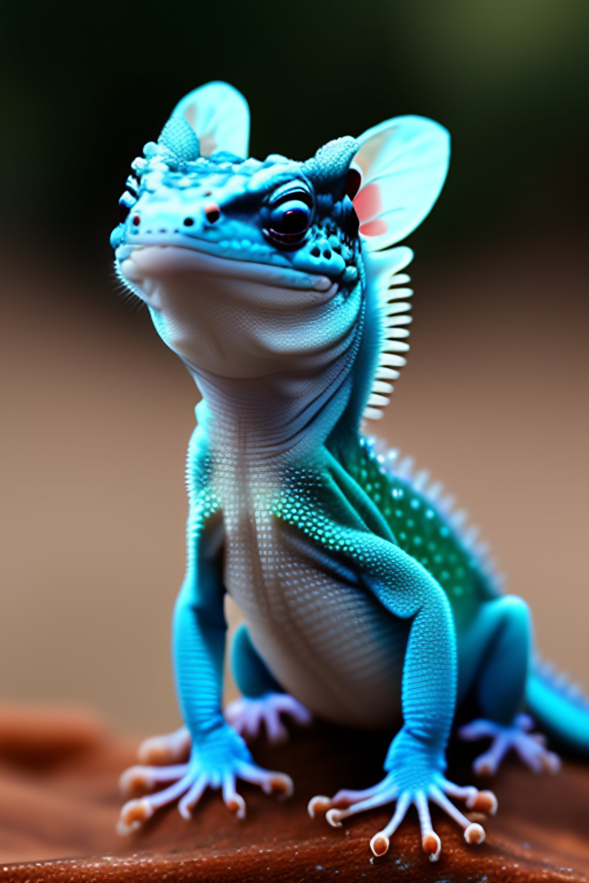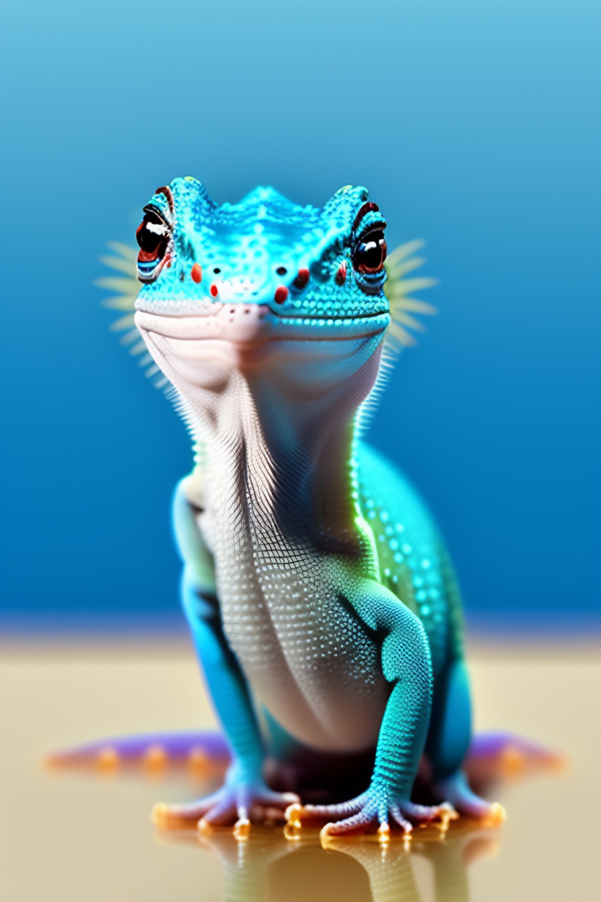 An upright, light-blue gecko, in the style of disney's frozen ii, head bigger in proportion to the rest of its body, rounded angles, smiling widely looking directly at me, white background