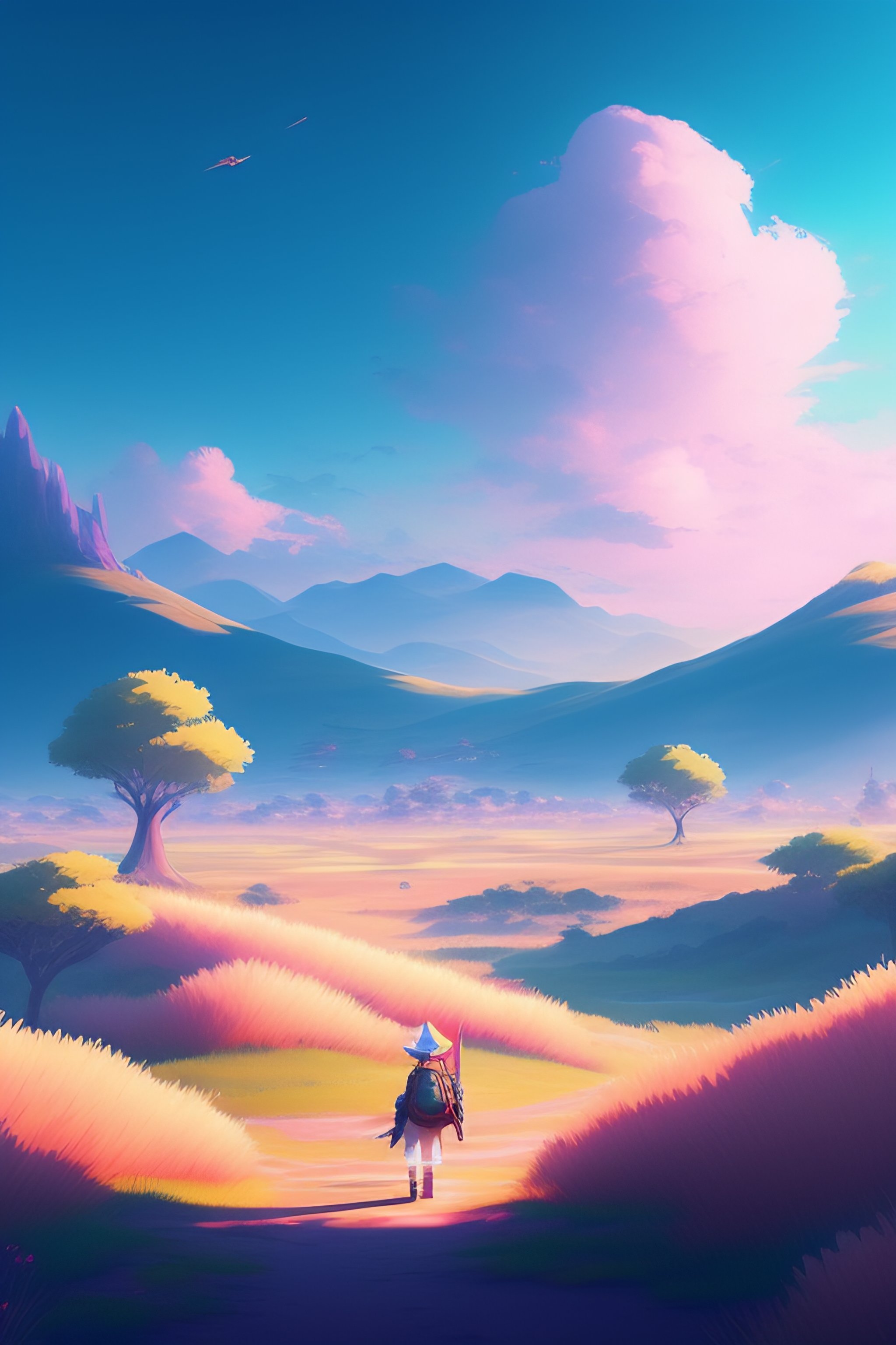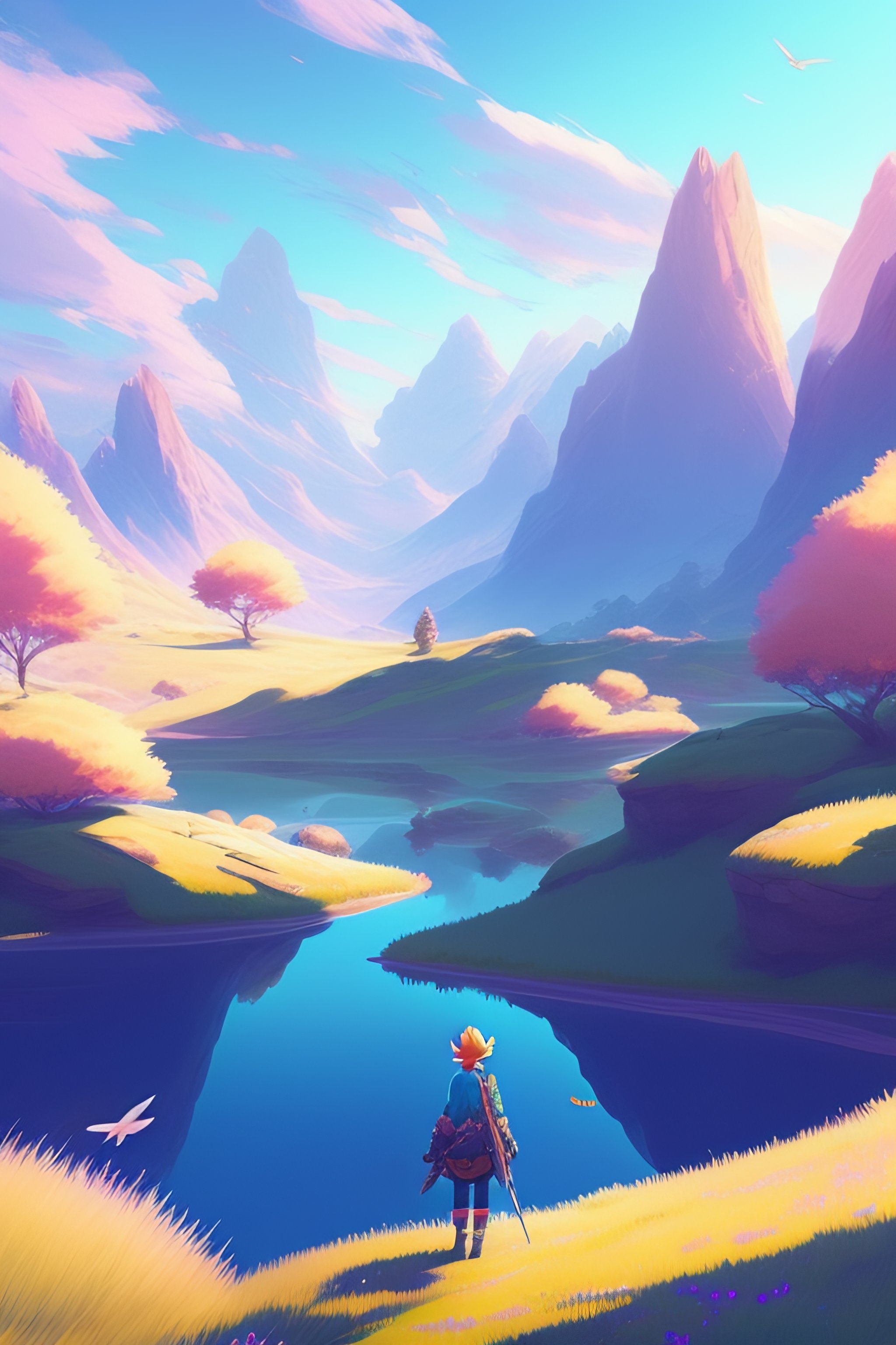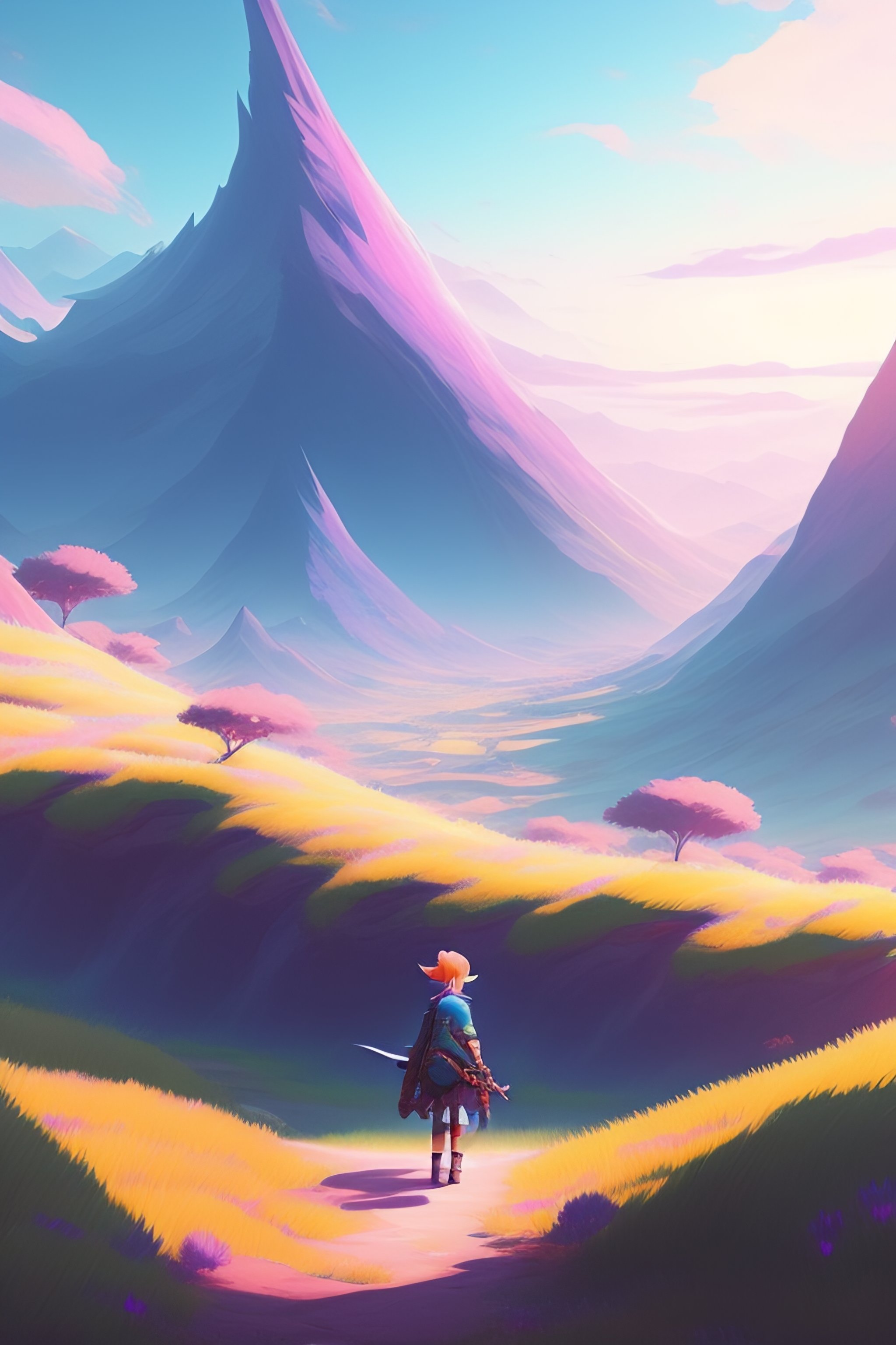 Link in a pastel landscape of an anime field. clean sharp digital art, environment concept art, by rossdraws, ghibli, breath of the wild, greg rutkowski