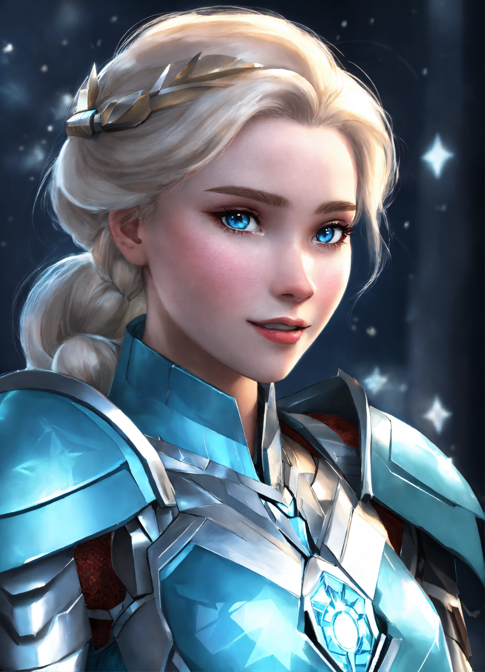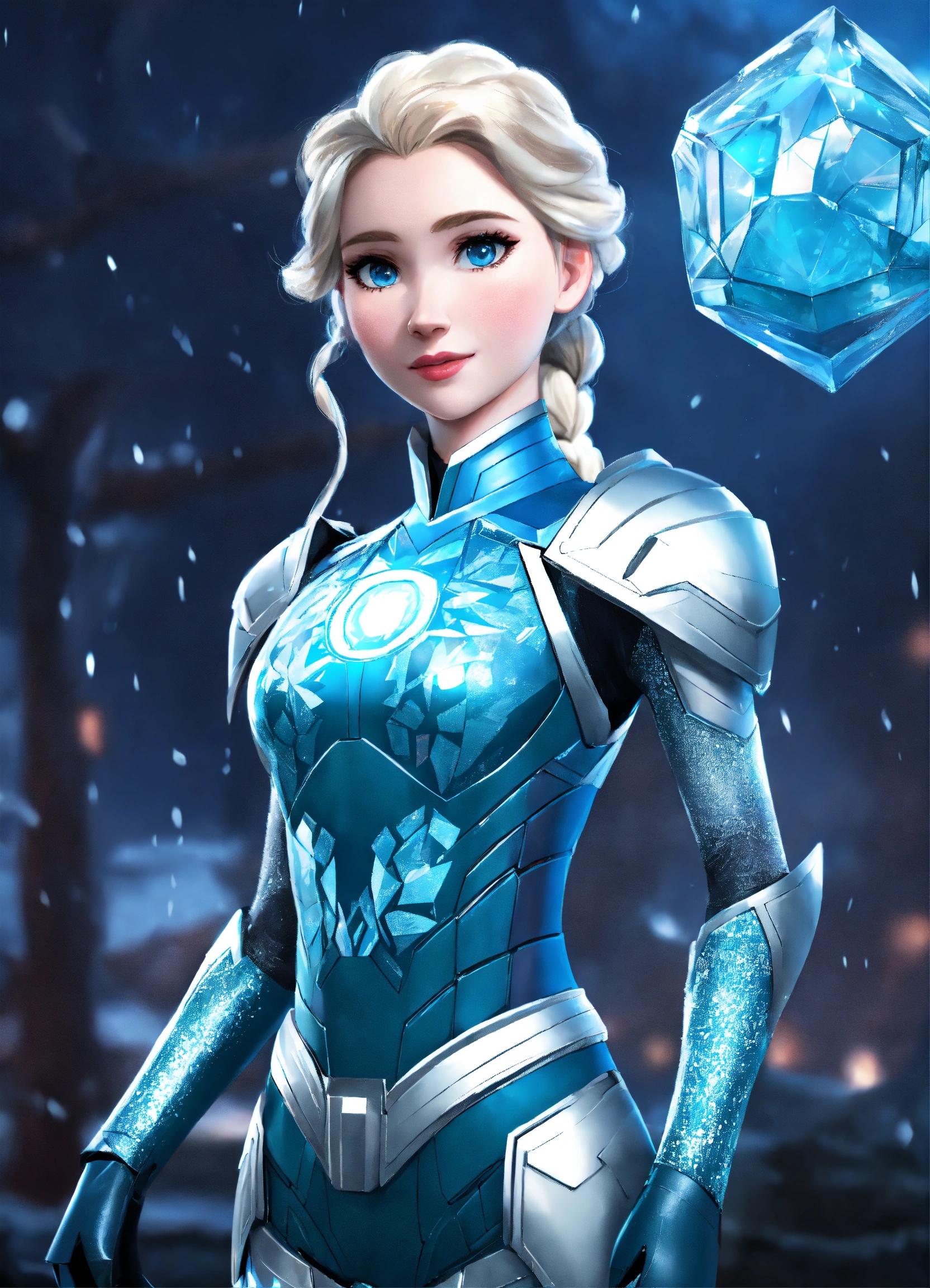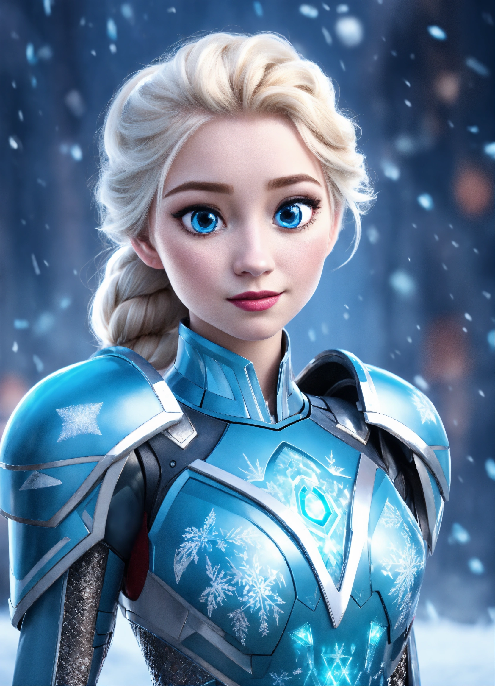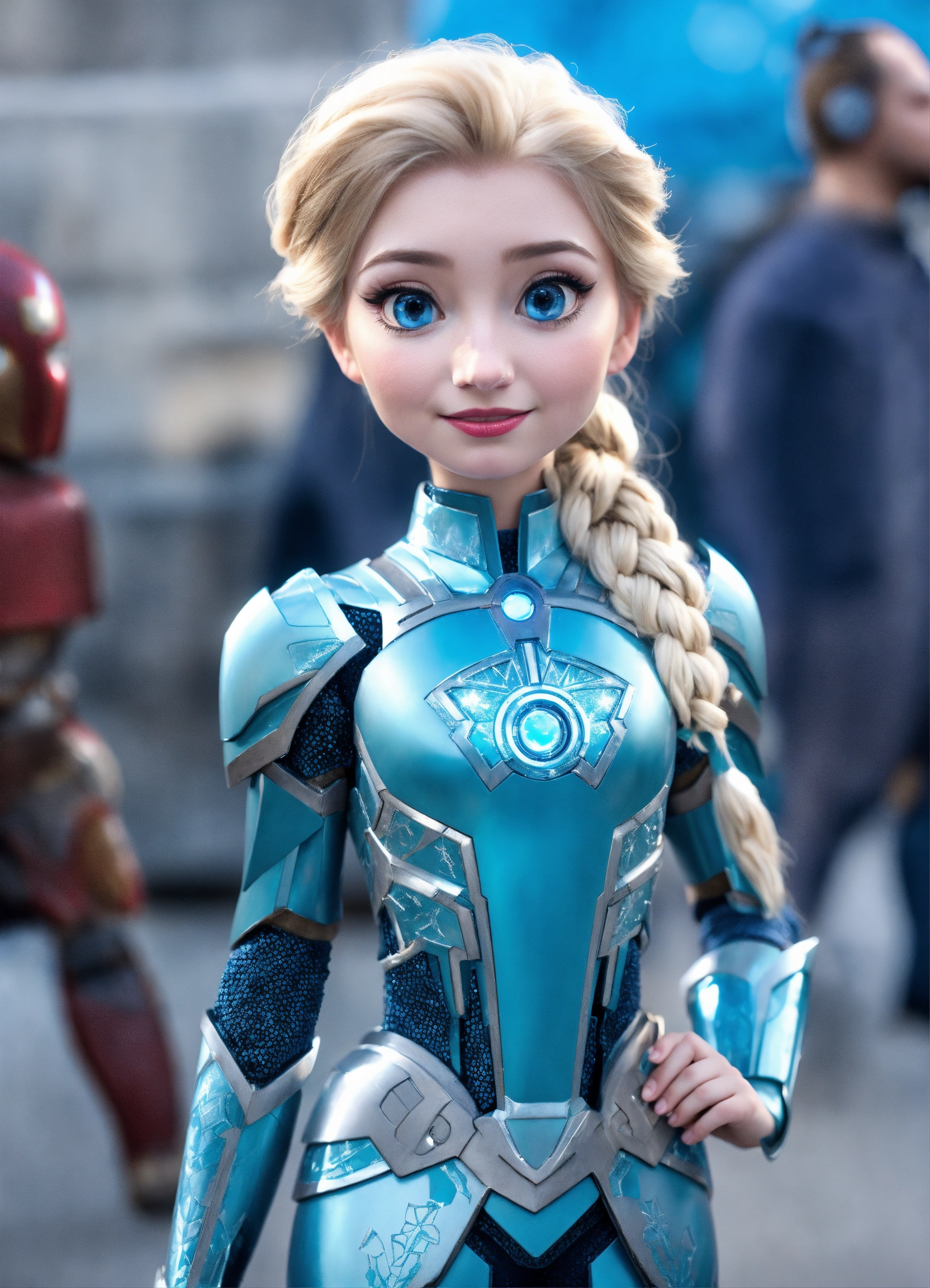 Female elsa frozen wearing metal ice blue iron man armor while looking cute