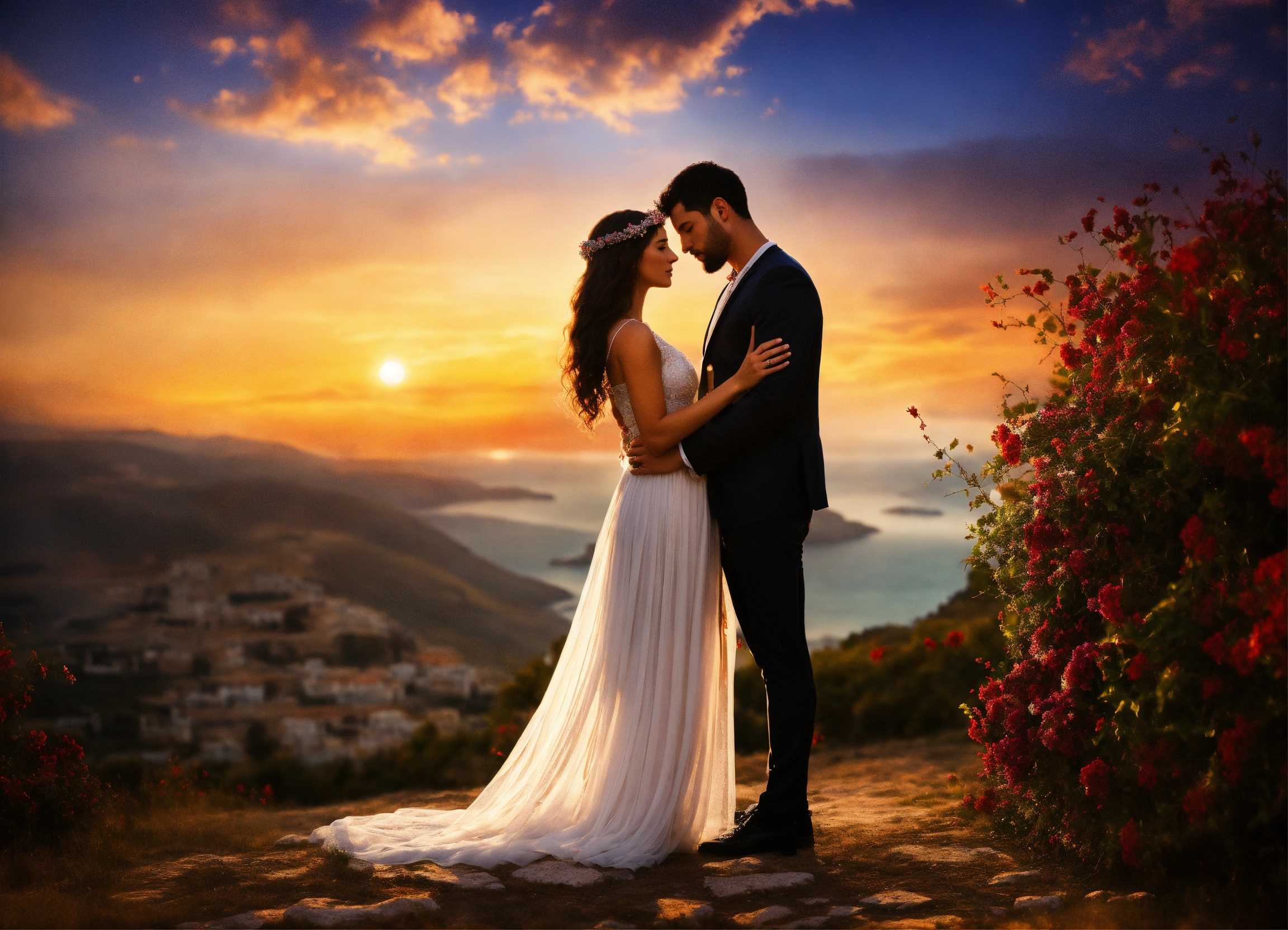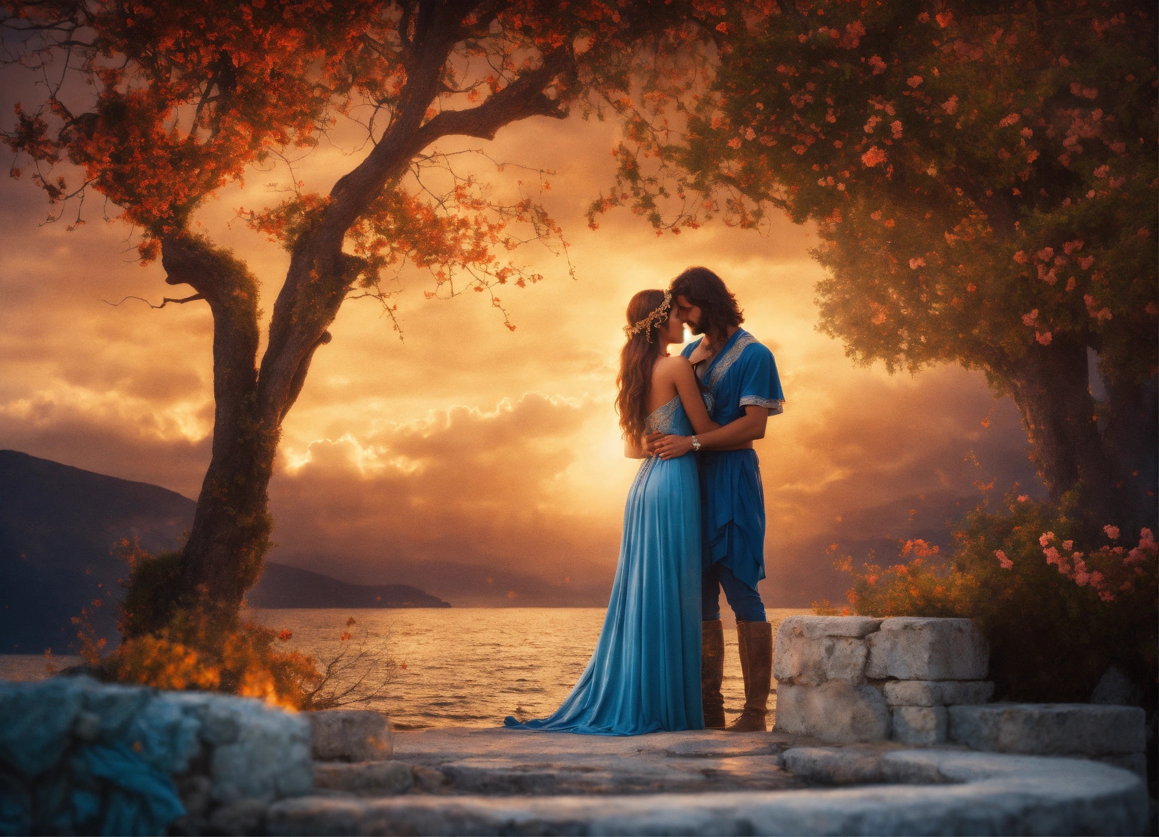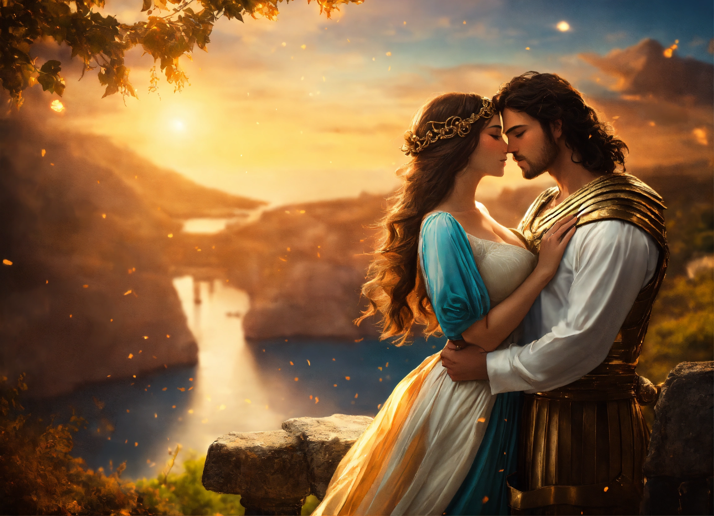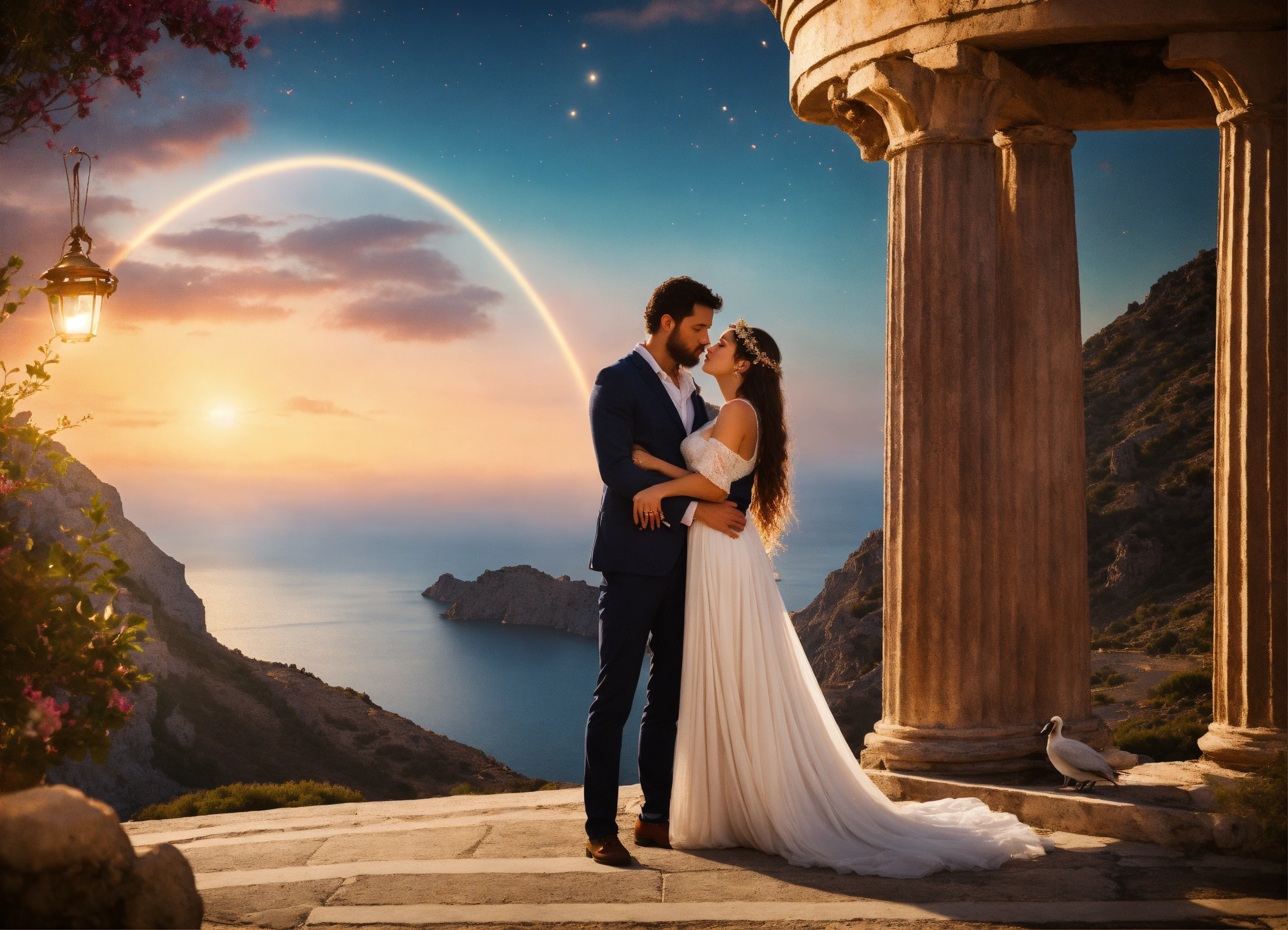 a couple of lovers against a magical background.