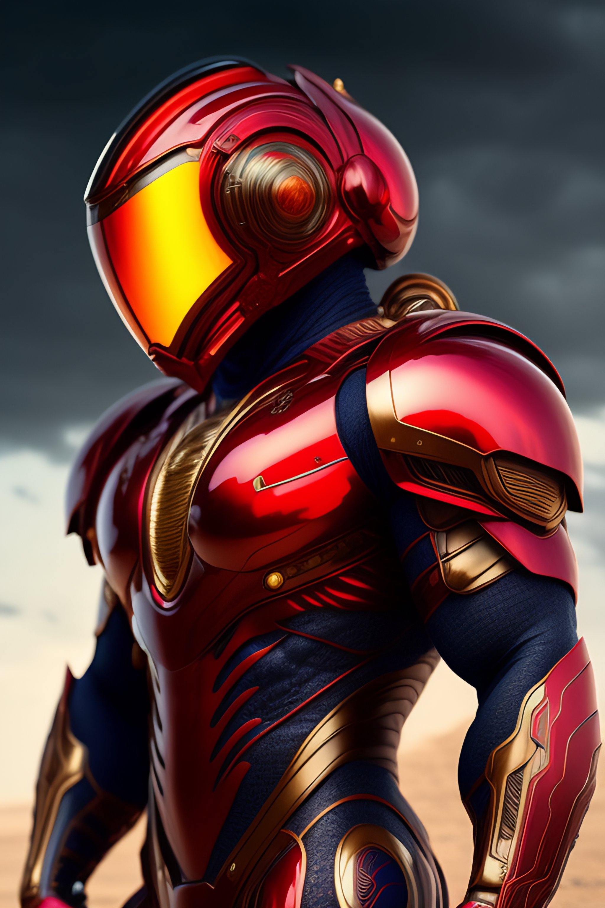 Solid thick super muscular male alien portrait, translucent red helmet, deep red skin, hyper realistic, intricate details, looper artifact, cyborg, by peter mohrbacher, allen williams, hajime sorayama, wayne barlowe, boris vallejo, aaron horkey, gaston highly detailed civil servant