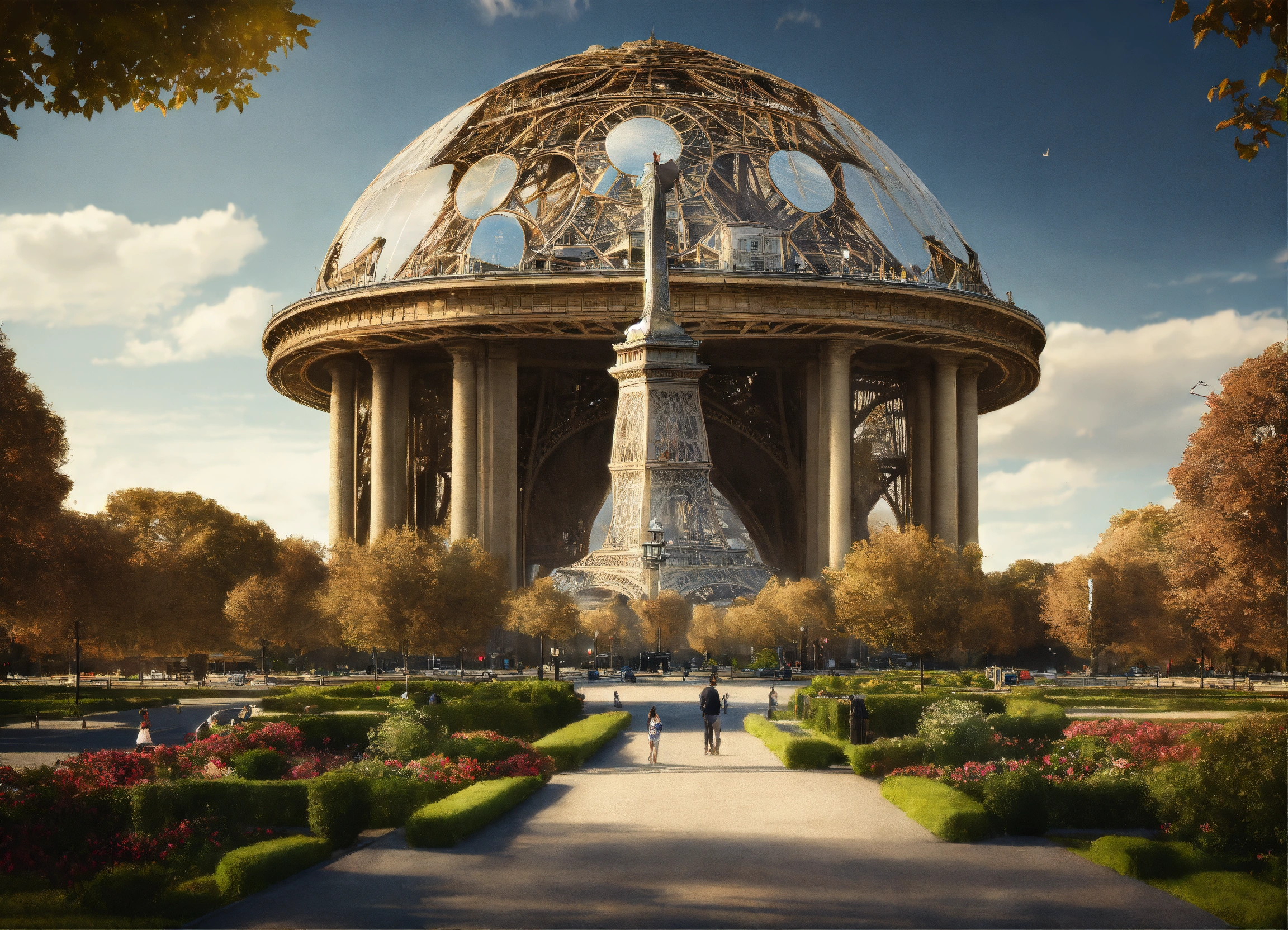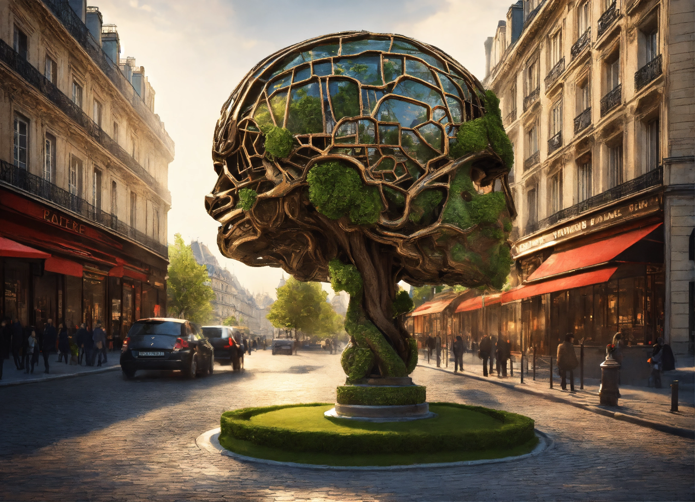 in place of the eiffel tower there is a large monument in the shape of a brain