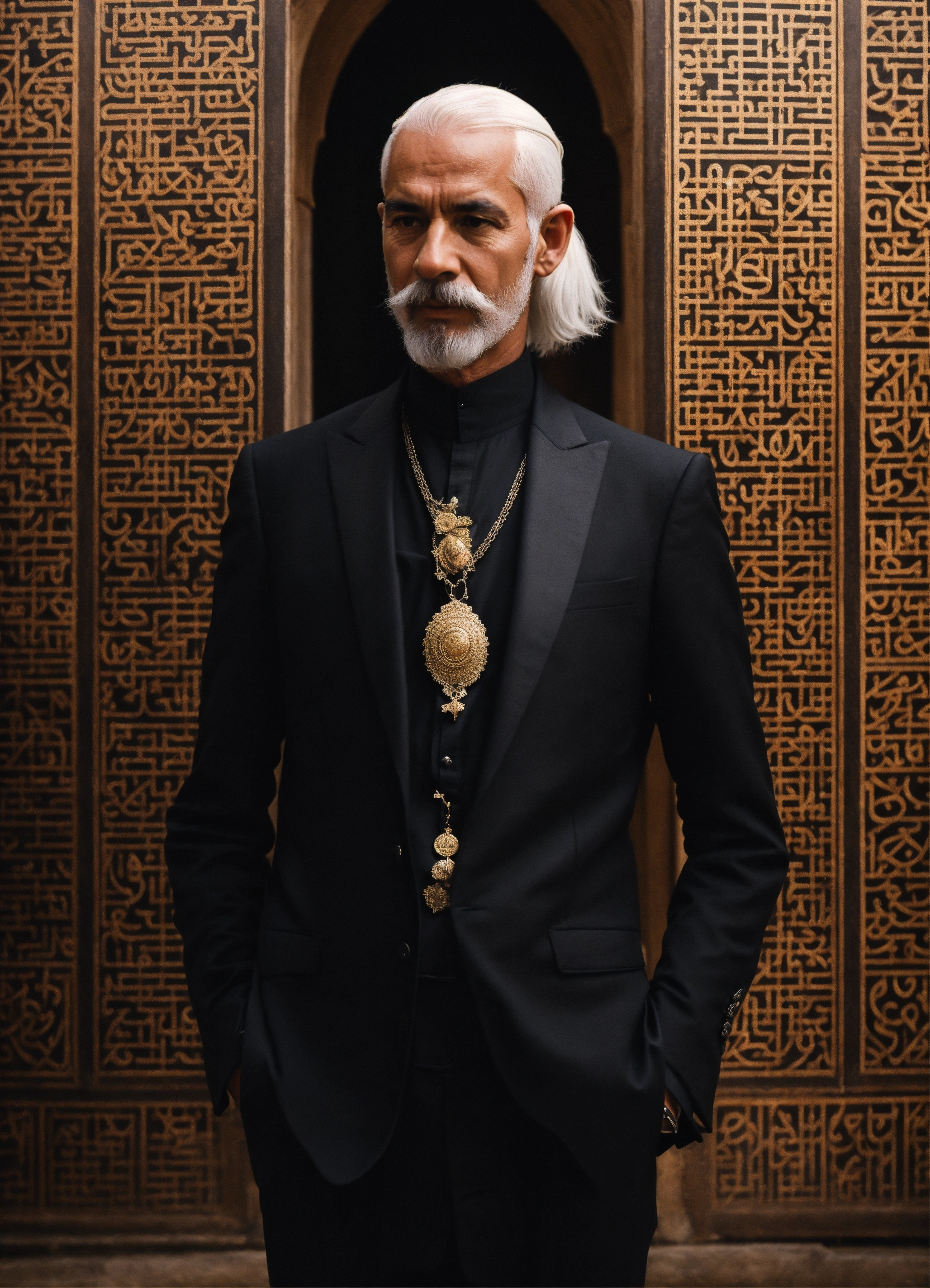 wearing black suit