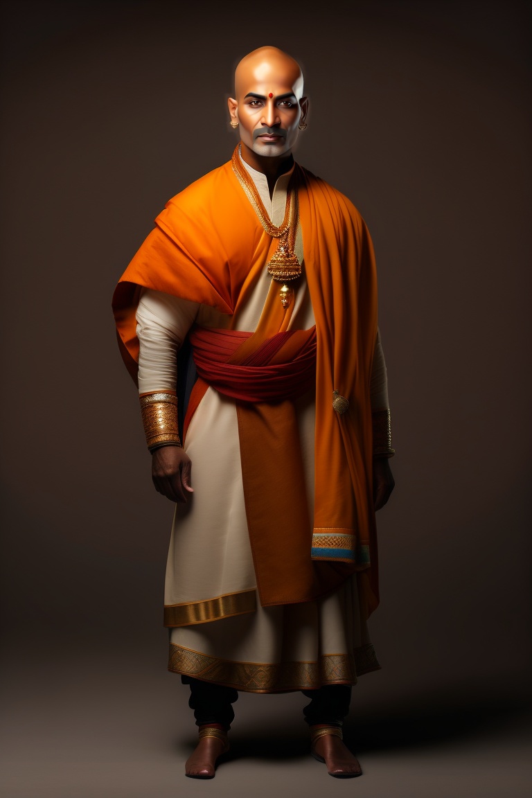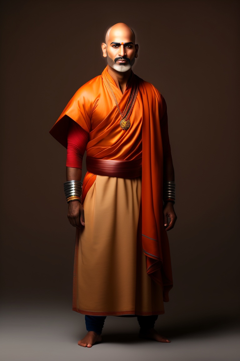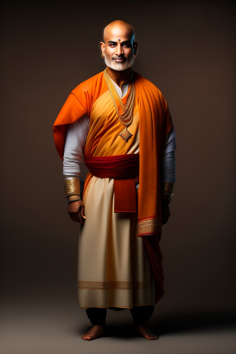 Human indian male 50 years old, monk, shaved hair, bald, medieval humble clothing, bold look facing frontside, dark background, round face shape, indian look