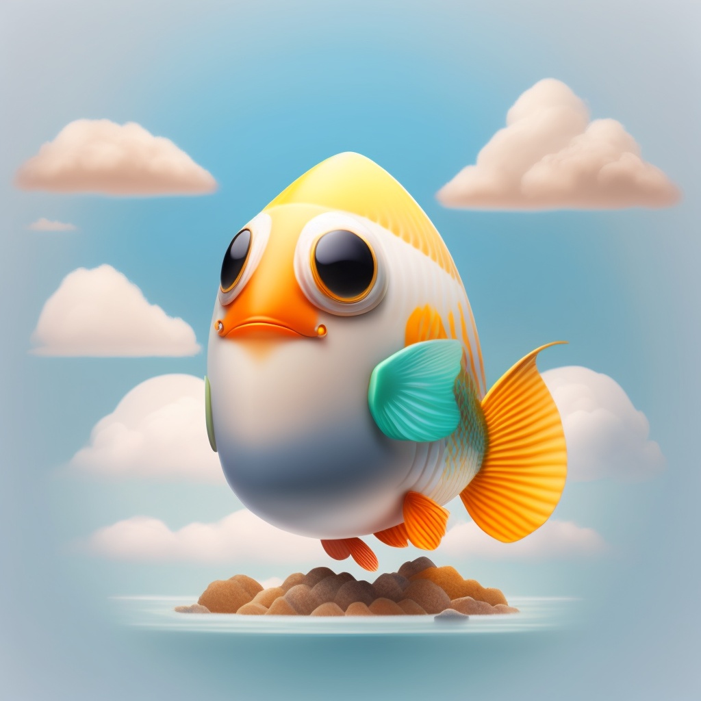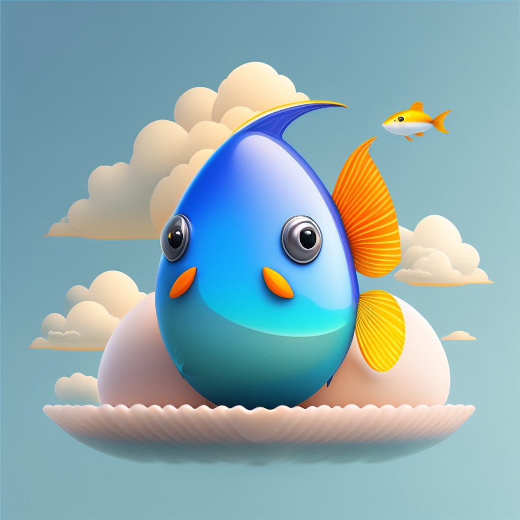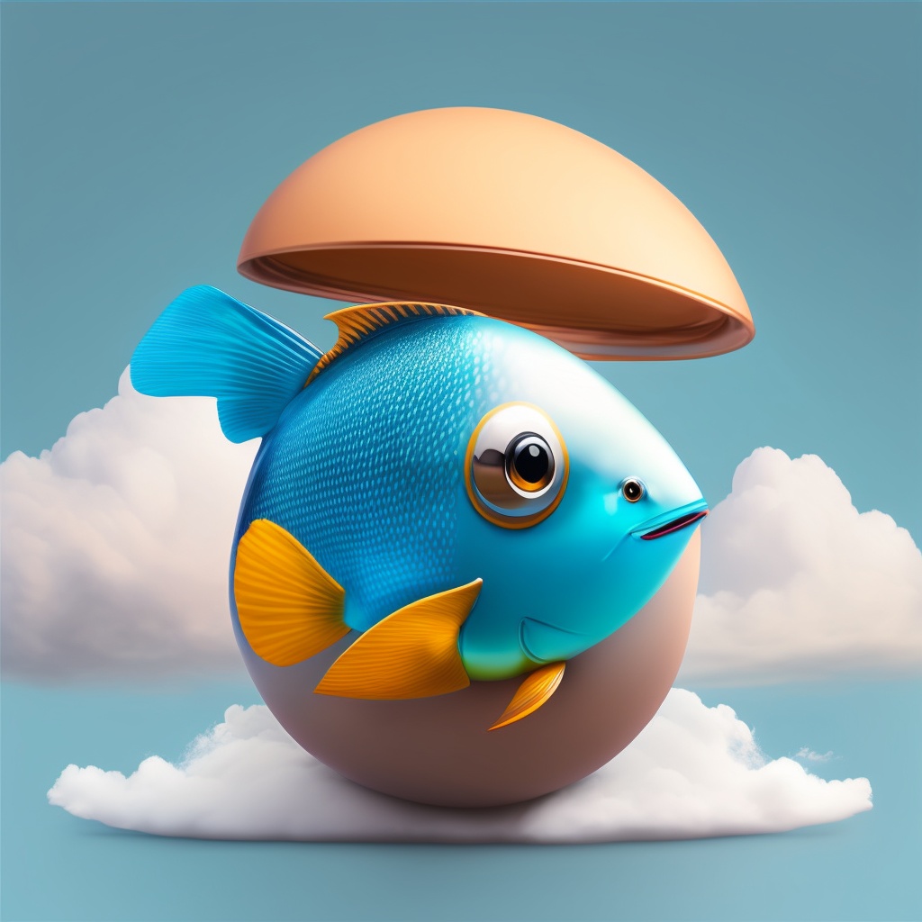Fish, drawing, sketching, egg fish, egg with fish head, illustration, fish head on front of egg, on clouds