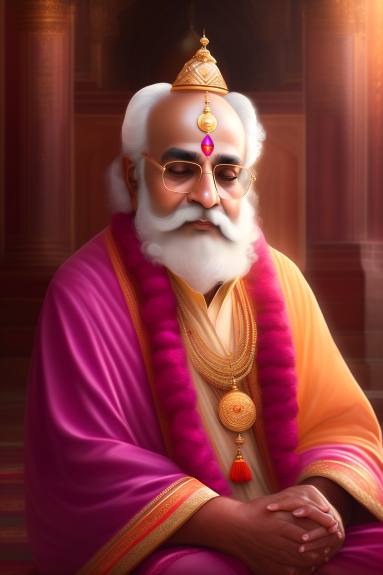 "spiritual resonance unveiled: conjure the ai image of premanand ji maharaj, a beacon of devotion and wisdom."