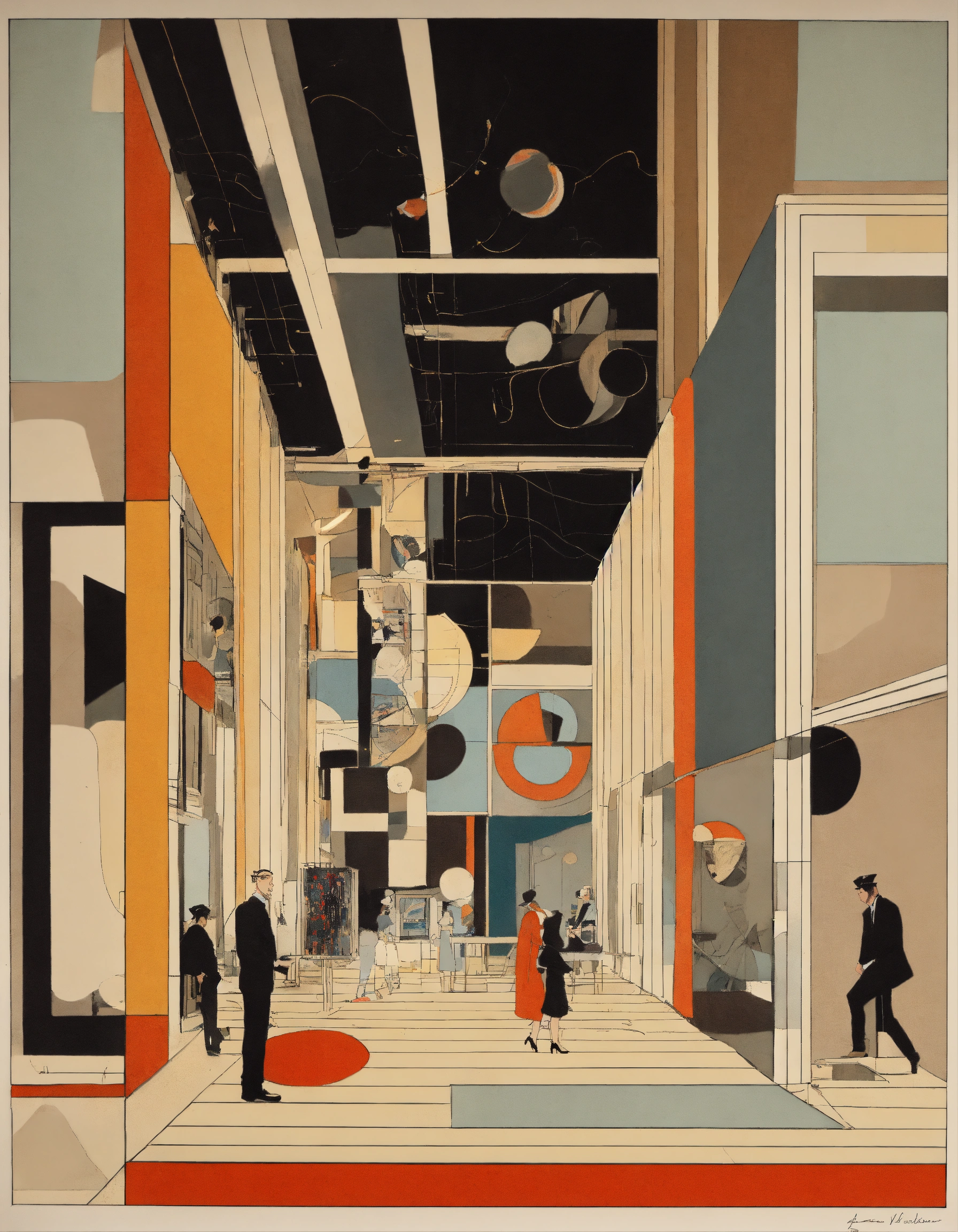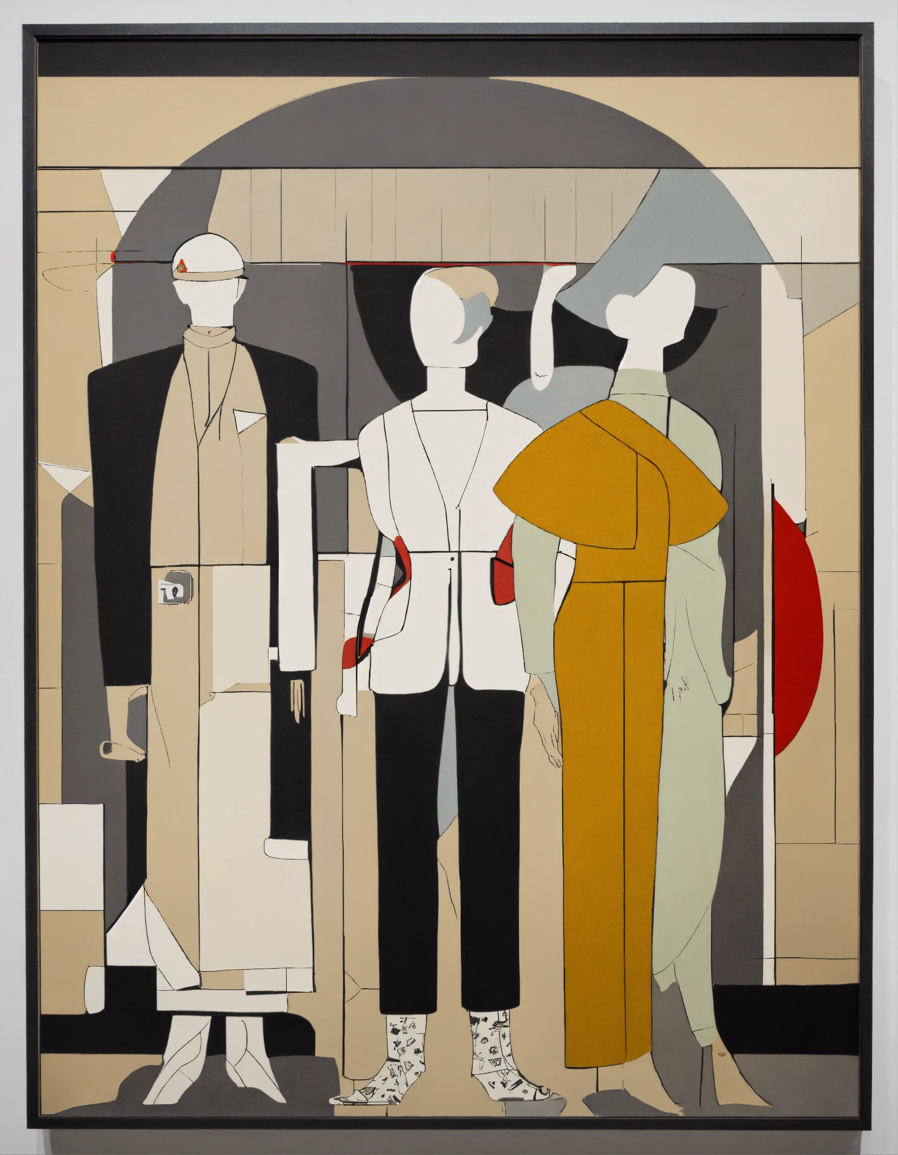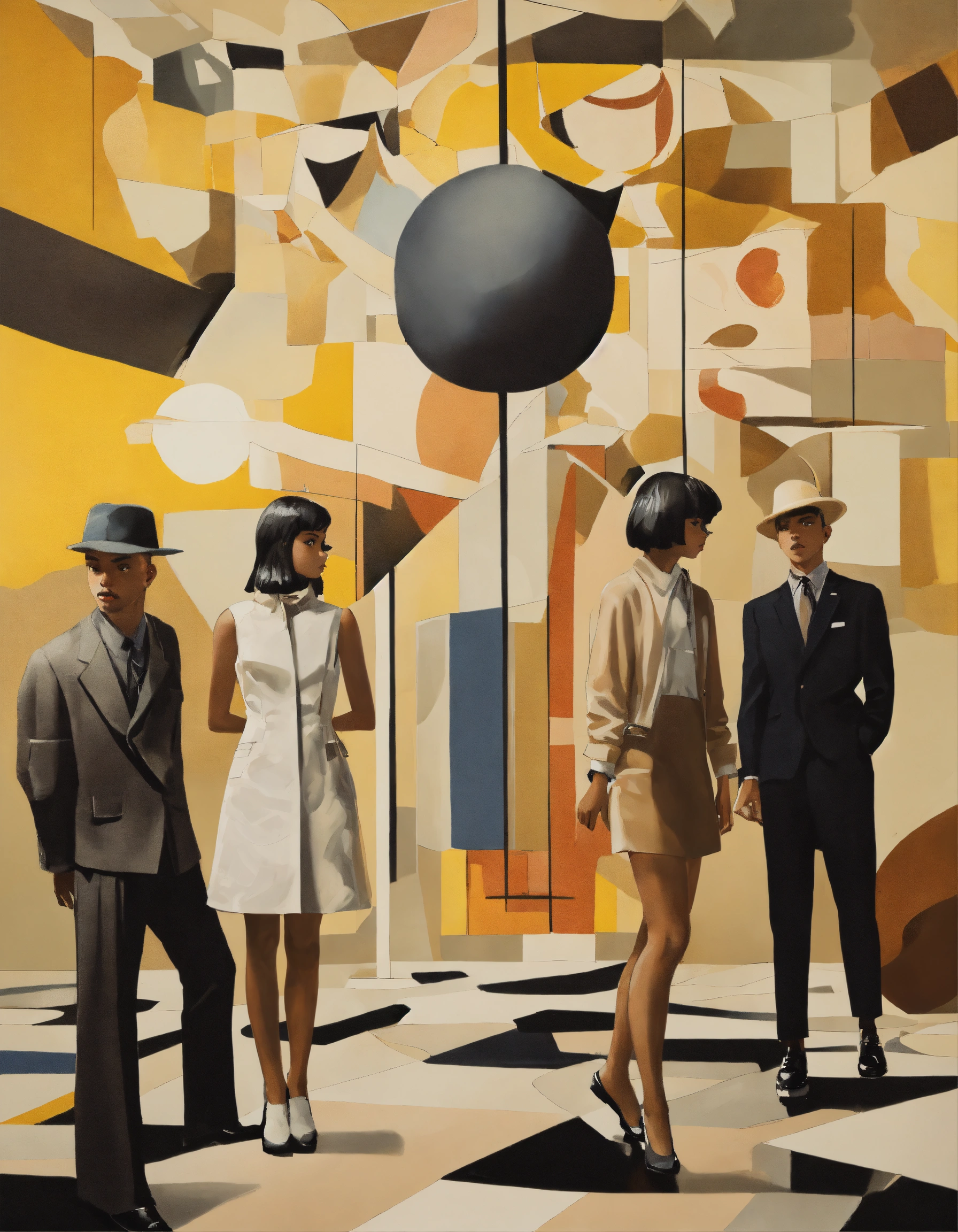 Bauhaus minimal painting, perspective shift structures, stellated ((cartooned)) fine artwork in frame, canvas lettering|figurine surreal amalgamation of limbs, dynamic dancing flow, drawing masterpiece, illustration of black jetsons, boondocks, dream model chola american, pinup, neutral structure and overlap-sheen, cartoon futuristic, (french), twins photo of mixed and matched outfits, minimalism collaged selects, nigo human made, isolated-white-cubic space creole, slate beige black, ink|smoke, surprise highlights, monochrome, sfmoma, hyperspective playboy-funnies, “design rules everything around me”