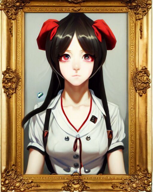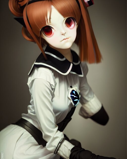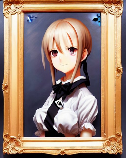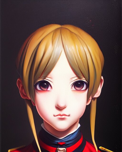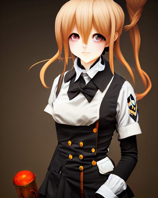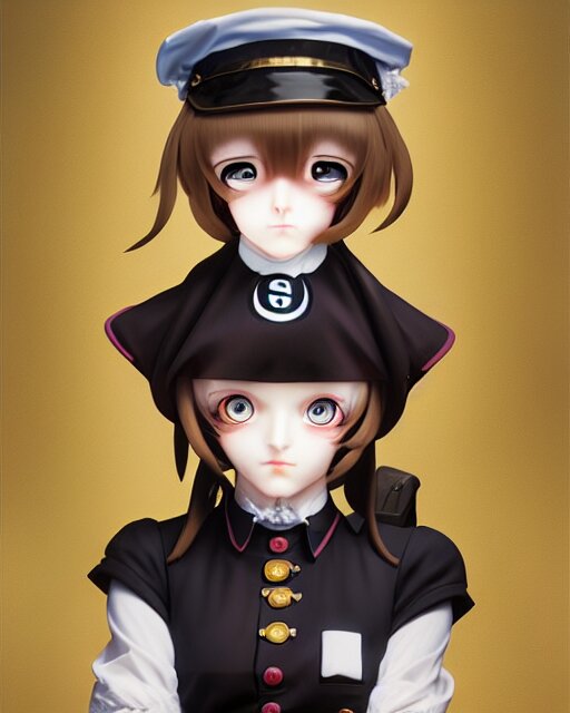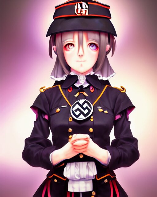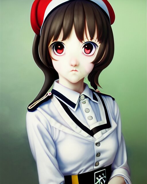 An oil painting of baroque cute face character, anime girl, nazi ss secret police maid, soft studio light by rutkowski, makoto sinkai and wlop