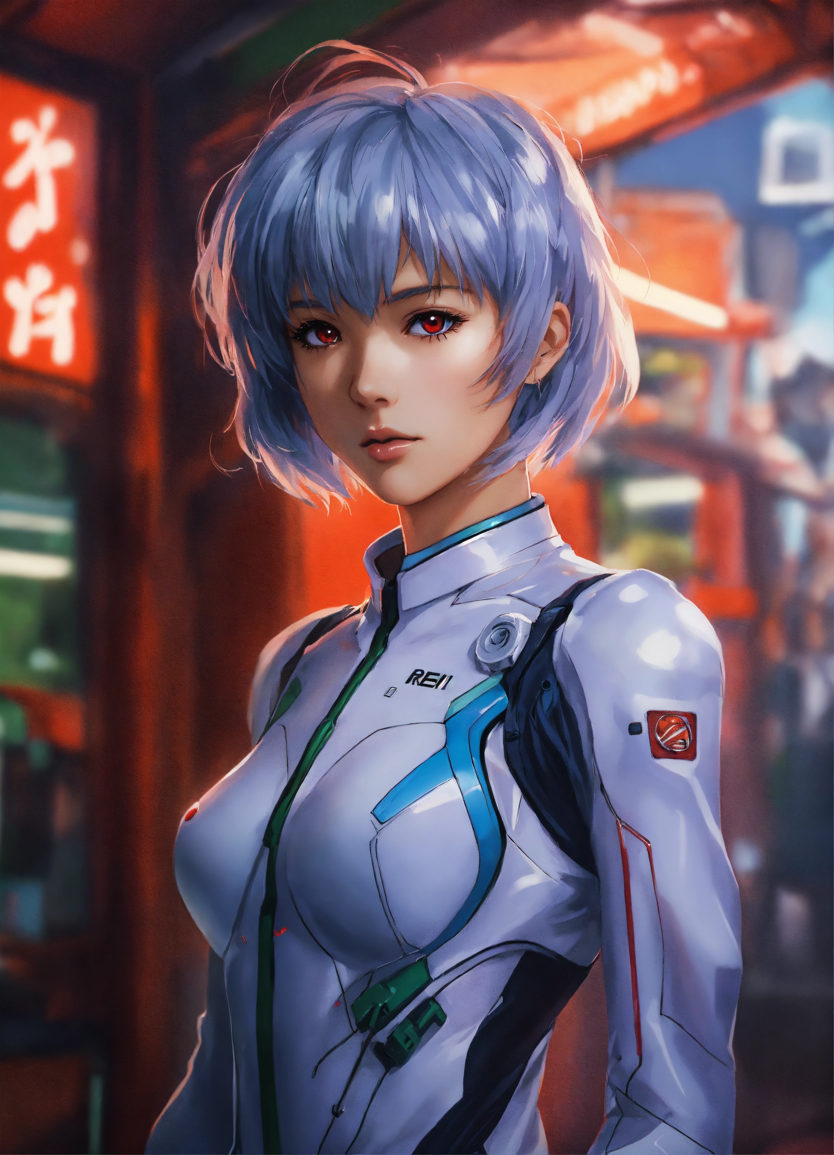 Stunning anime wallpaper illustration of rei ayanami from neon genesis evangelion, detailed scene, stunning details, trending on artstation, ray-traced environment, vintage 90's anime, ray-tracing, by artgerm