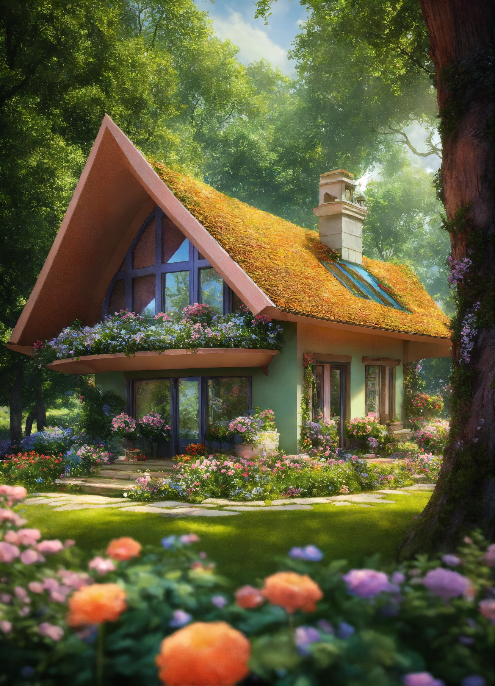 Large elegant futuristic cottage