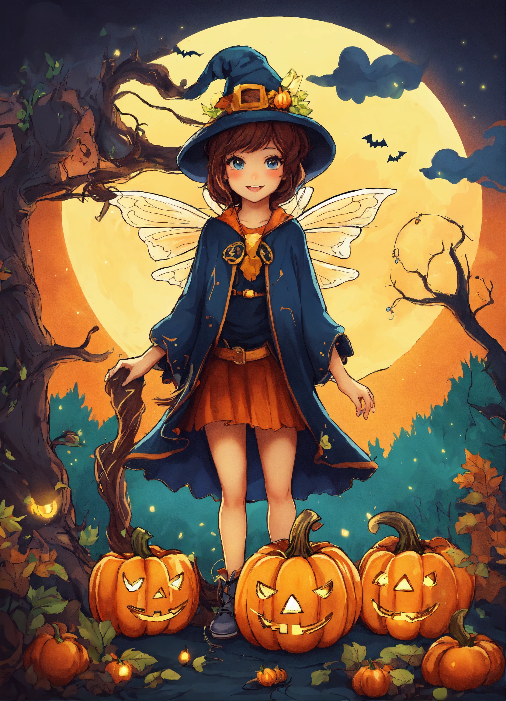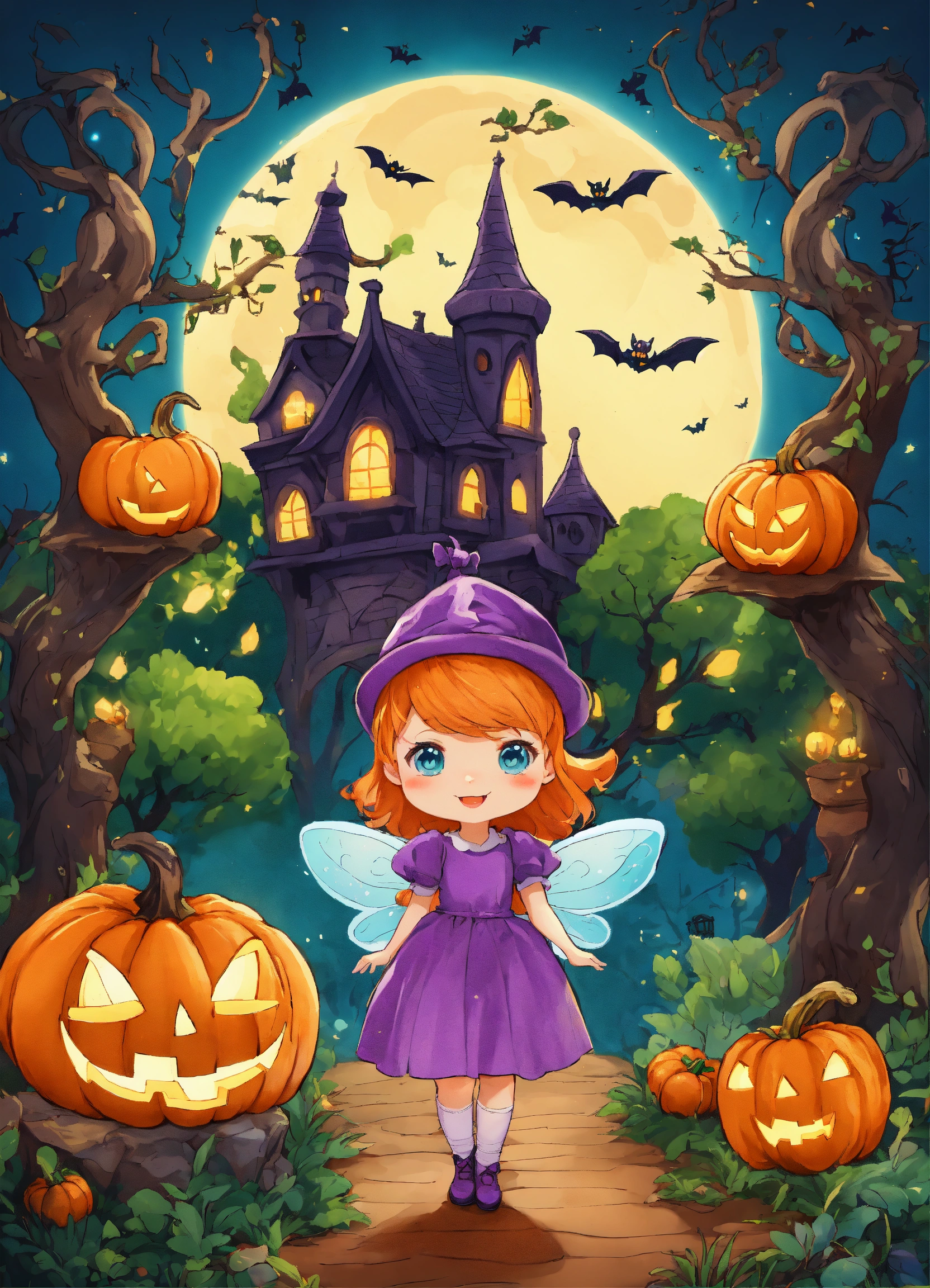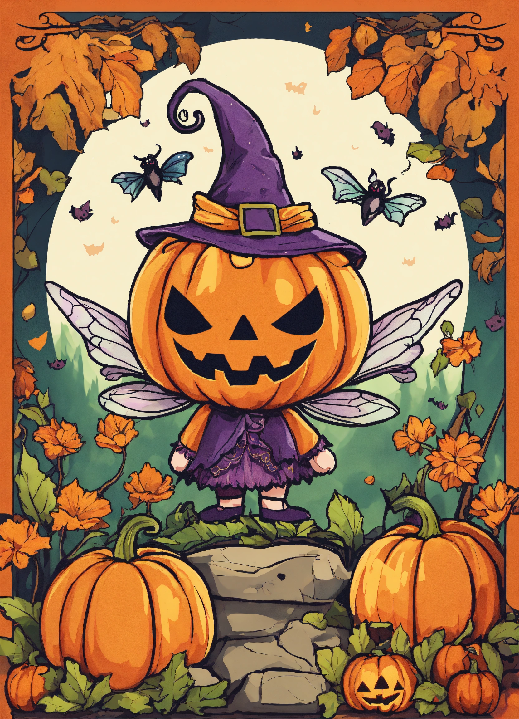 Generate a cute halloween fairy tales stunning coverpage illustration, 4k resolution, cartoon-sticker style with clear lines on a pure white background suitable for a children's coloring book.