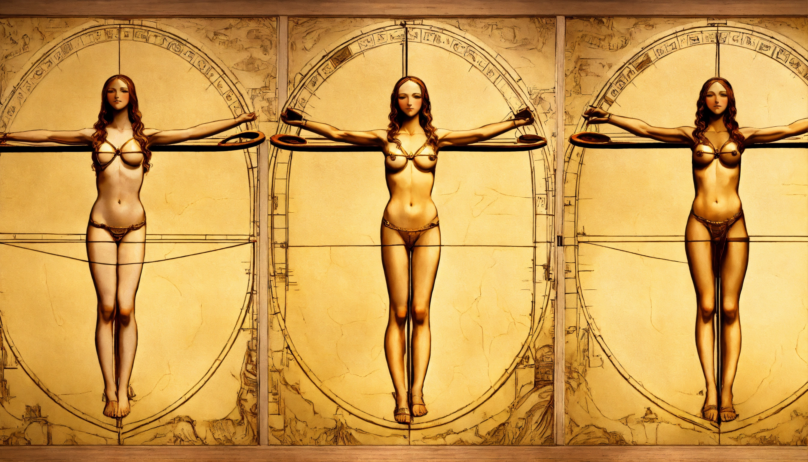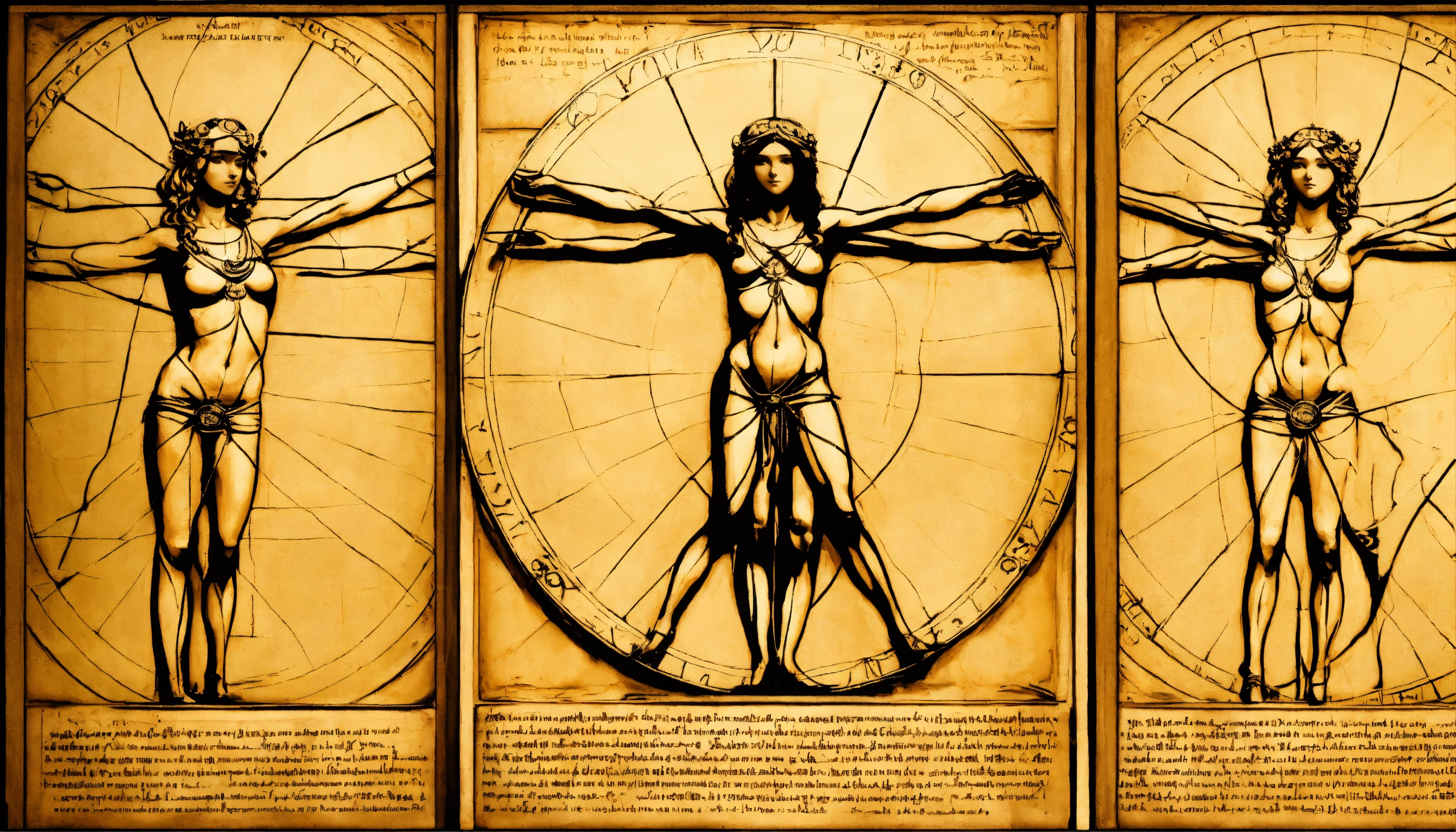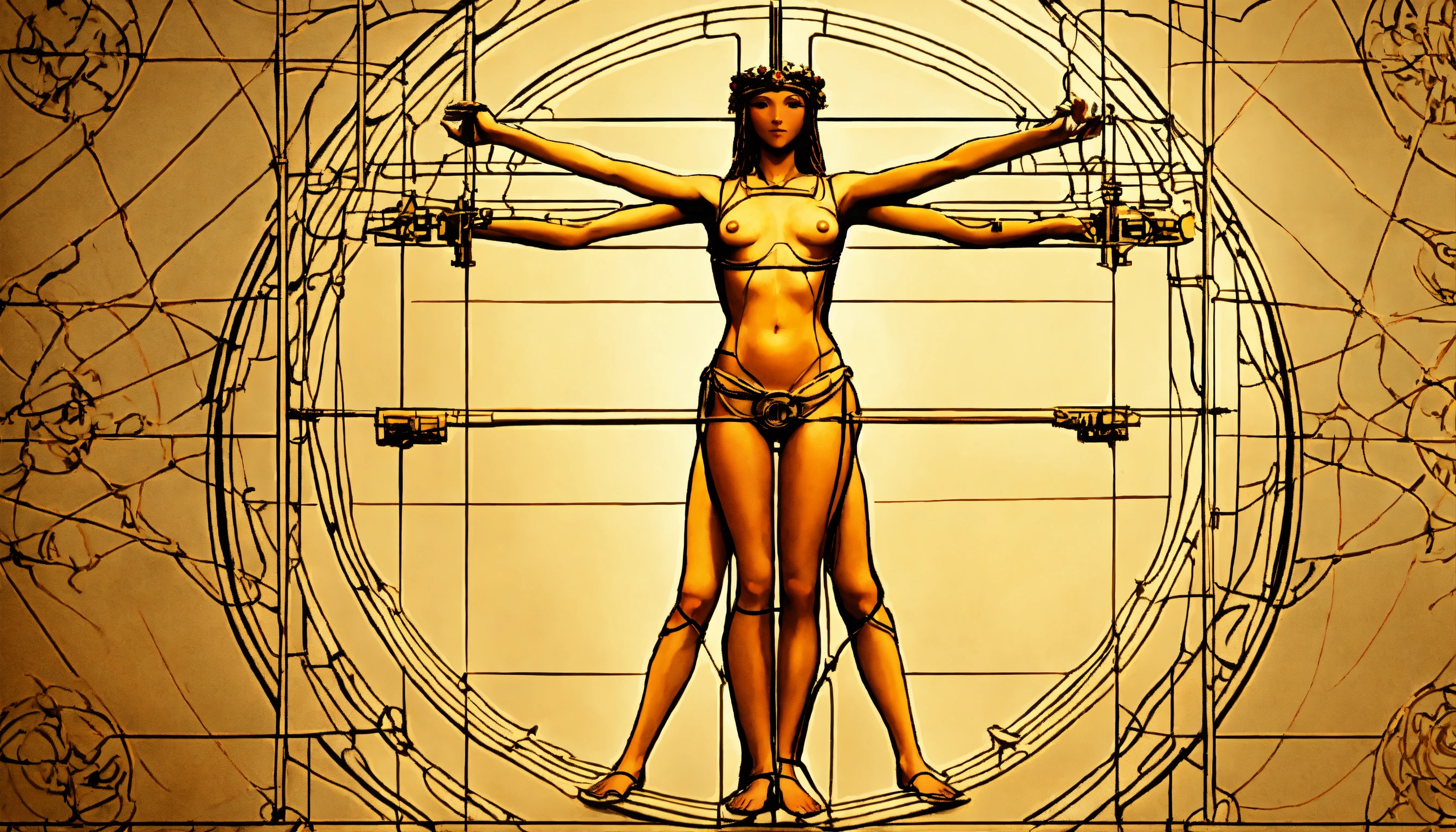 Vitruvian women, leonardo da vinci style, very close to the original but with a woman, lot of details, 8k, detailed body