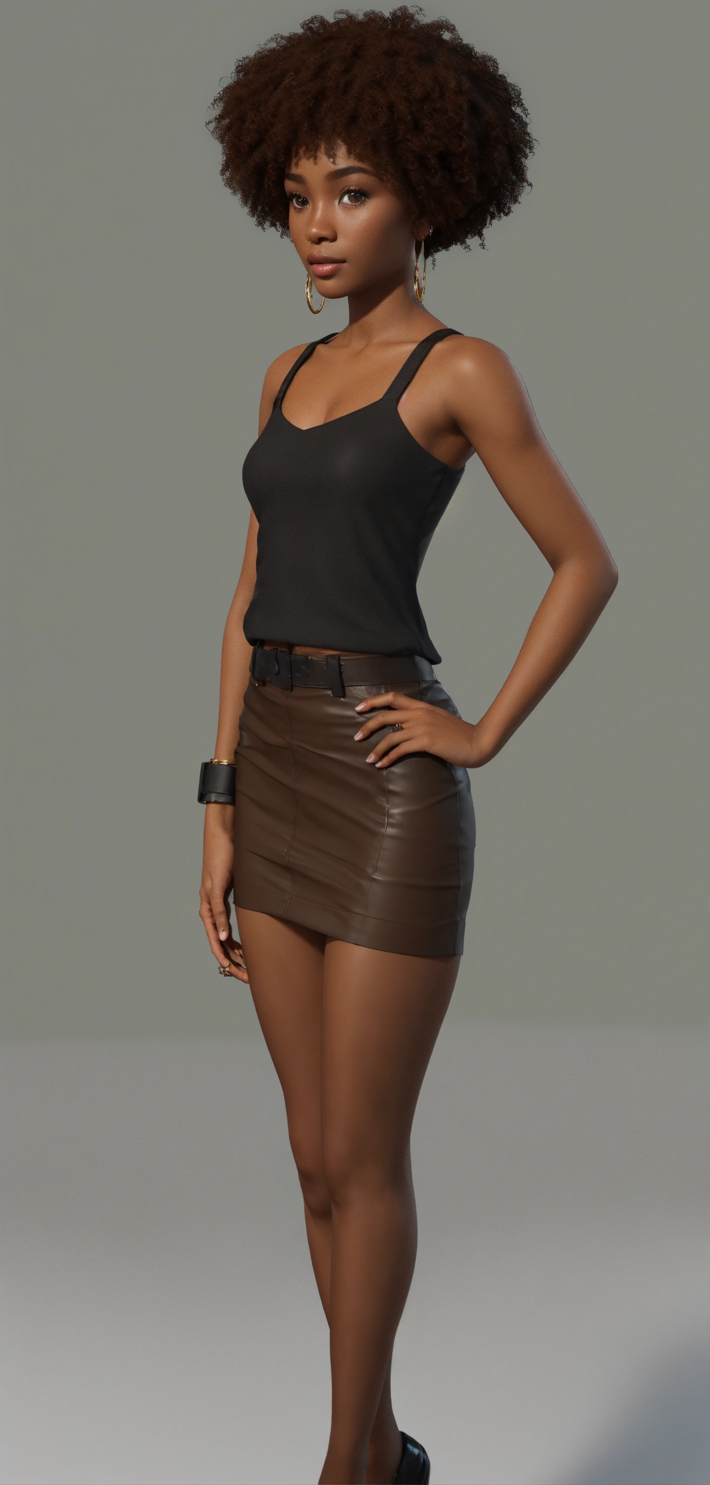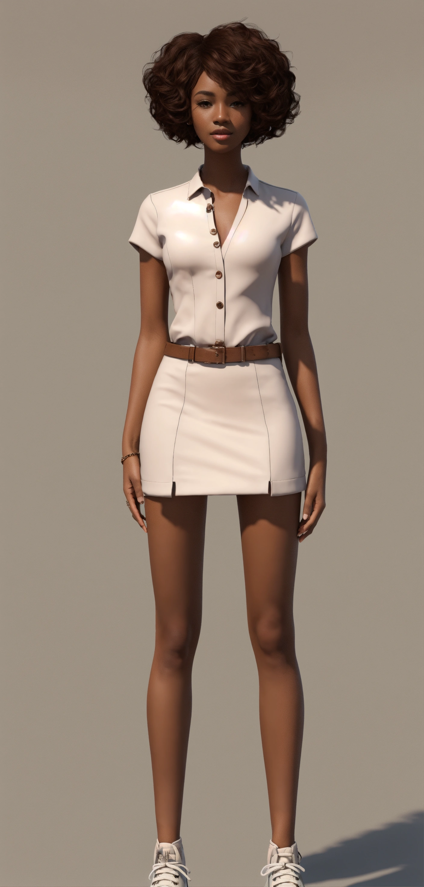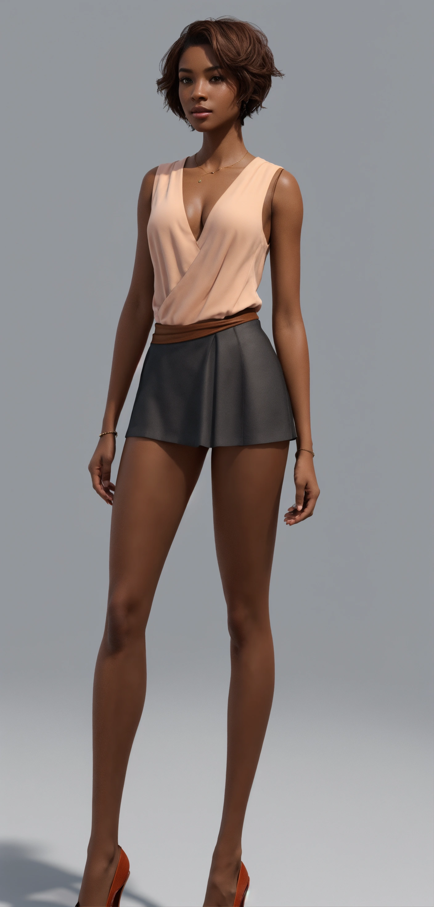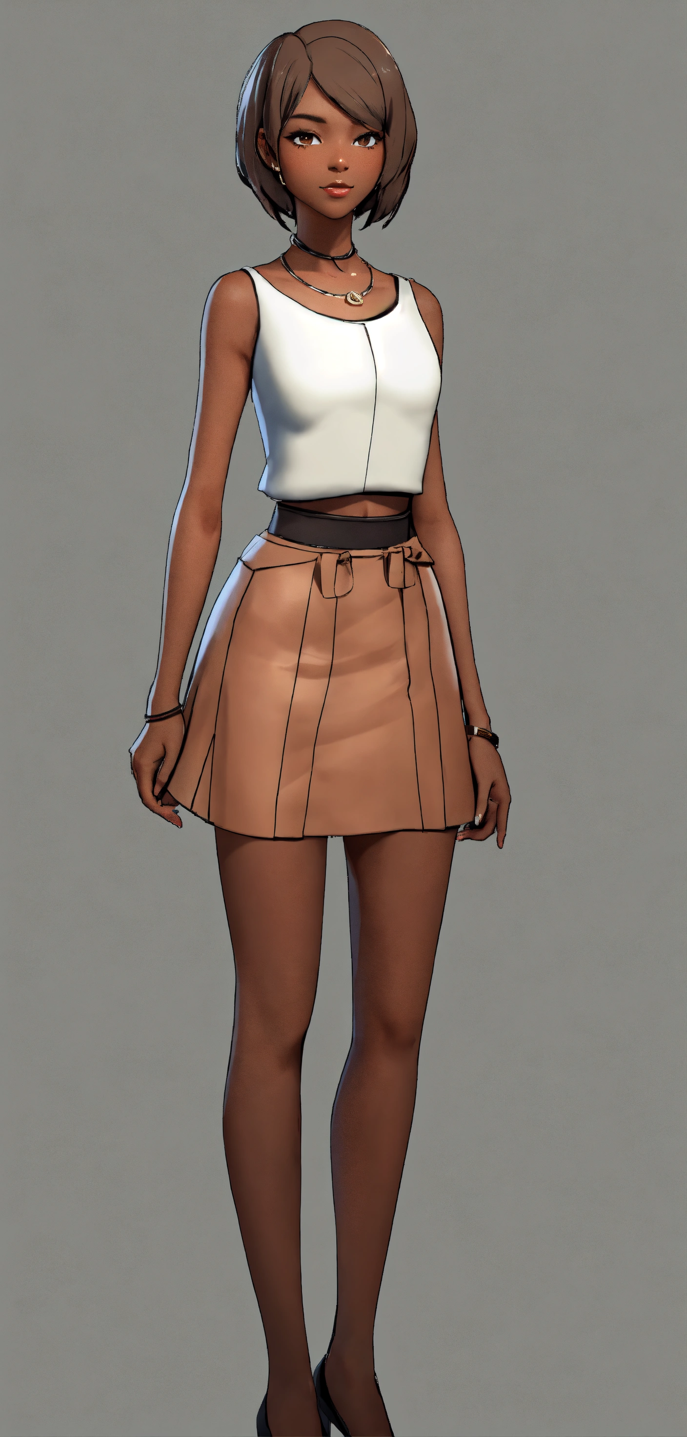 Brown skin, asymmetrical, no shadows, tan skin, gorgeous woman, white background, short hair, standing, facing front. hd, 3((((((((((((show whole body)))))), no shadows, wearing a black mini skirt, full frame of the body 35mm wide angle shot, make image into 3d, coloring book, hd, normal chest, [[[[[[[make a turnaround sheet of image]]]]]]!, ((((((((((((show whole body)))))), no shadows, brown skin, asymmetrical, no shadows, brown skin 4k