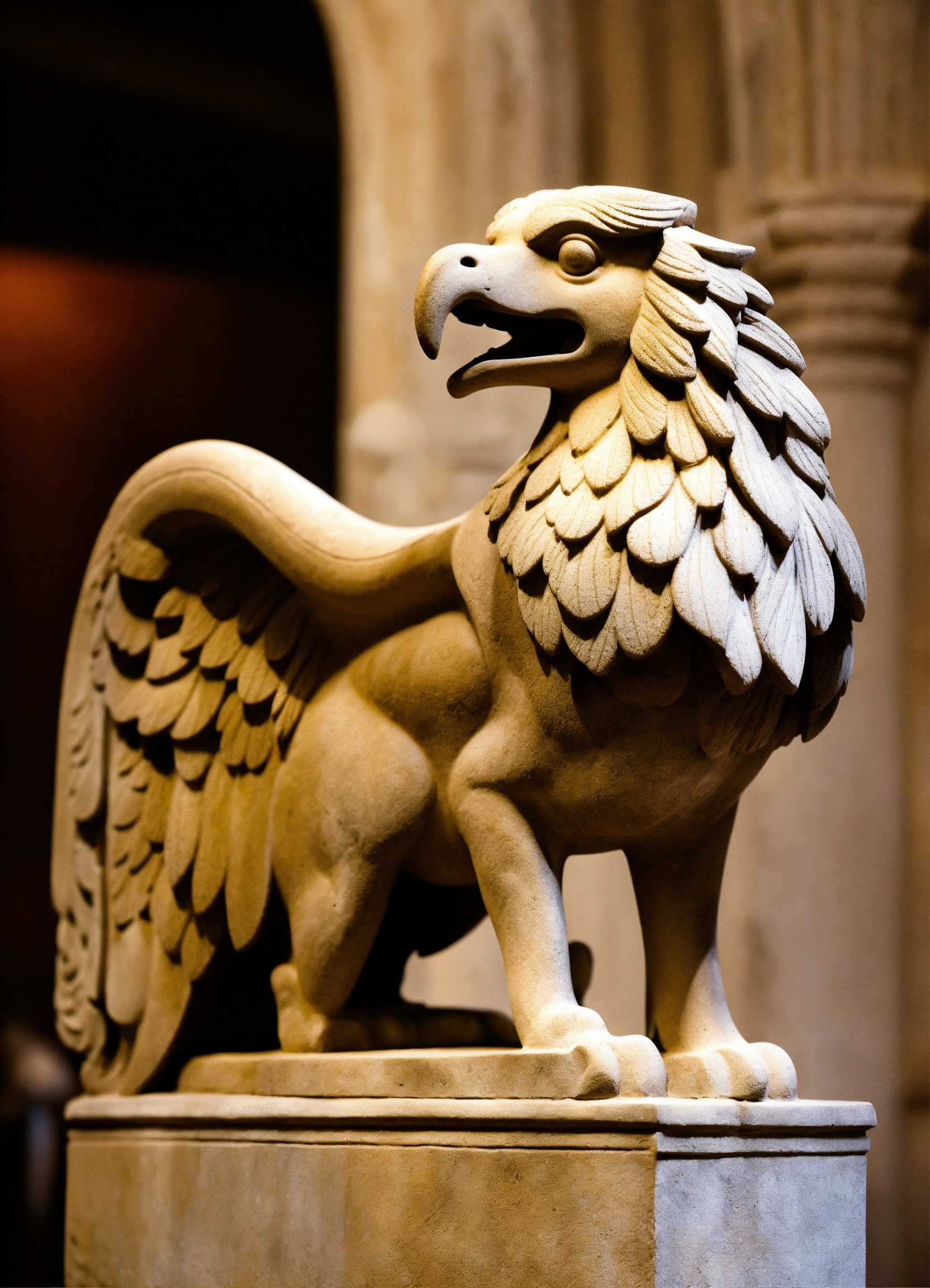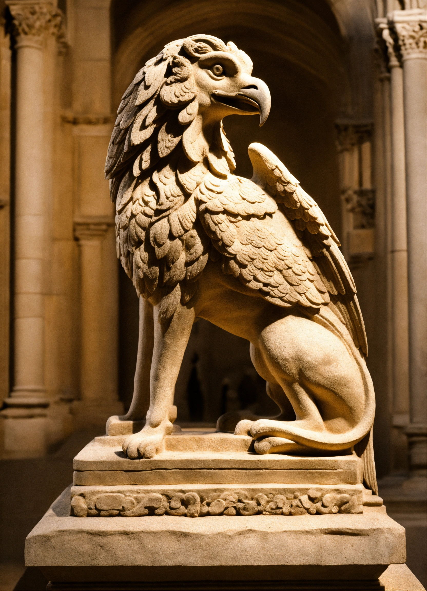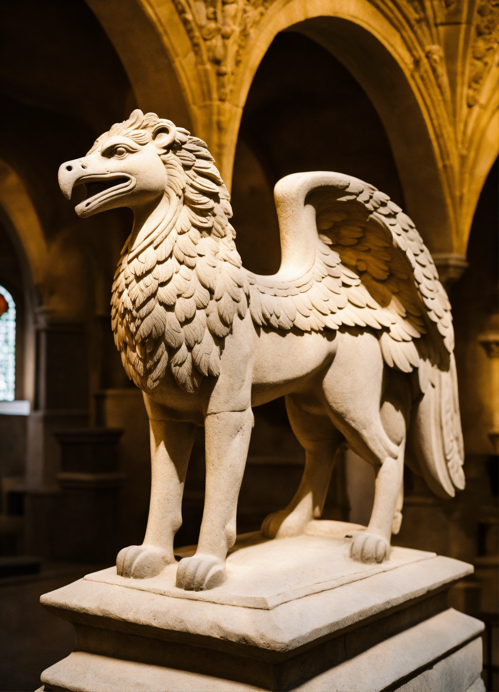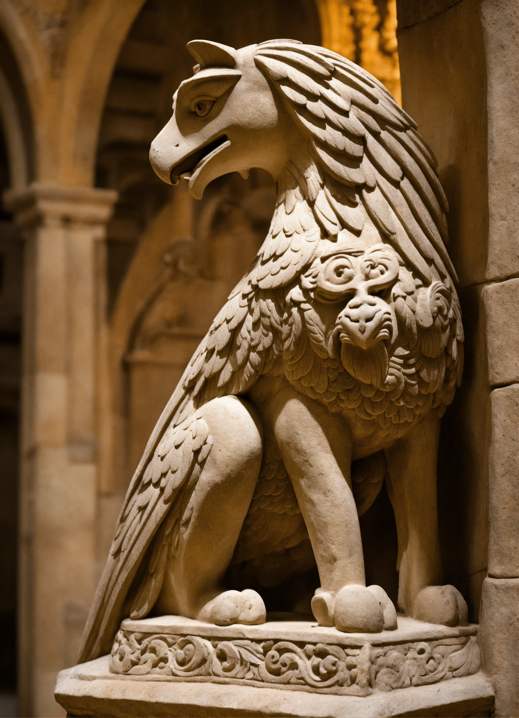 Stone sculpture of a romanesque griffin