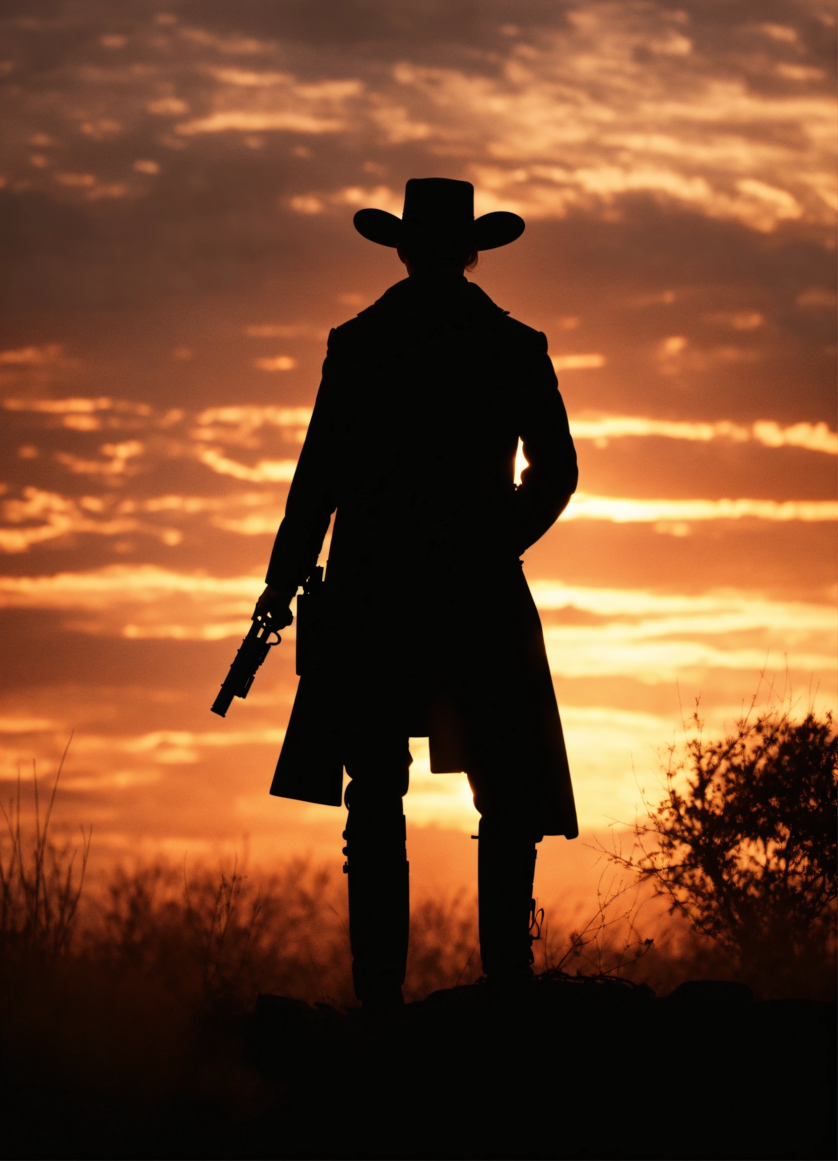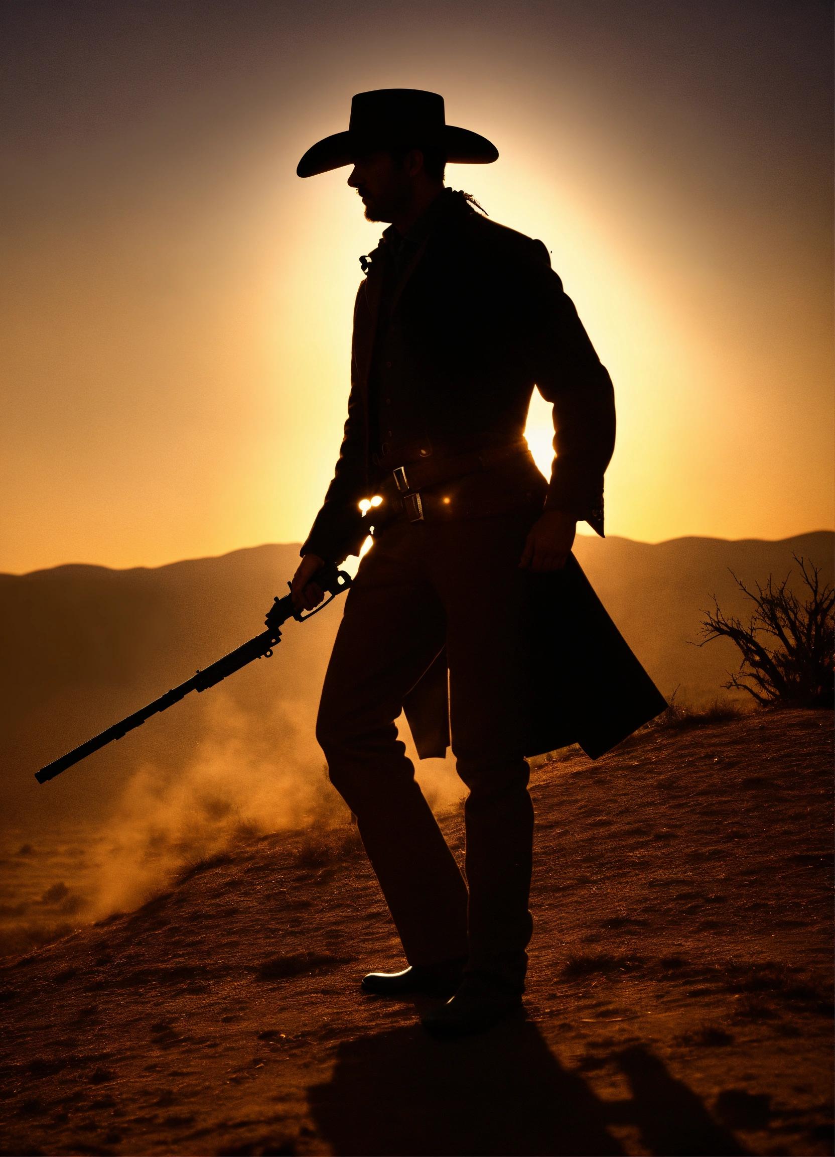 Silhouette of gun slinger from the old west