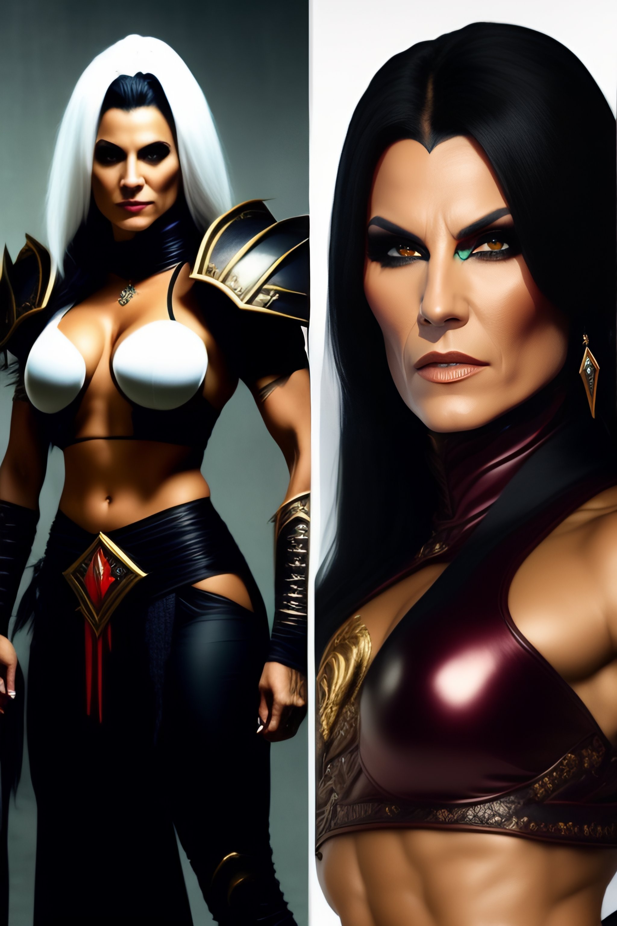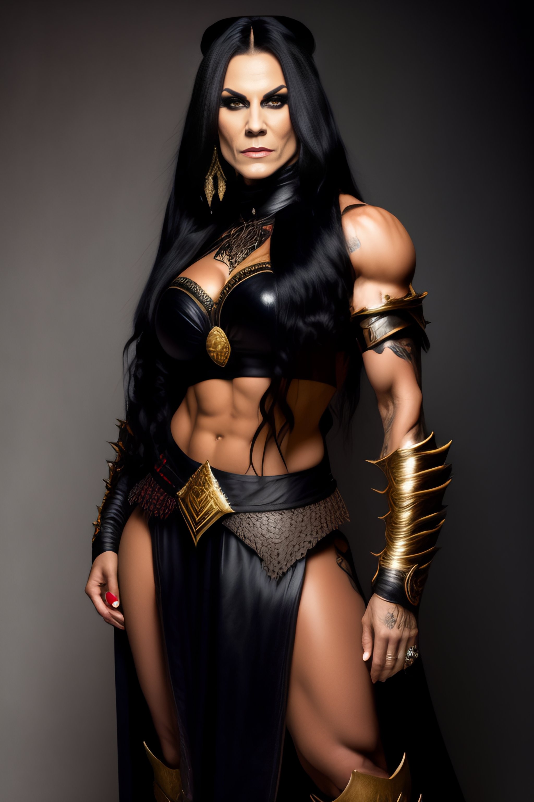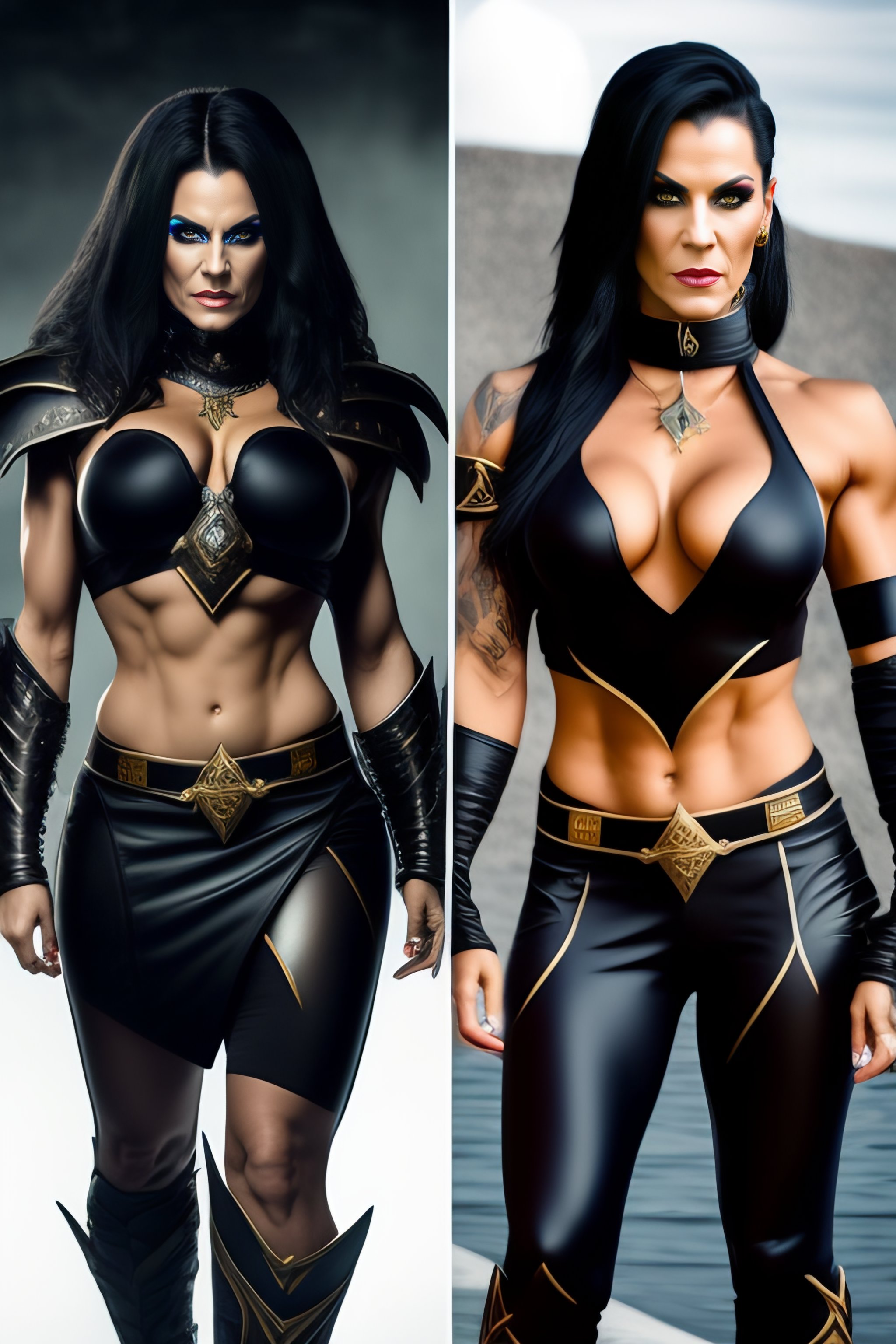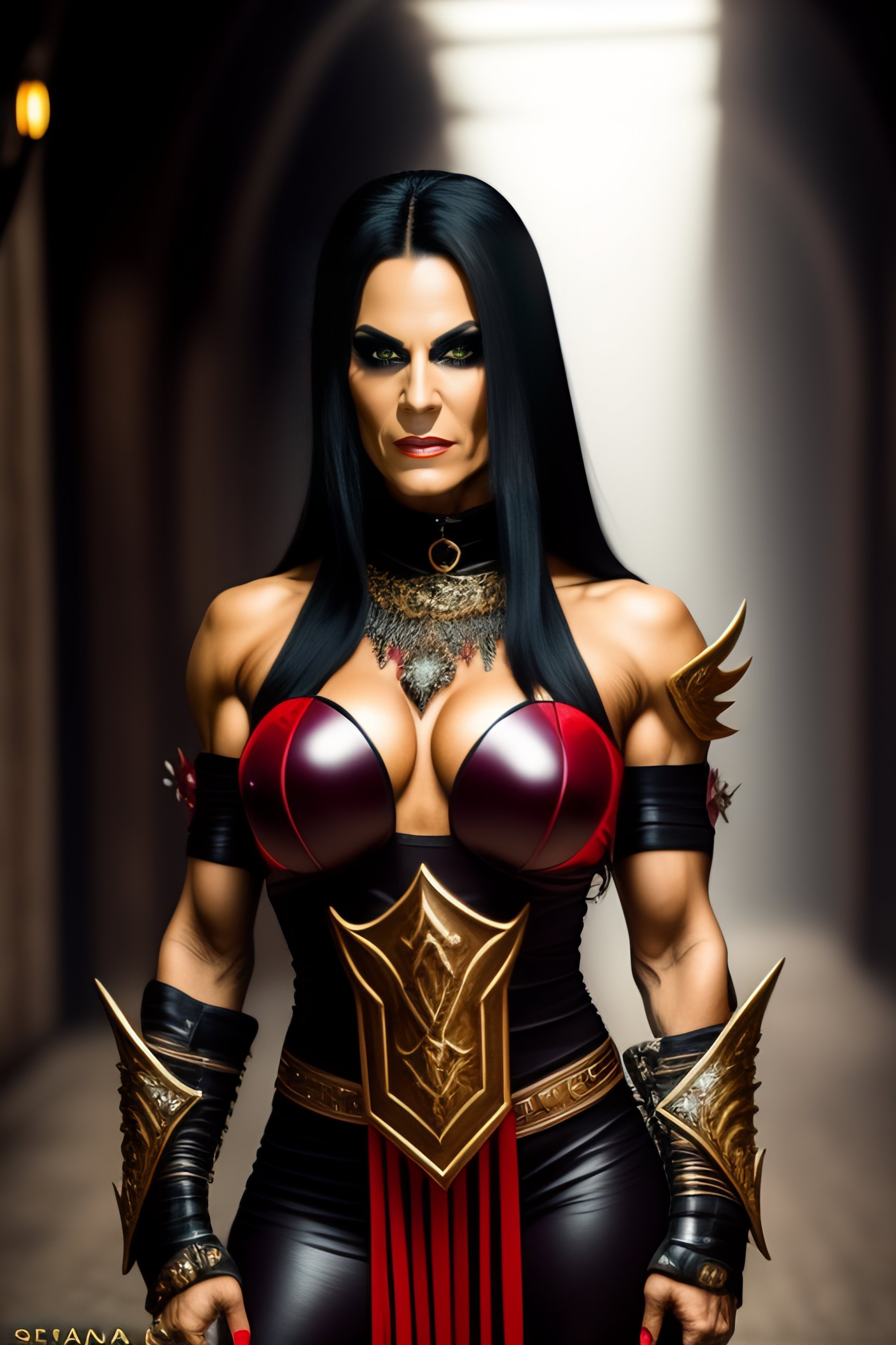 Cristina scabbia, lacuna coil, realistic detailed, mortal kombat shao kahn cosplay, proportional body