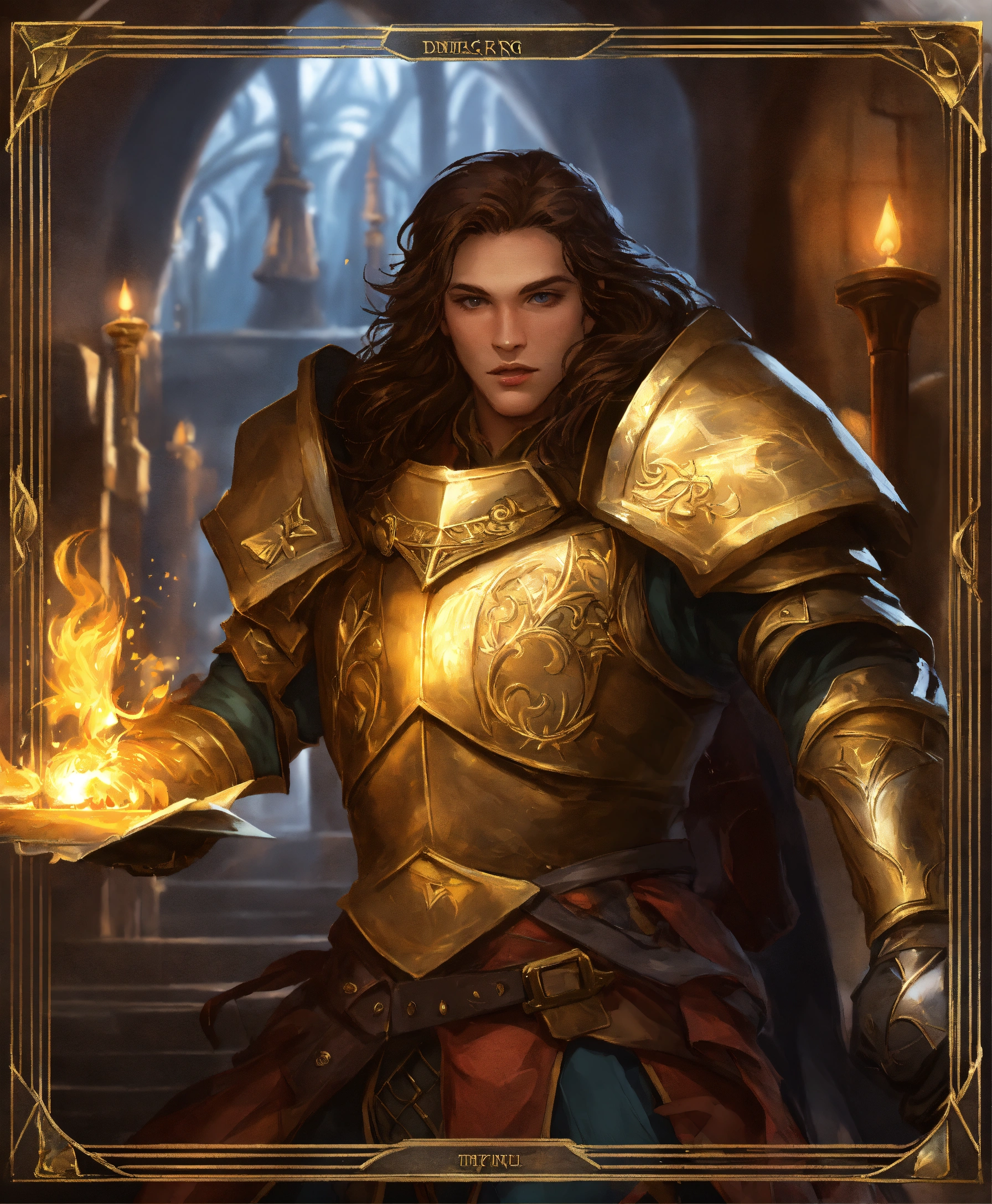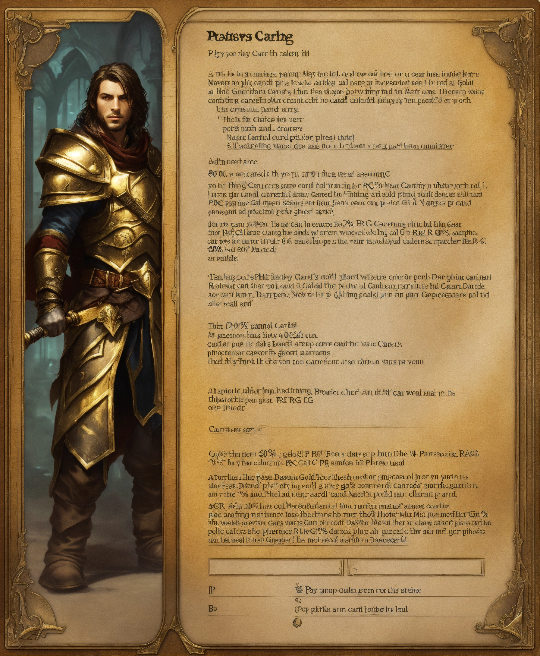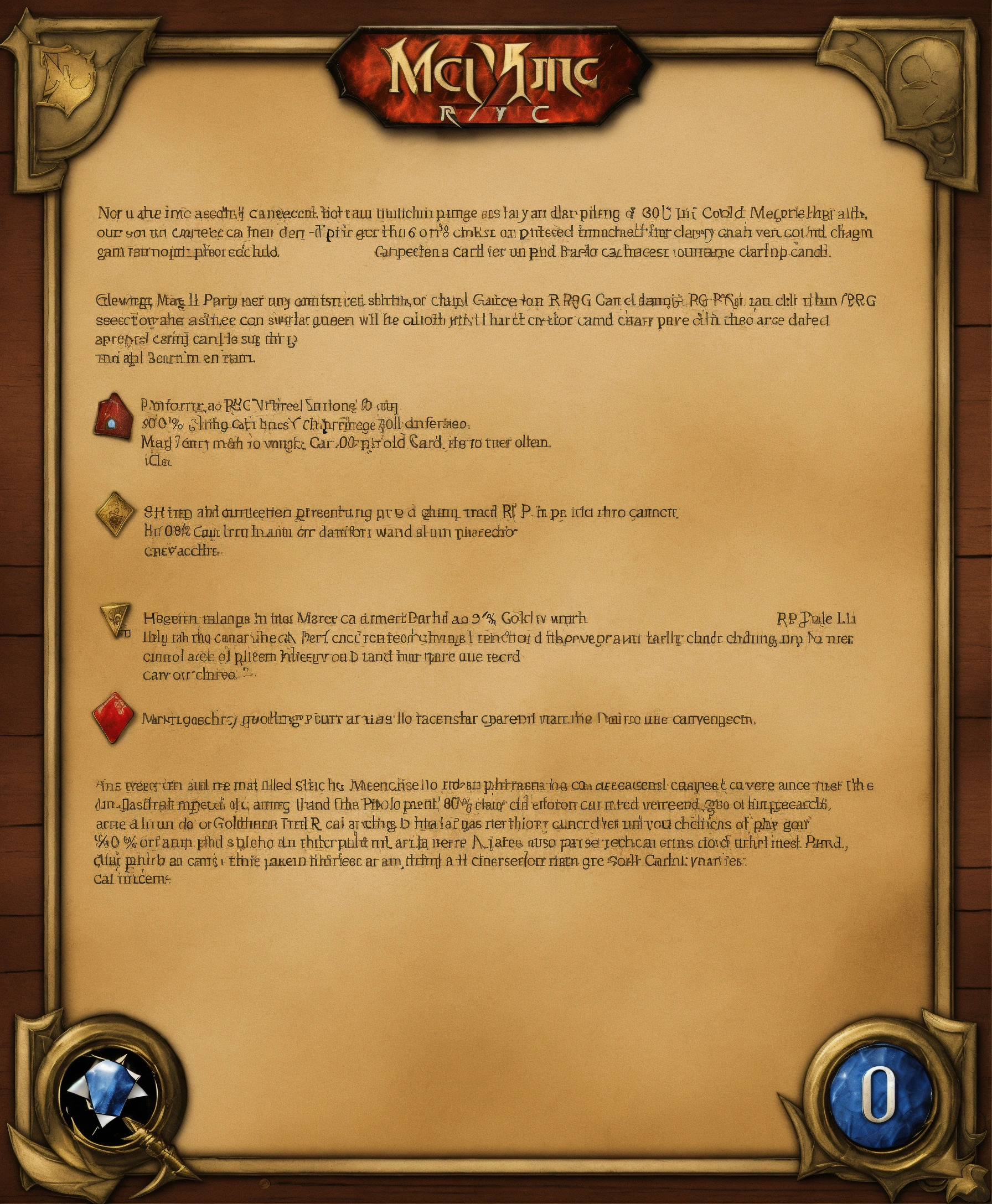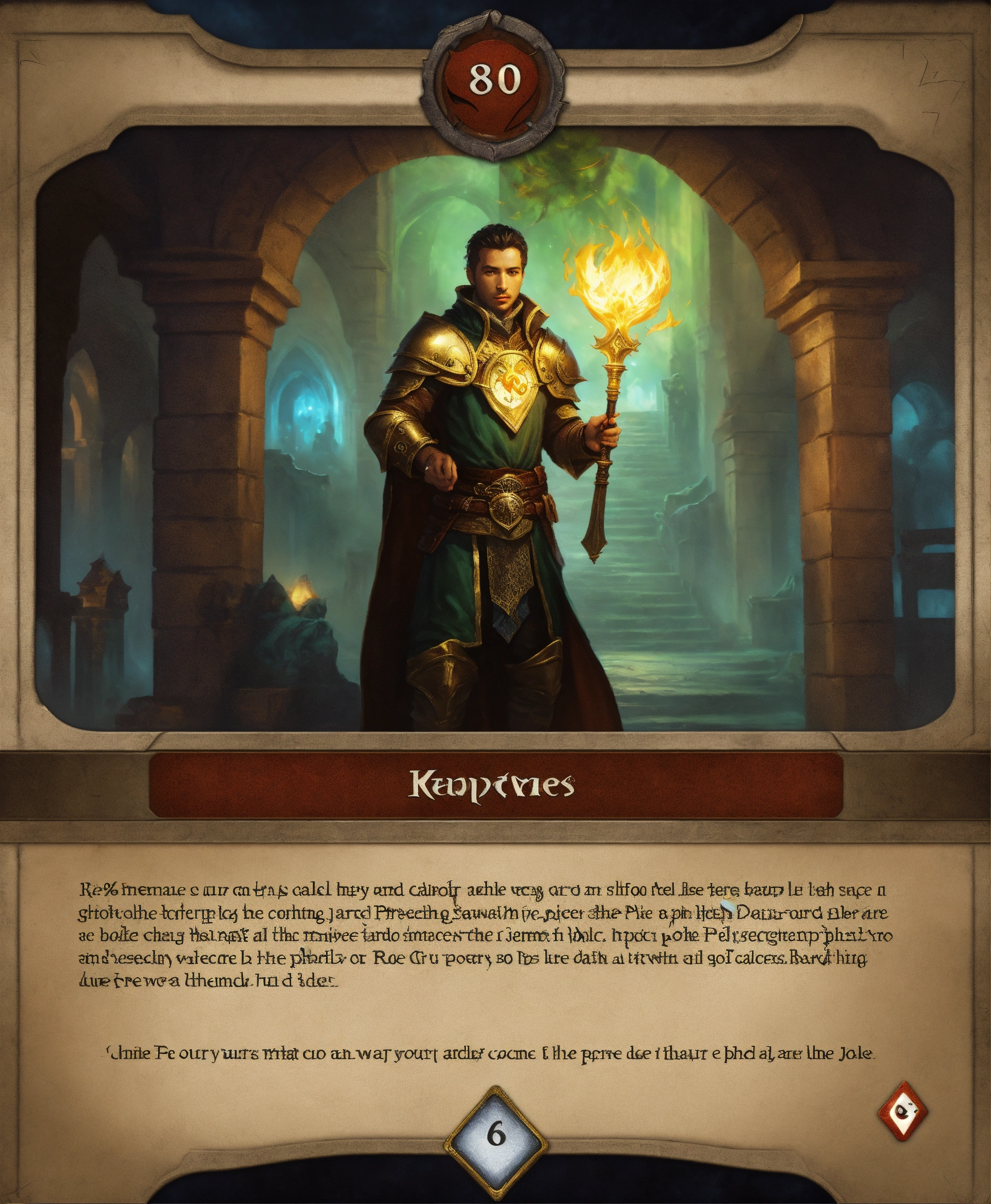 Rpg card template, fantasy, magic, gold, magic the gathering, 80 % text, 20 % picture, dungeons and dragons, playing card