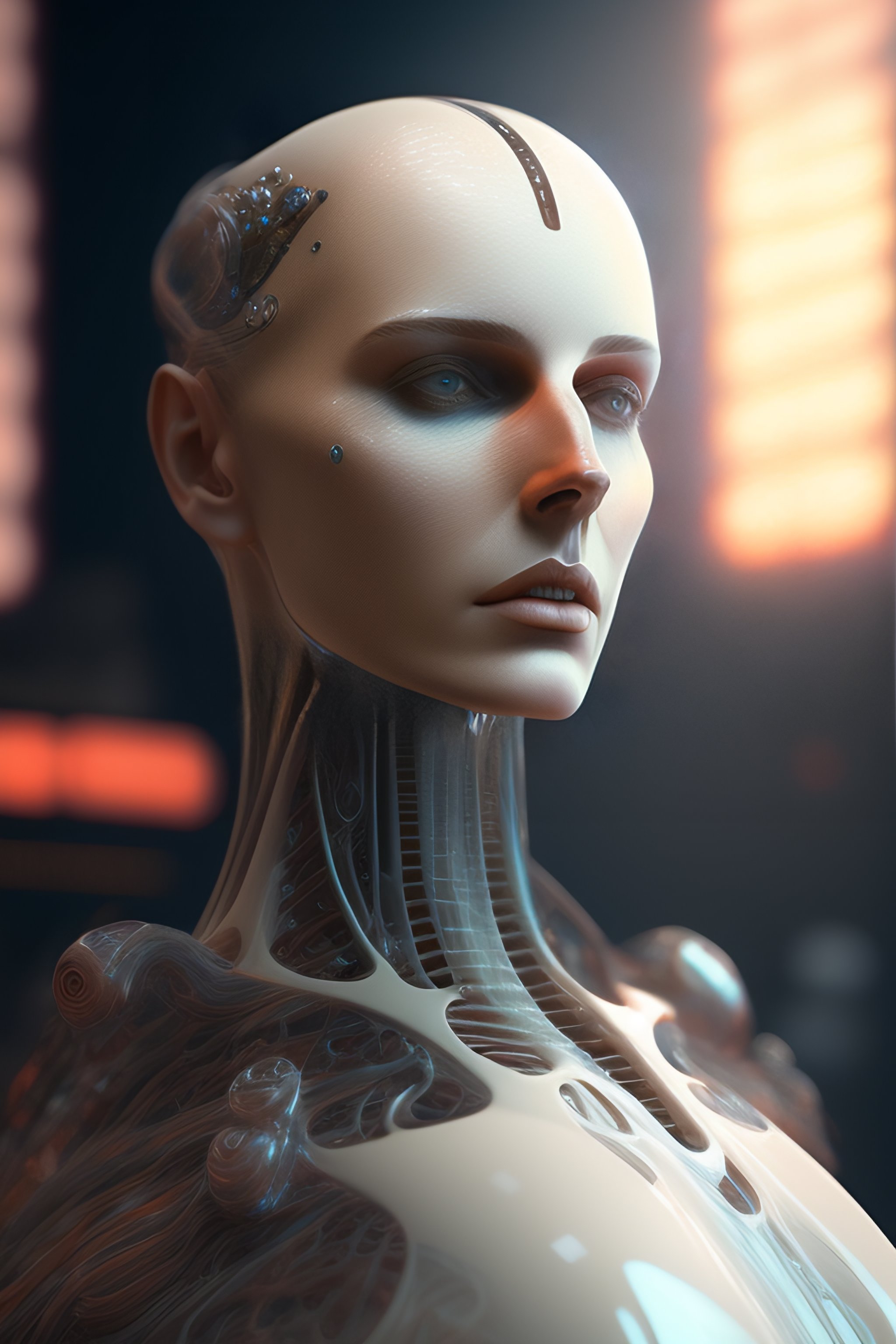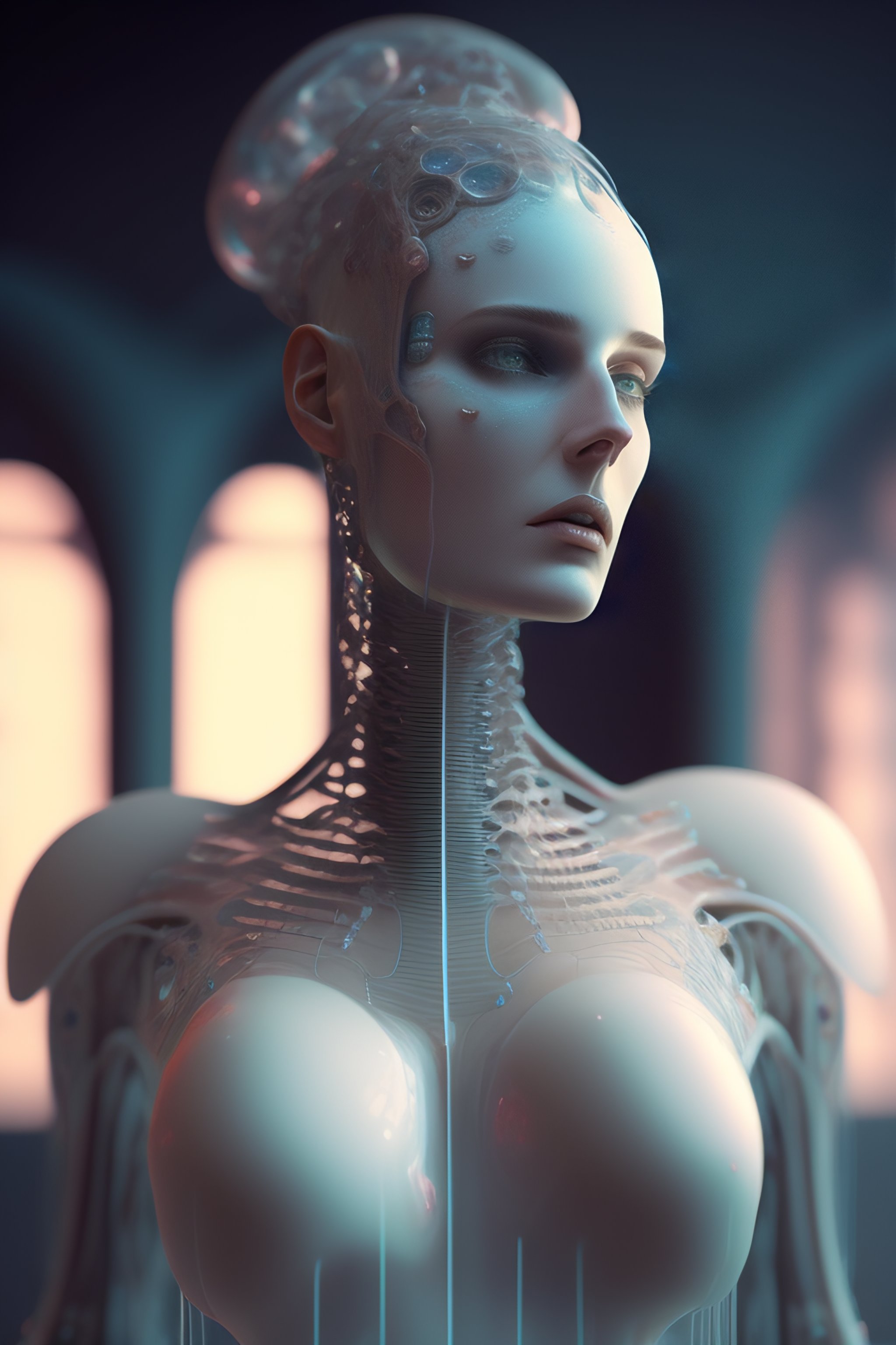 Ai, anthropomorphic cyborg, full body, translucent skin, human face, fake skin, bio-organic, tubes and veins, full view, in a laboratory, trending on artstation, 4k, unreal engine 5, fine details, intricate, uncanny valley, chubby cheeks, unsettling appearance, modern, realistic eyes, medical, clean white, zdzislaw beksinski