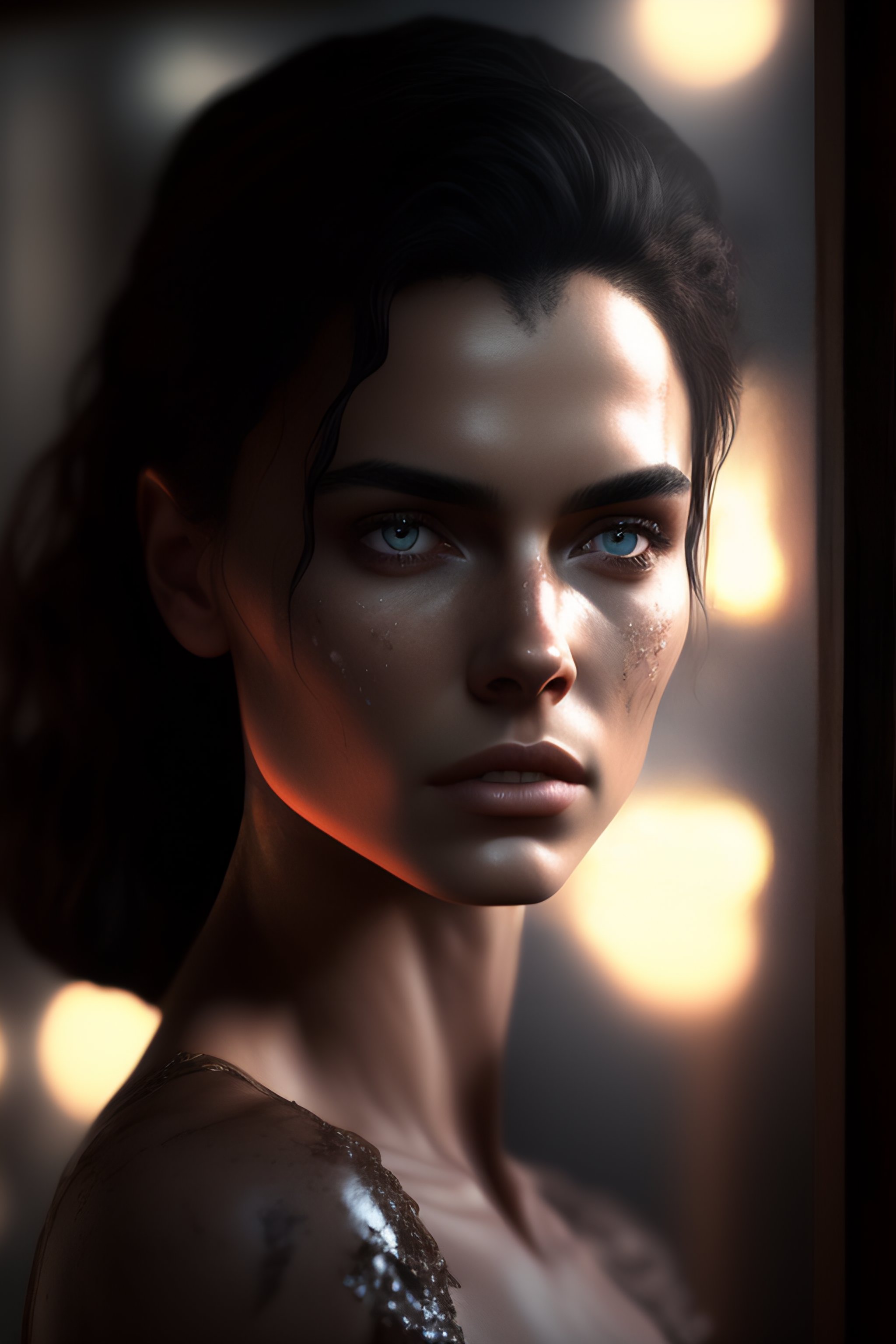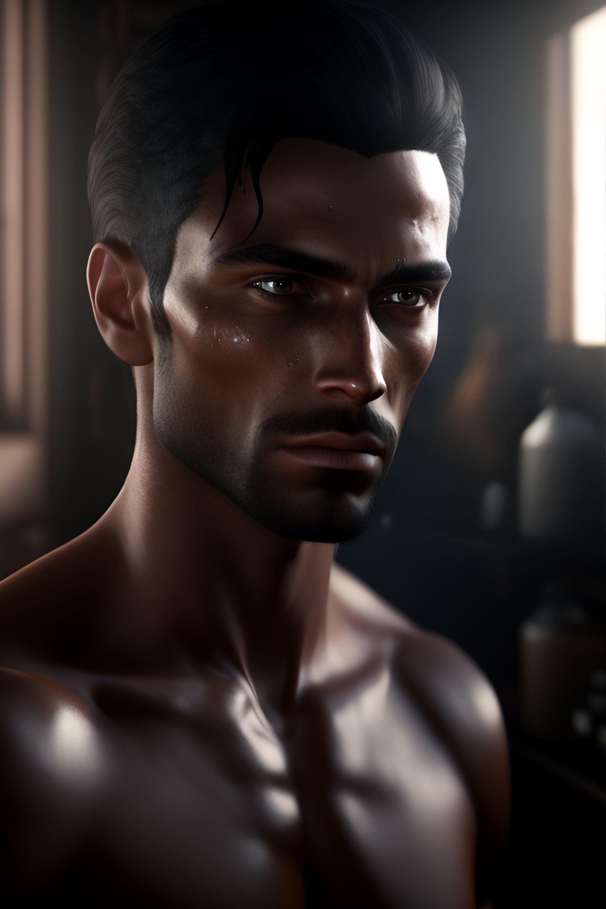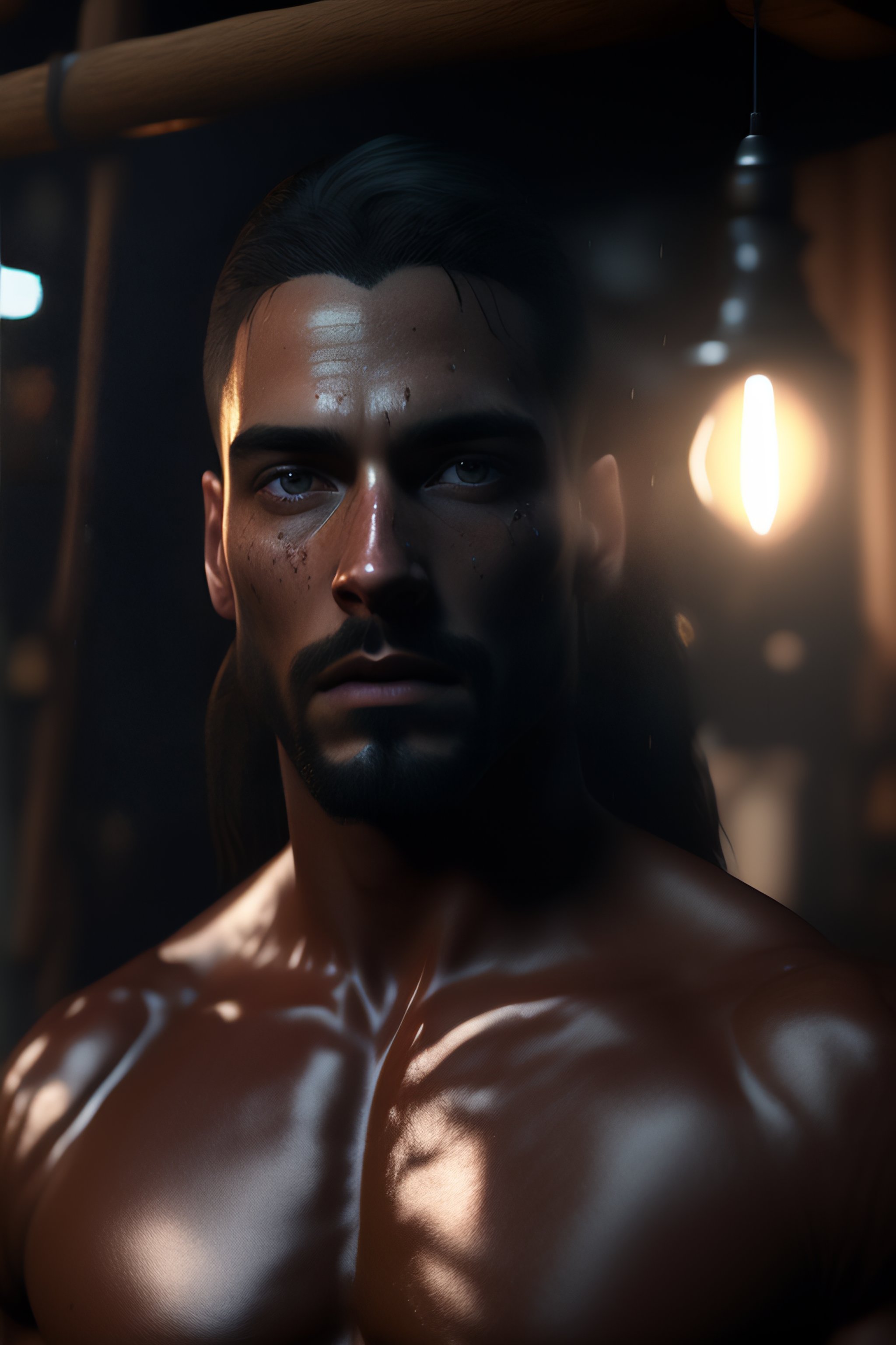 Dark and gloomy full body 8k unity rendering, jesus, in messy cluttered shack, action shot, porcelain cracked skin, skin pores, detailed intricate iris, very dark lighting, heavy shadows, detailed detailed face (vibrant, photorealistic, realistic, dramatic, dark, sharp focus, 8k). wide angle.