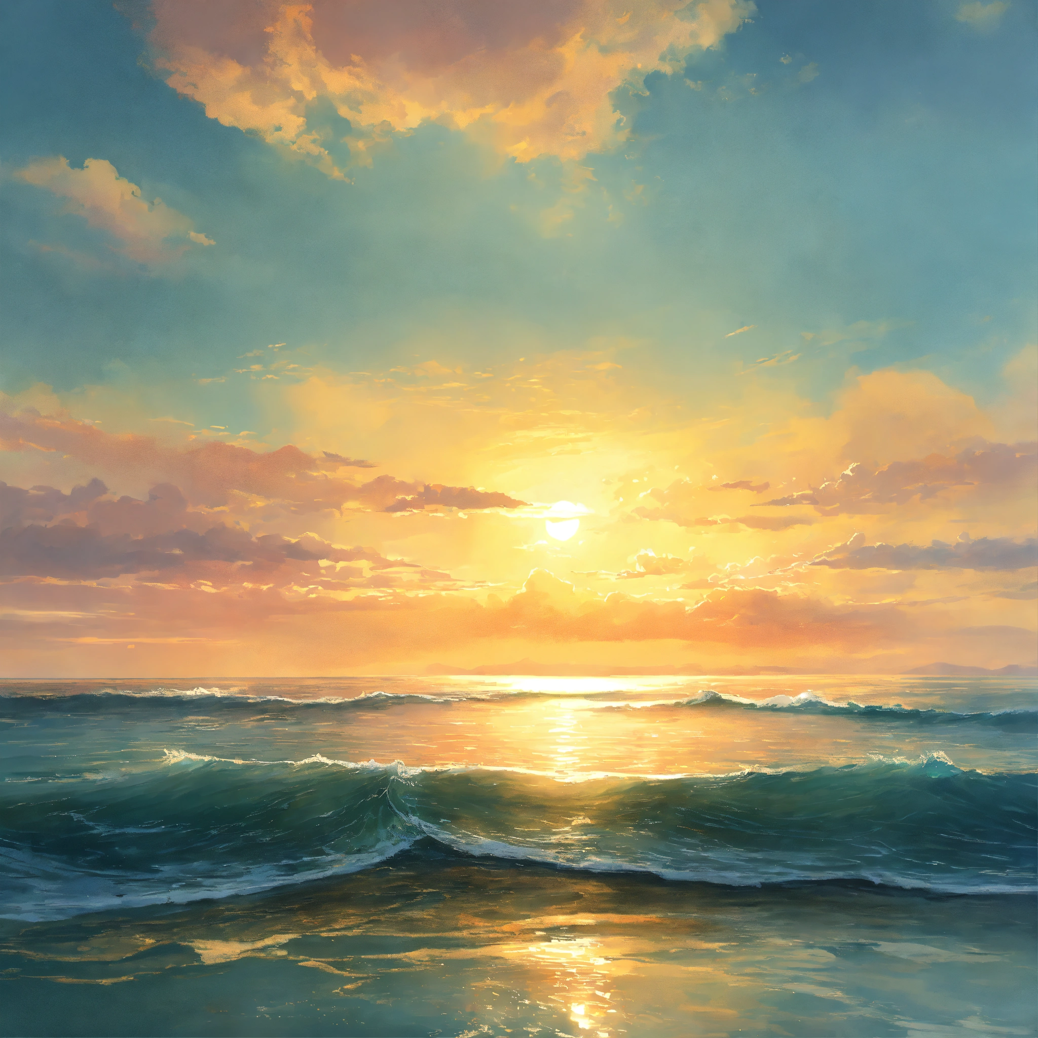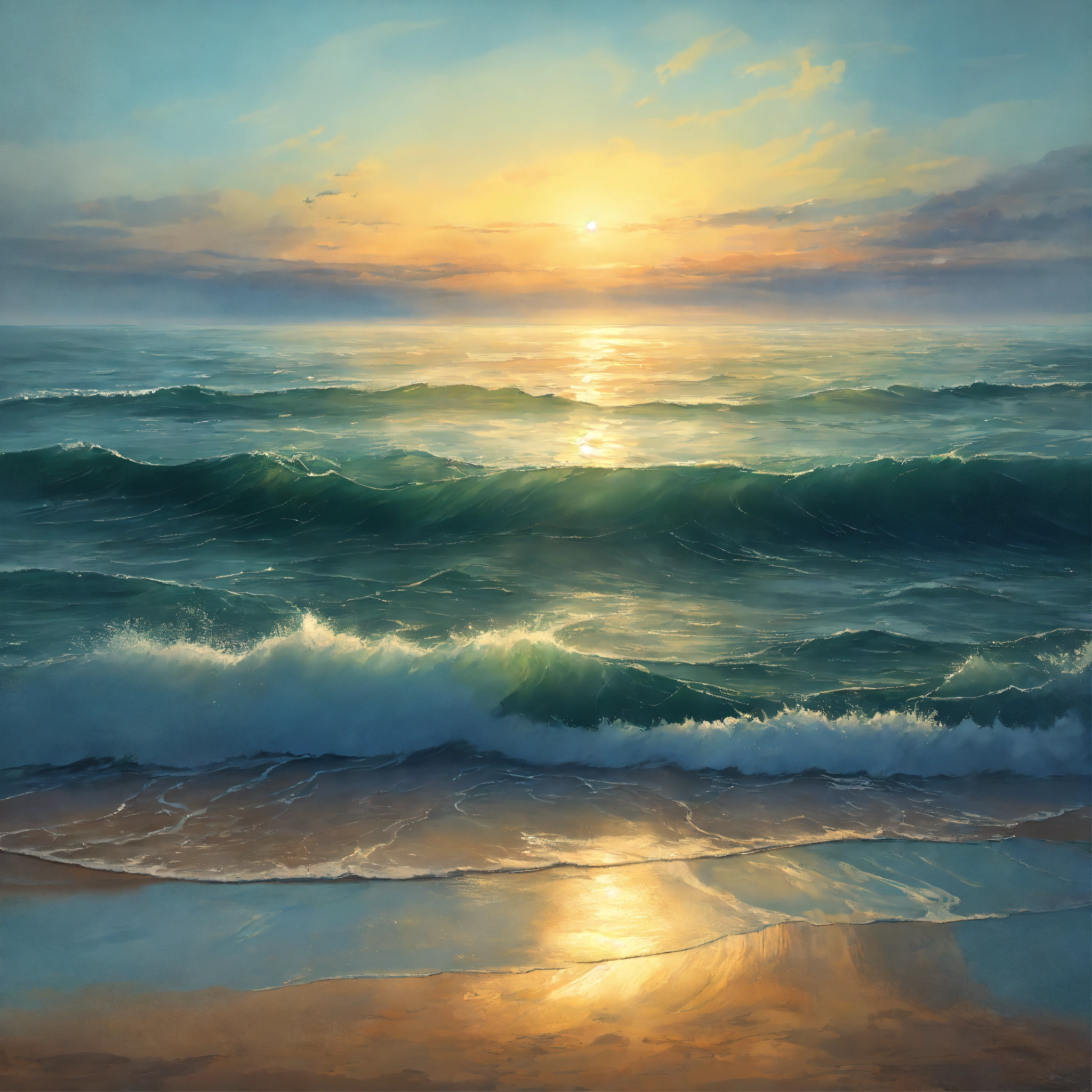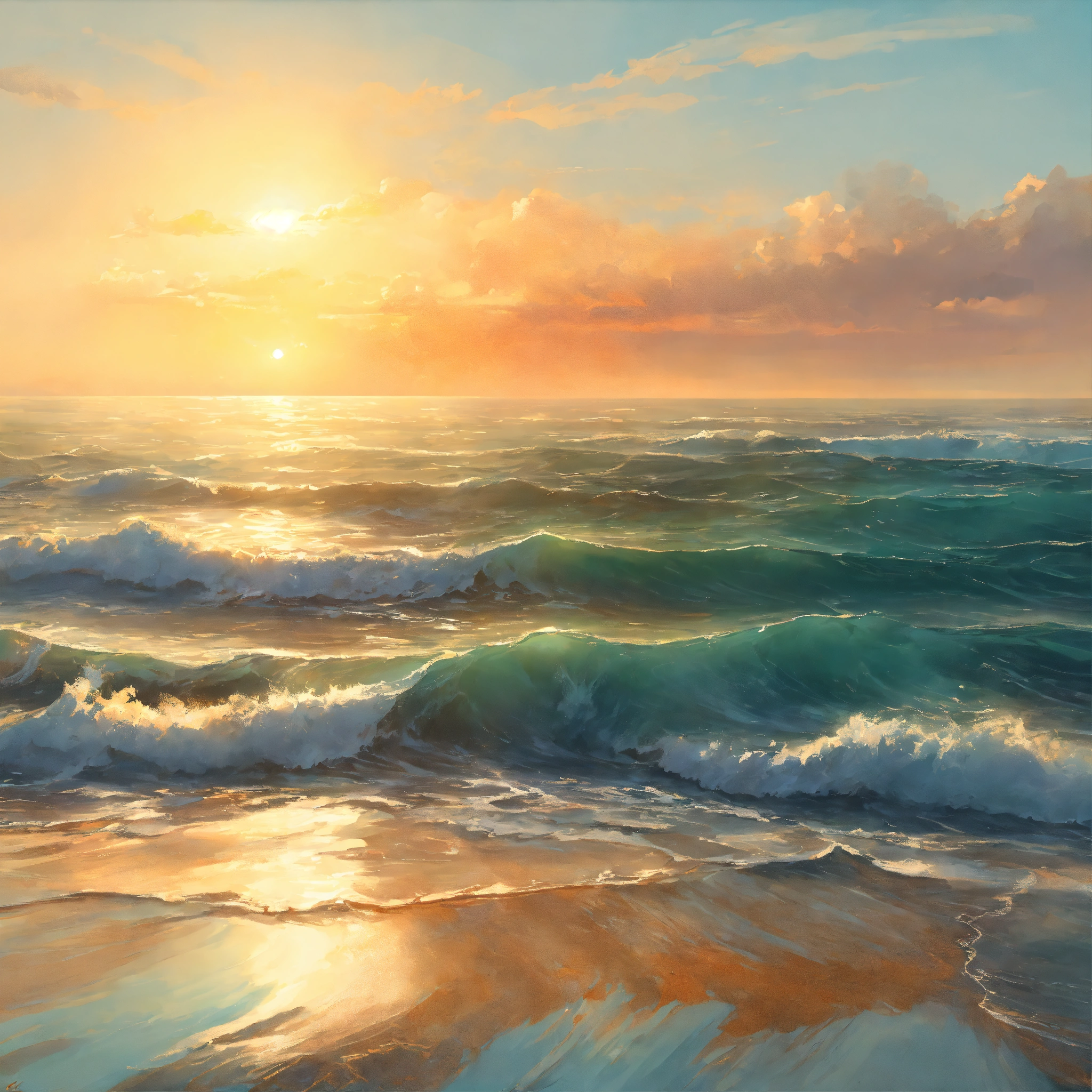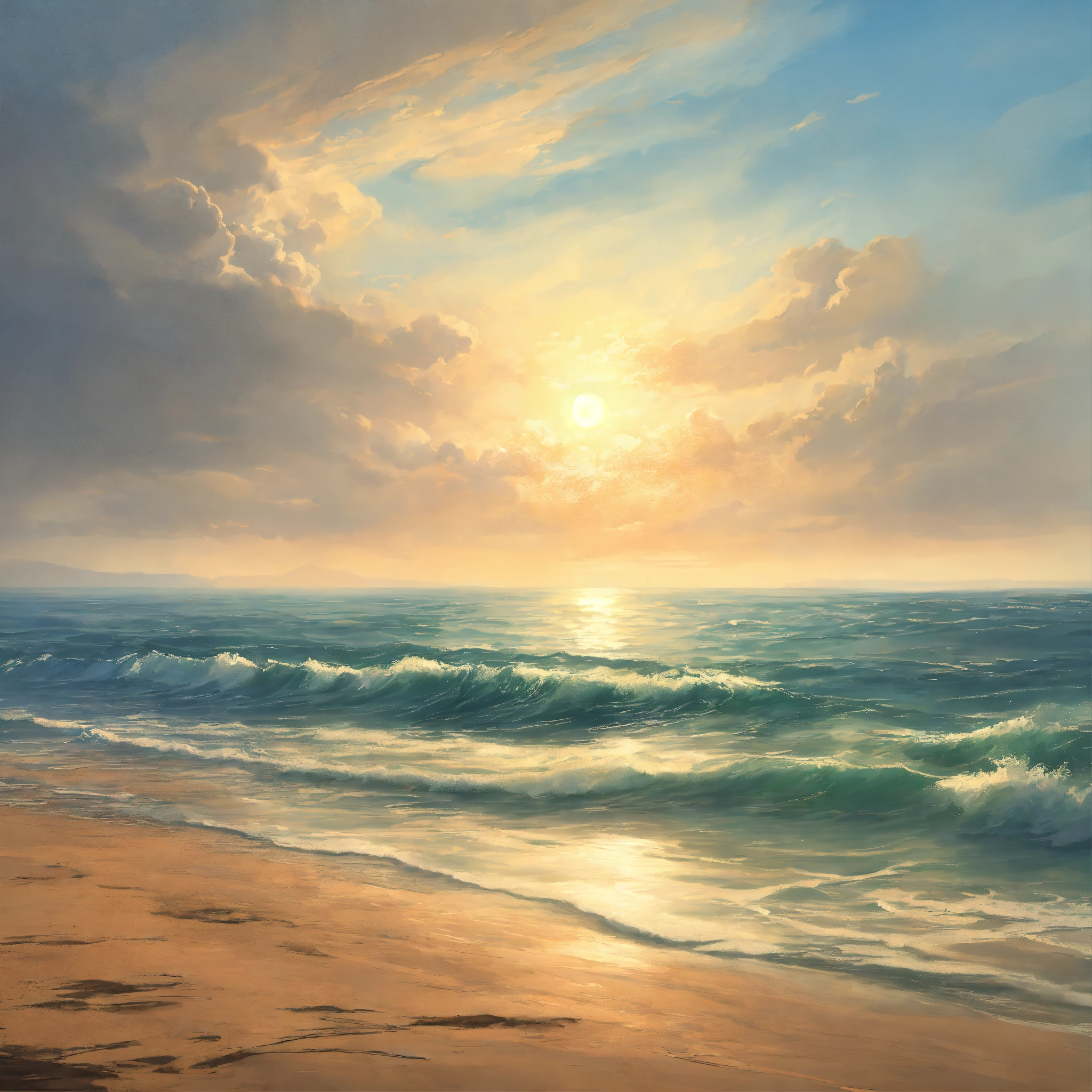 Concept art of an endless empty calm waveless ocean during a sunny afternoon, painting style, highly detailed, brush strokes, 8k