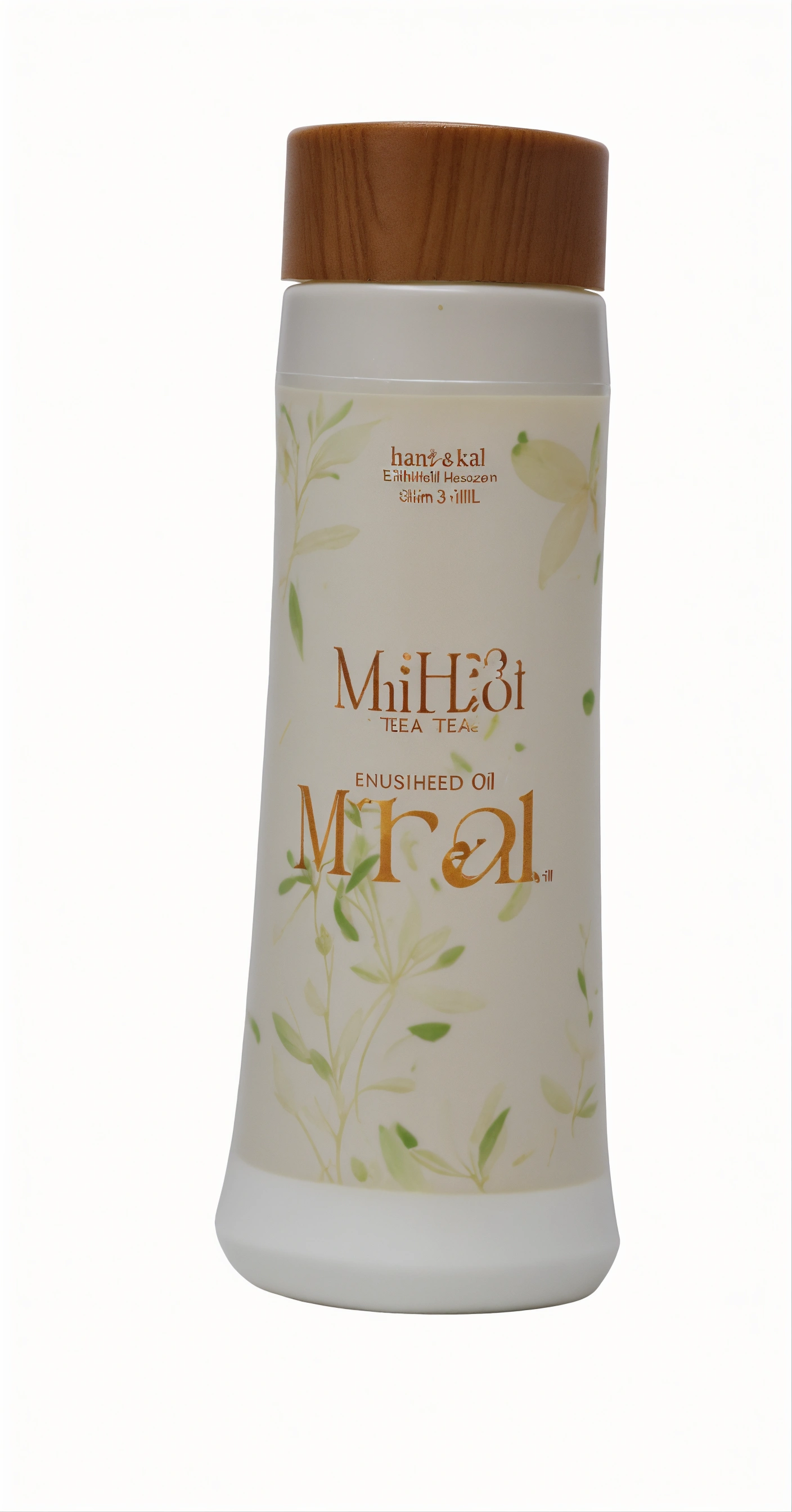 Create a label for body lotion for moisturize skin on giving pic. brand name 'm3herbal', enriched by vitamin-e oil & tea tree oil