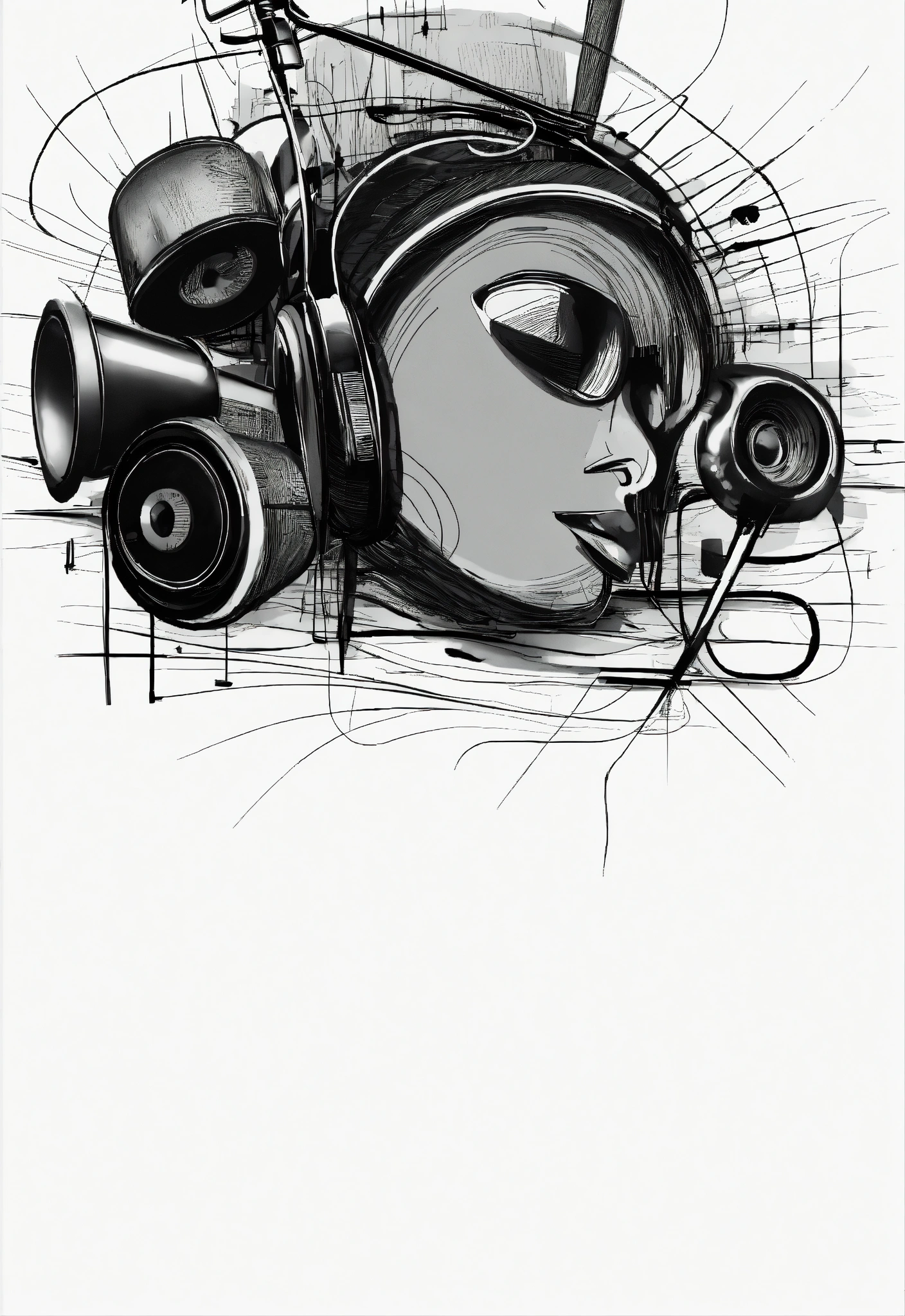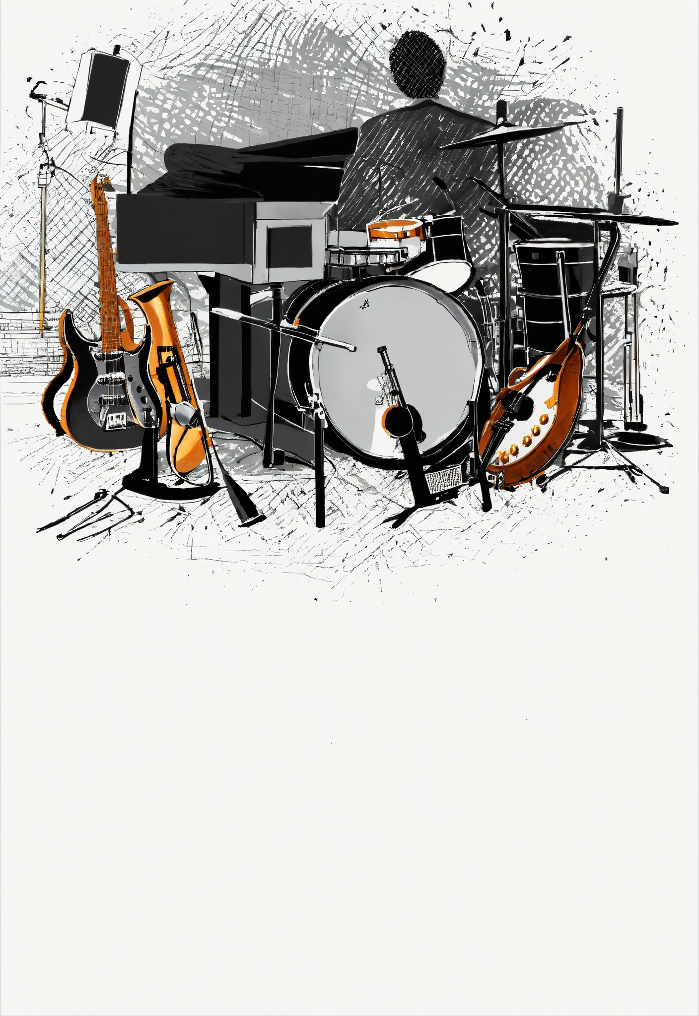 Create a minimalistic background for a jazz picture elemts in a black and white color palette and minimalism and a pencil sketch