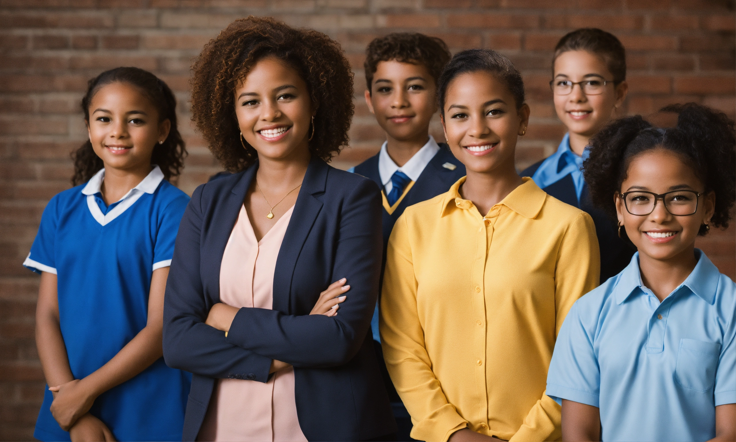 I am creating stock images of an executive school leadership principal website, i am creating the hero images, i need ultra photorealistic photos of children of different races in a group photos, some of the photos can have a female principal interacting with the students