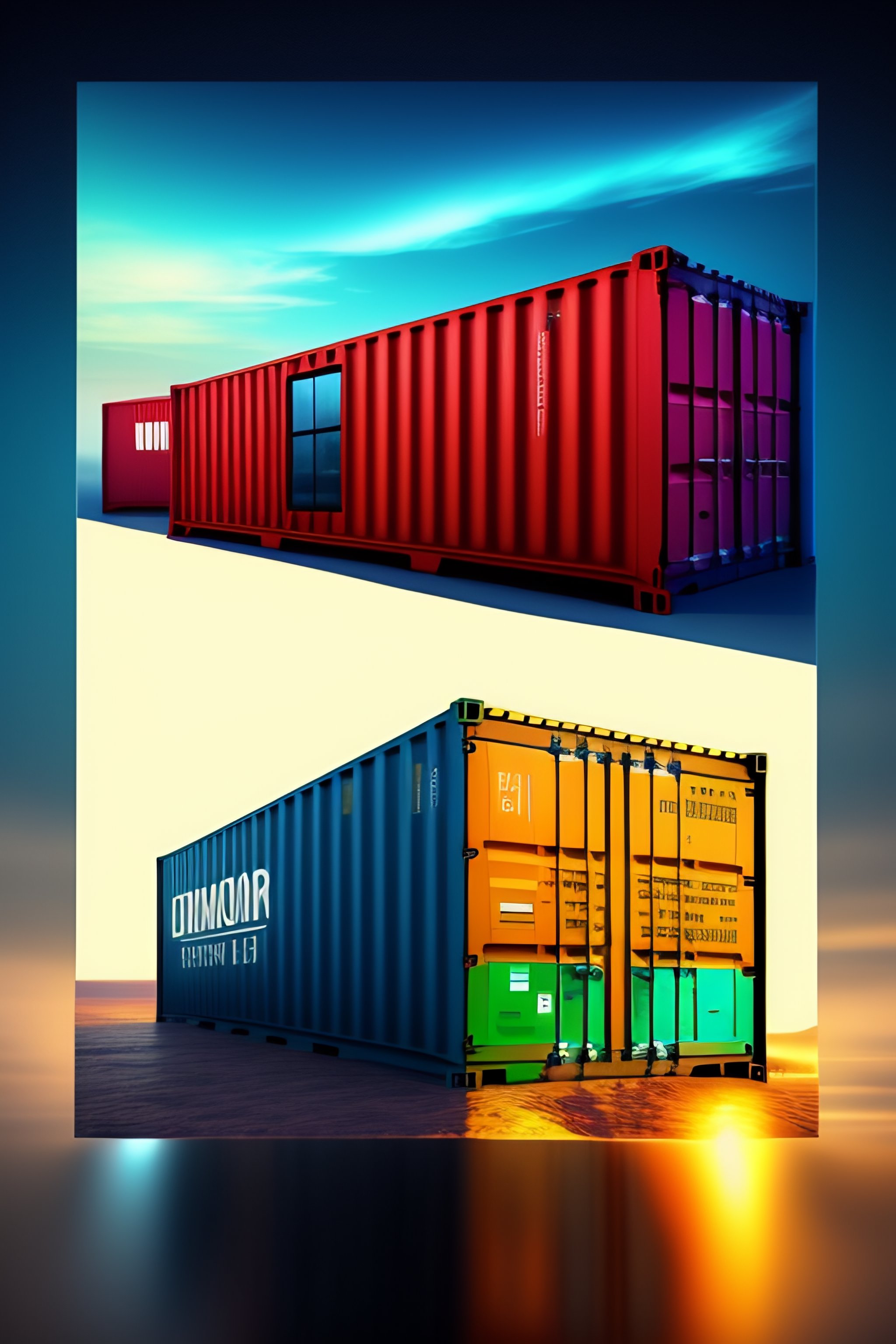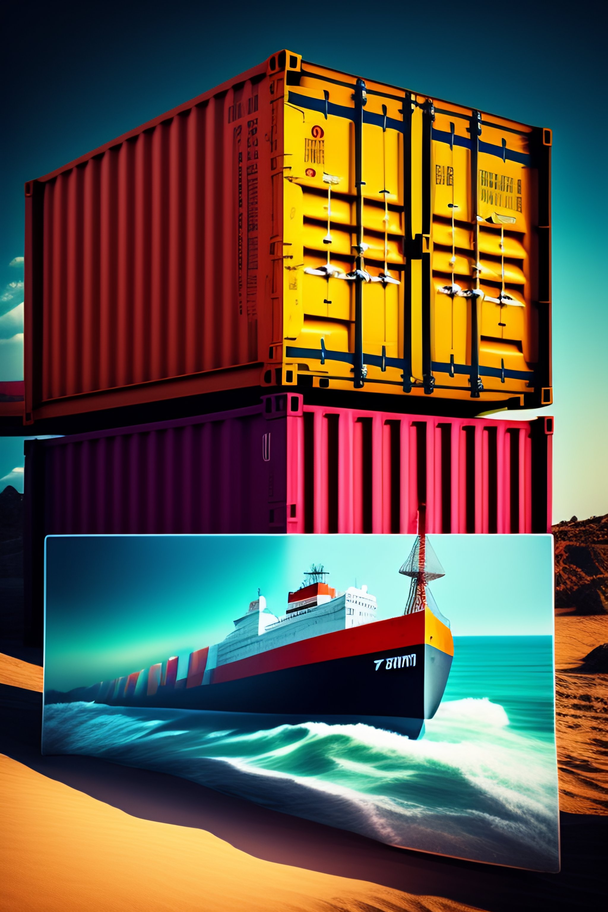 Ship with shipping container and text "container-deshevo" on container