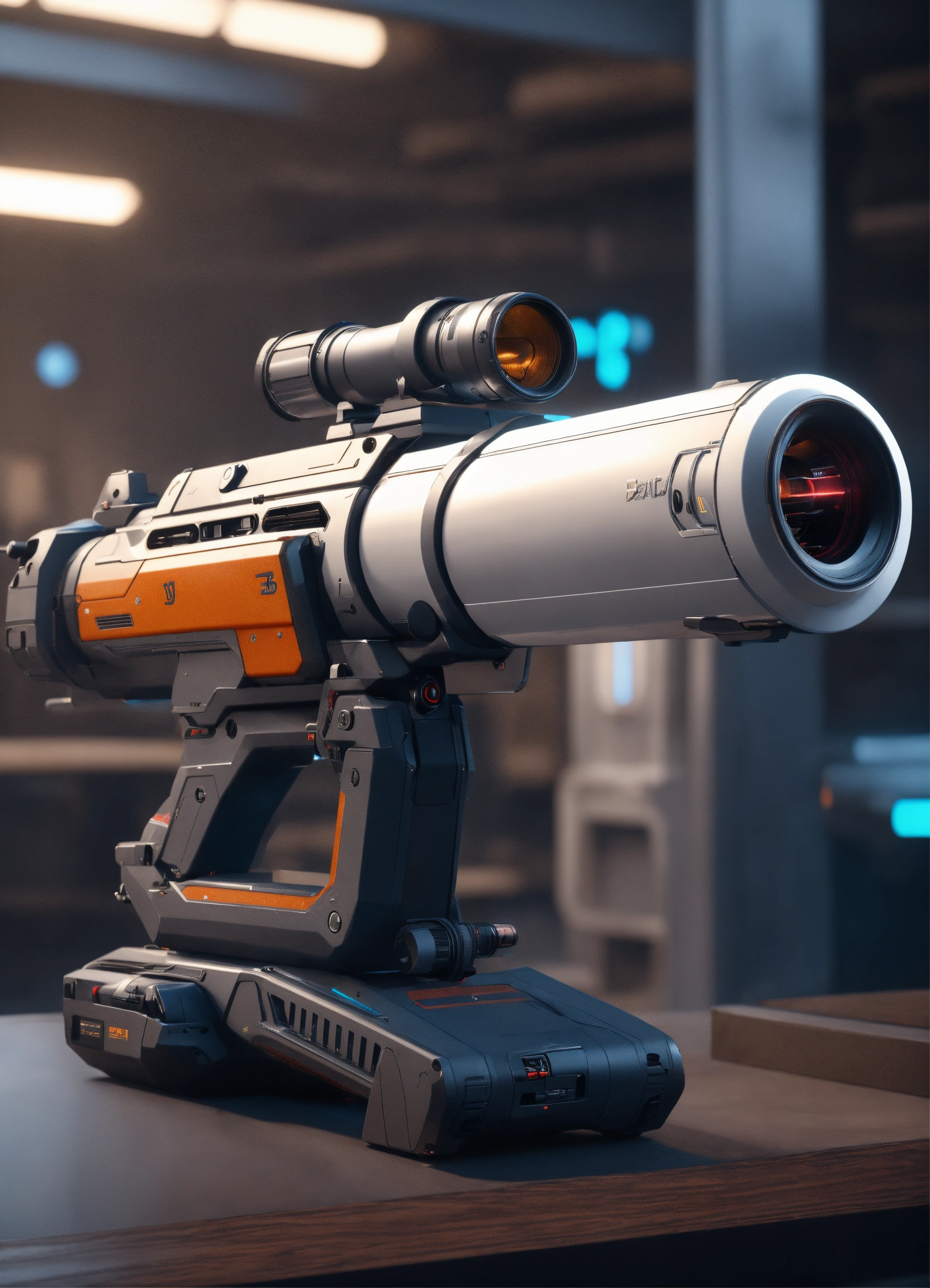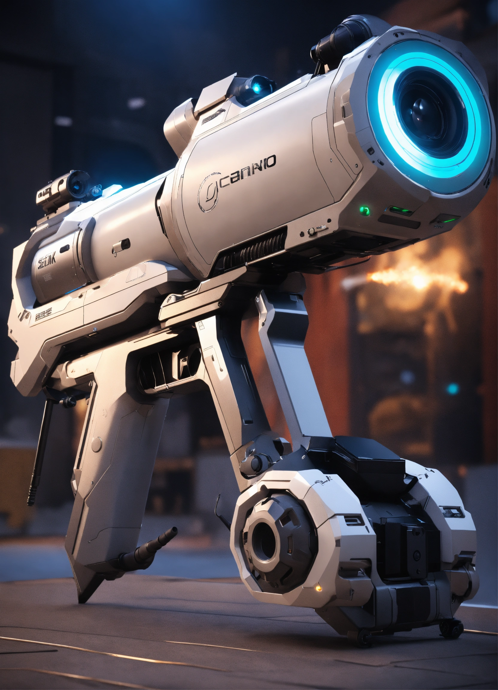 Long white sound cannon, handheld rifle, energy weapon, sleek, realistic, futuristic, sci fi, 8k, unreal engine, analog controls, pixar