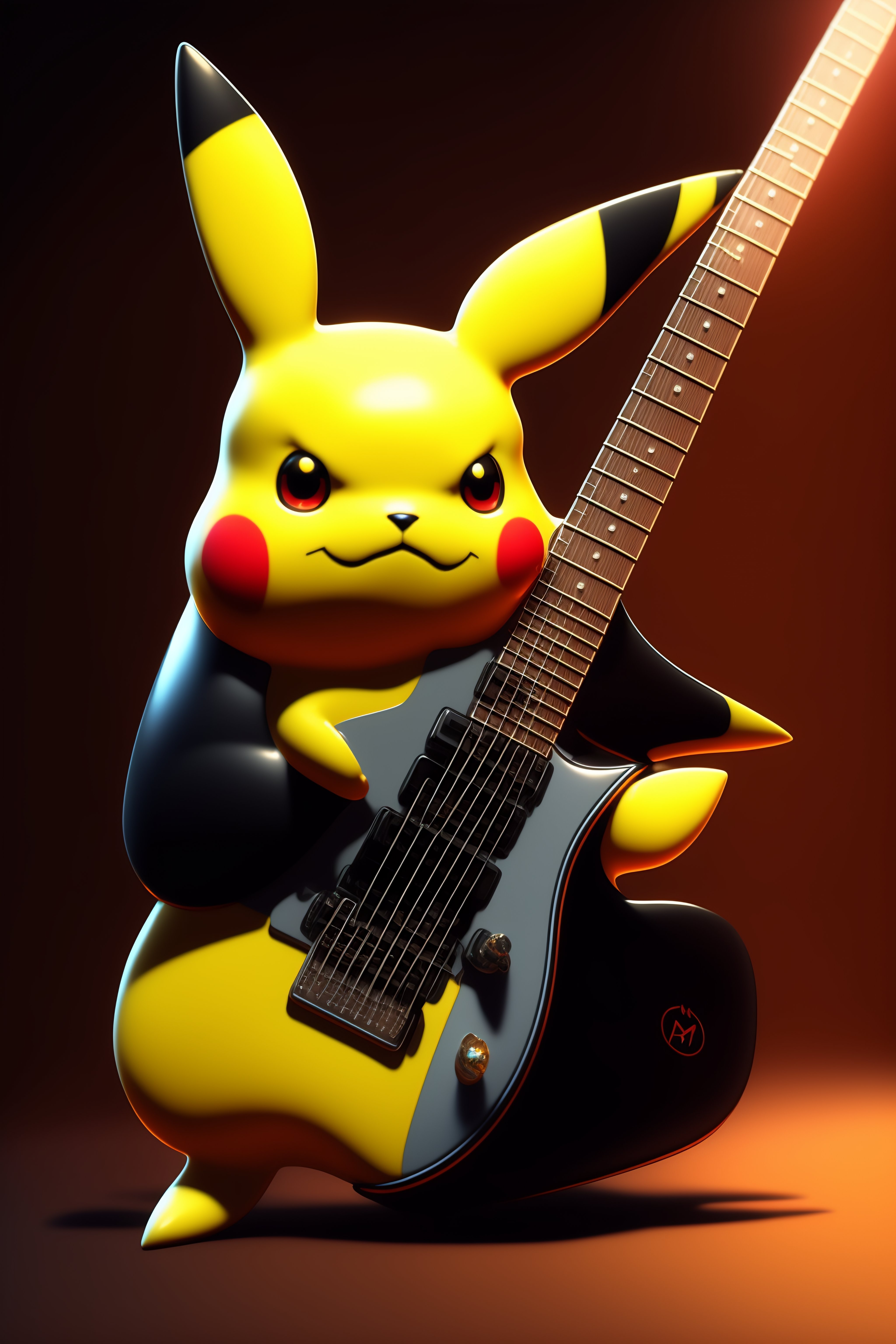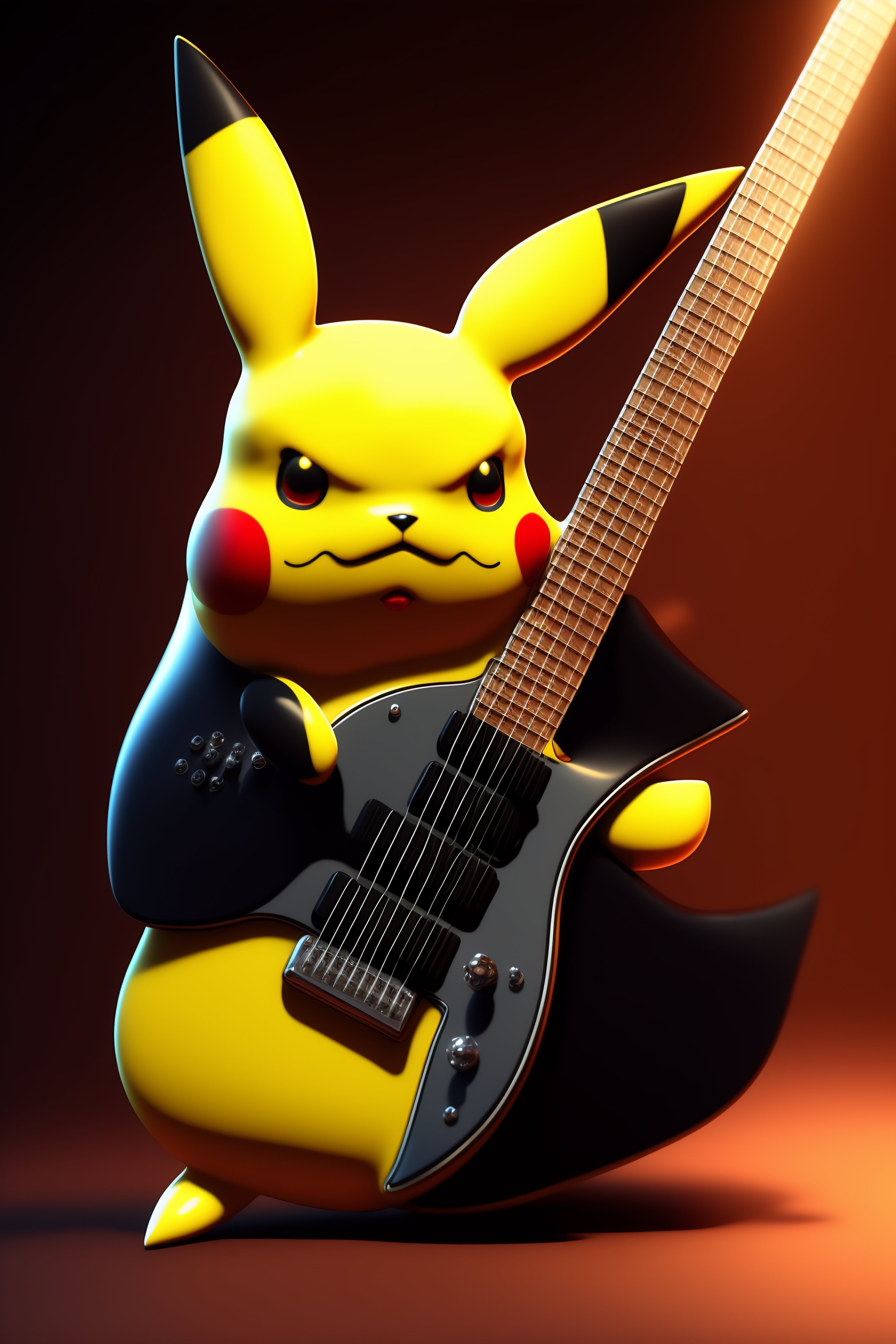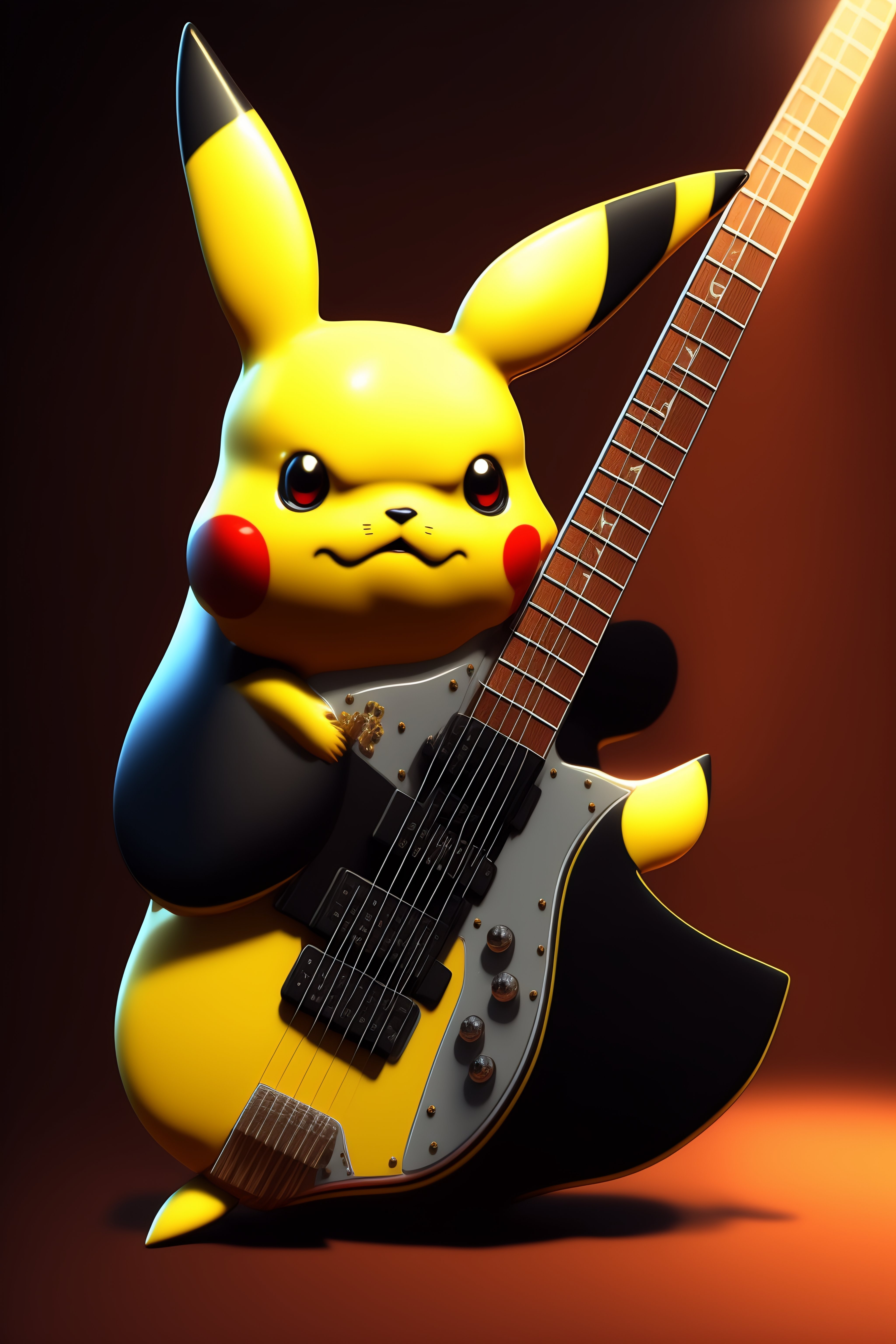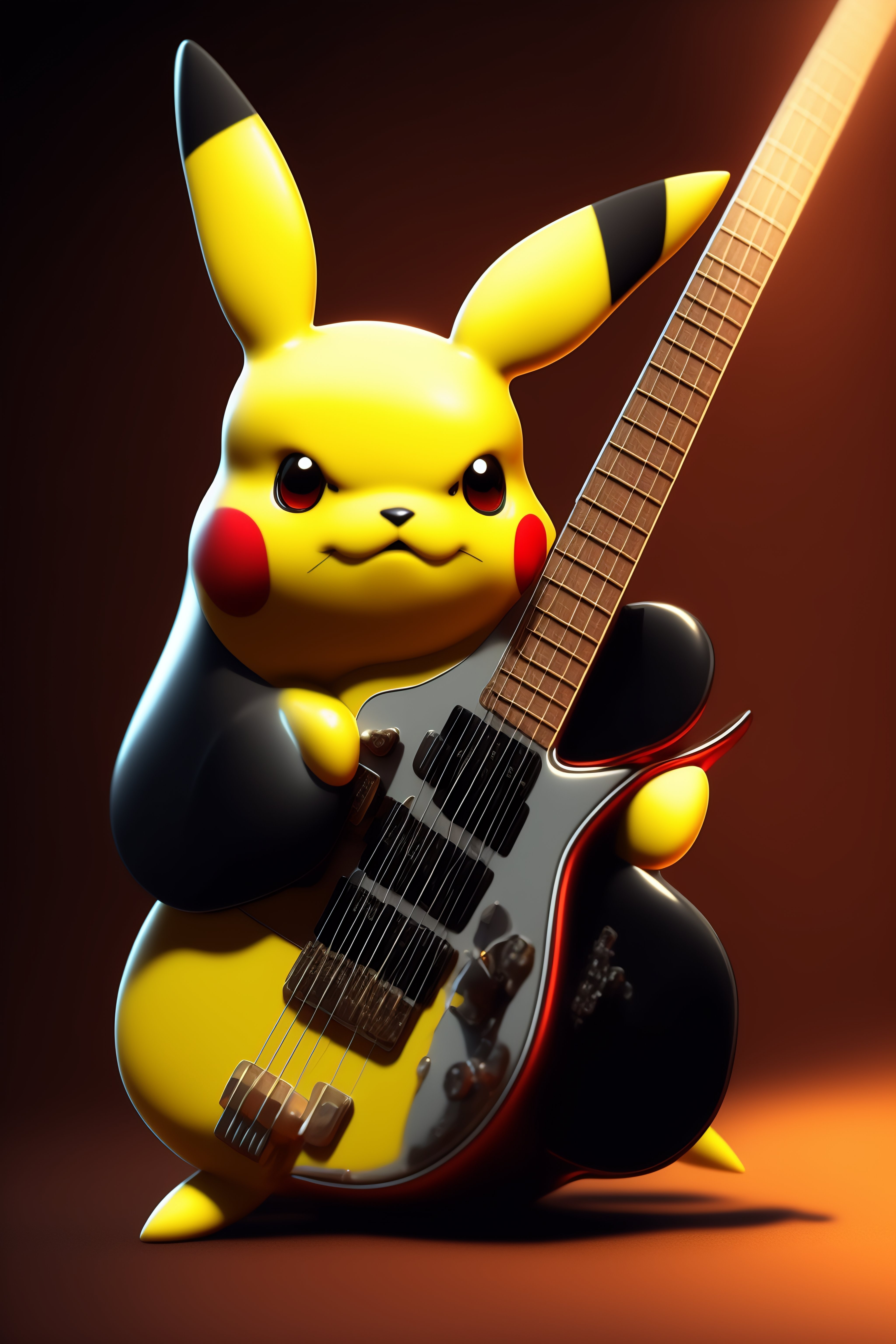 Pikachu playing electric guitar on stage. by amano yoshitaka, digital art, digital painting, artstation trending, unreal engine, by rembrandt
