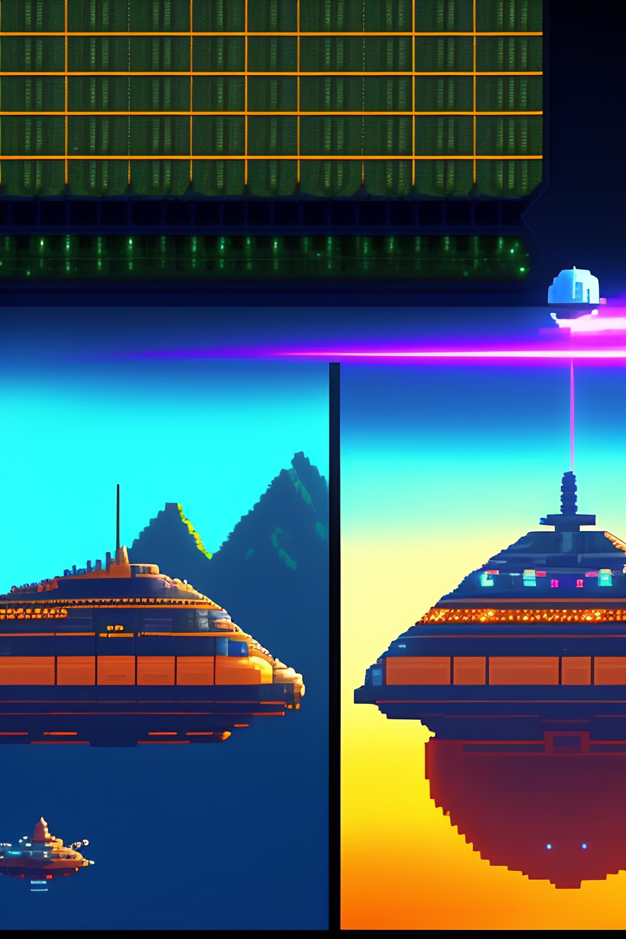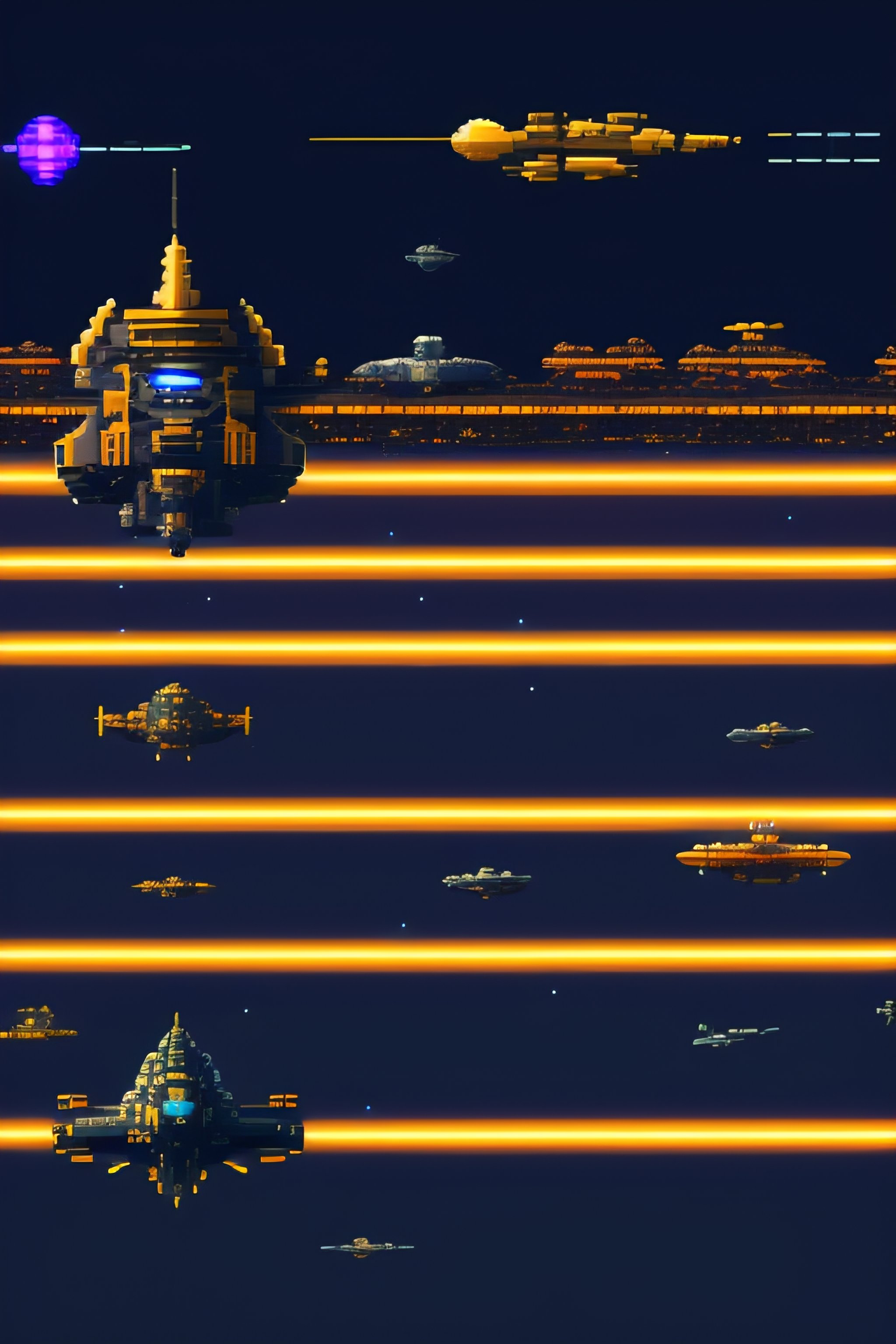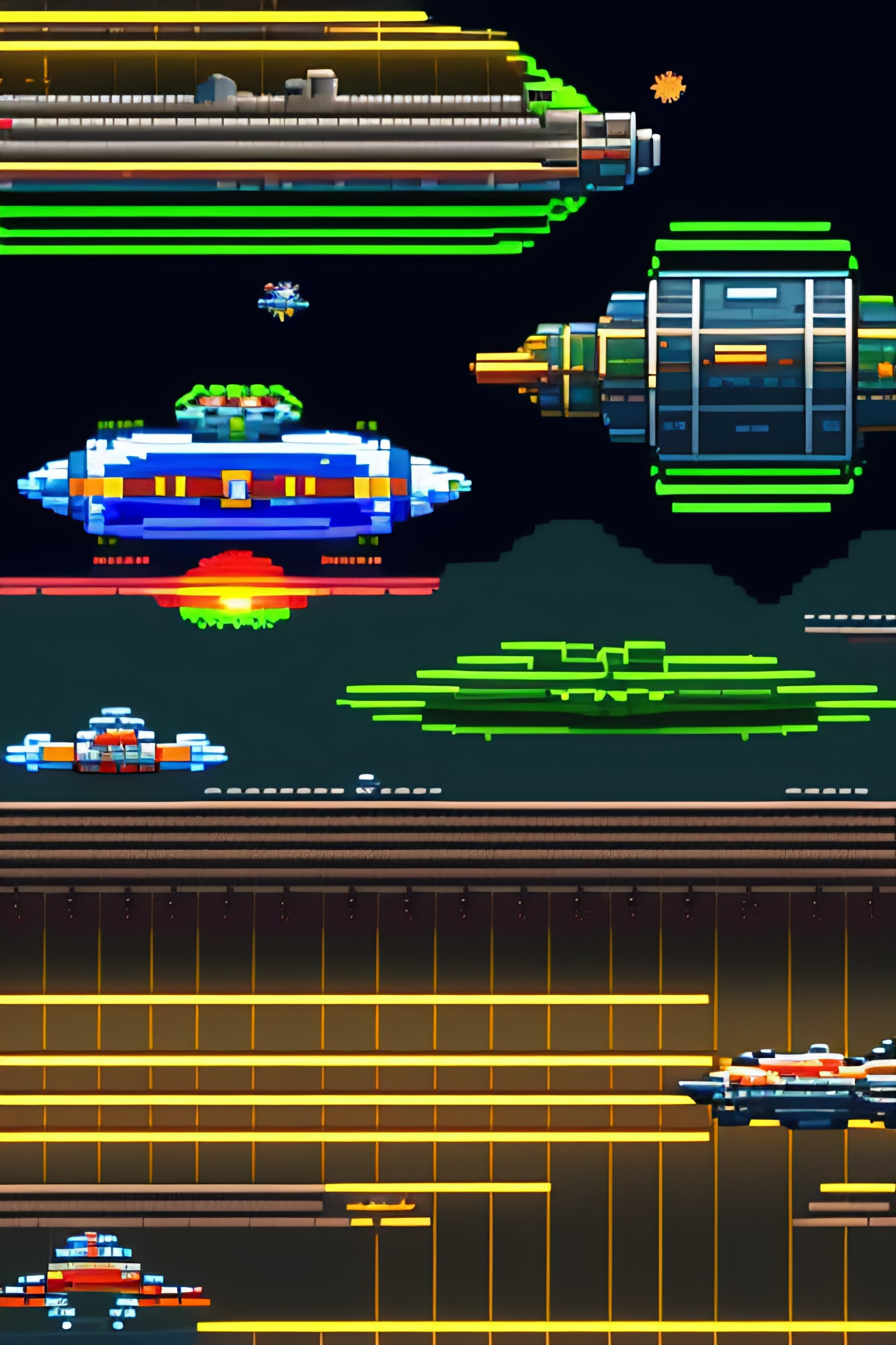 Sprite atlas with space invader-style game assets, including spaceships, enemy aliens, lasers, explosions and ui elements