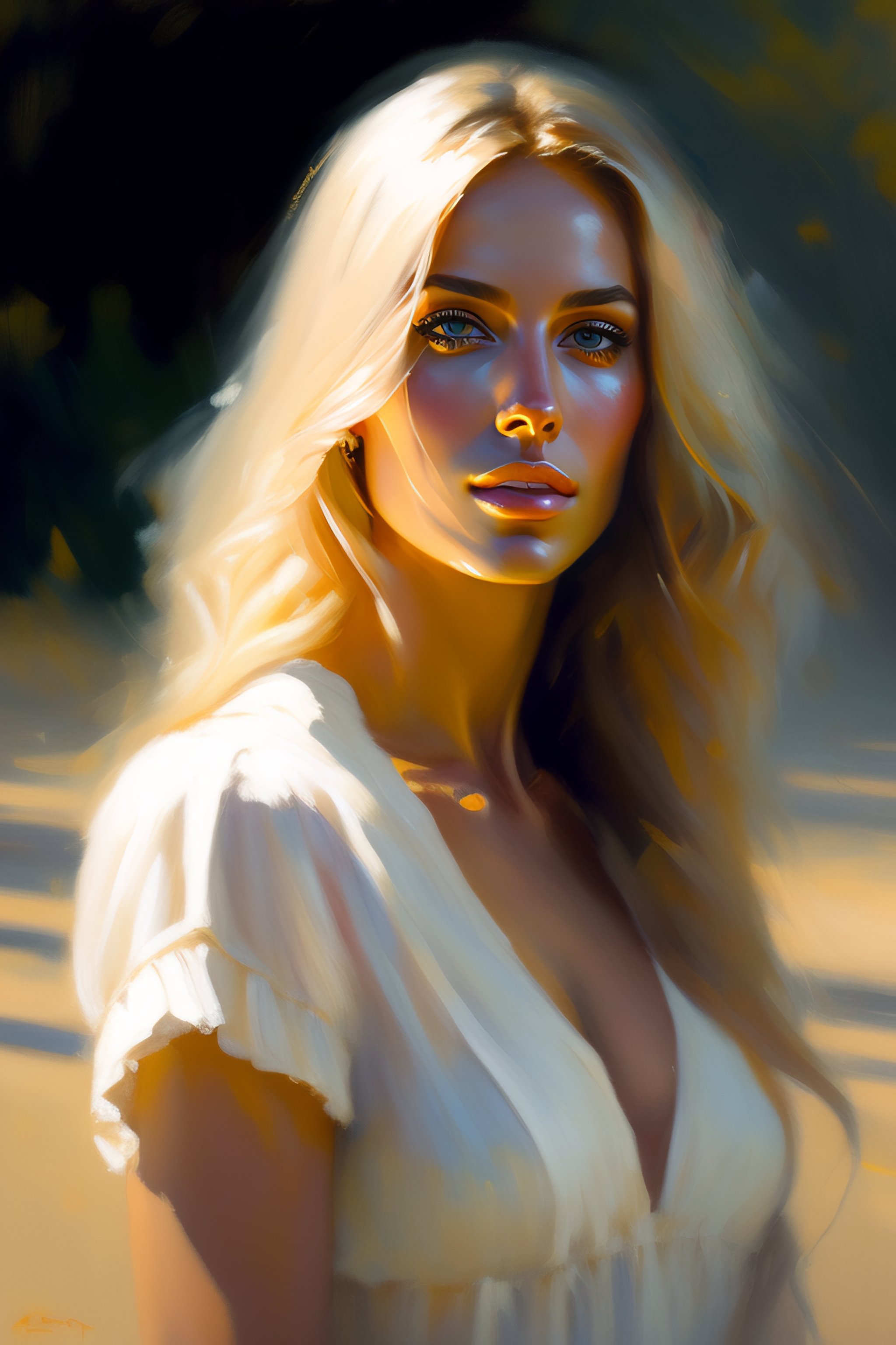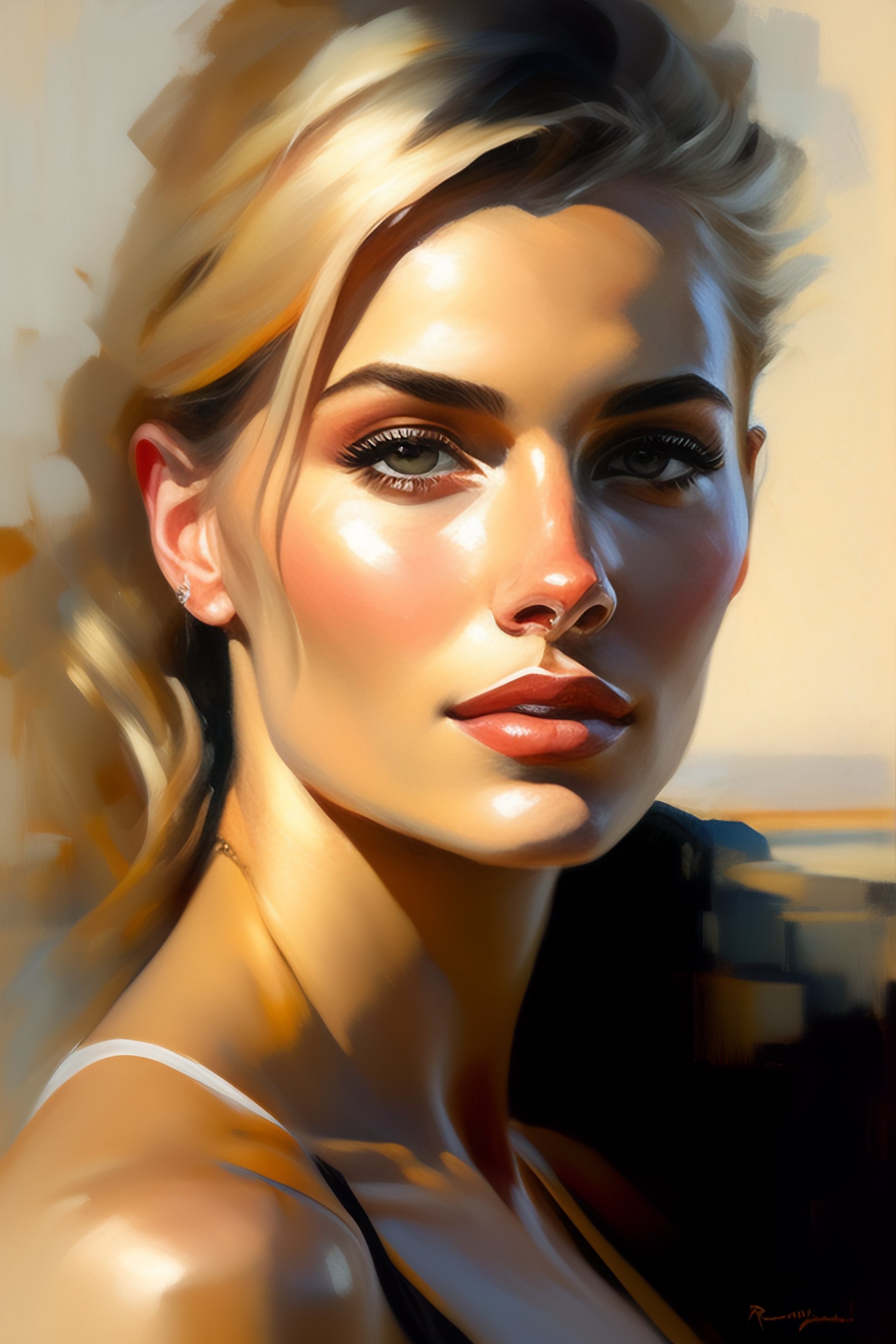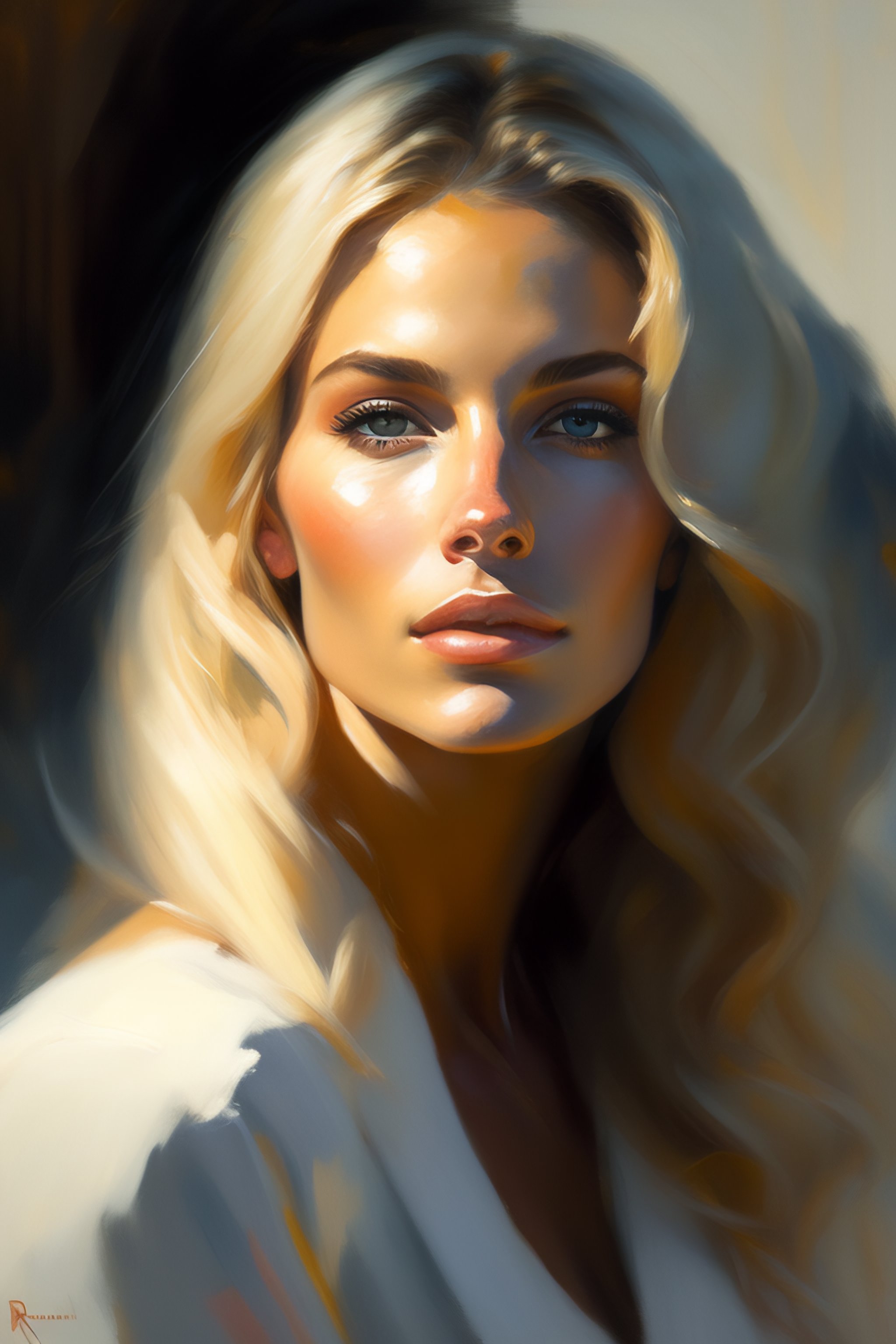 Portrait painting of a beautiful blonde woman by richard schmid, alla prima, loose gestural painterly, jeremy mann, greg manchess